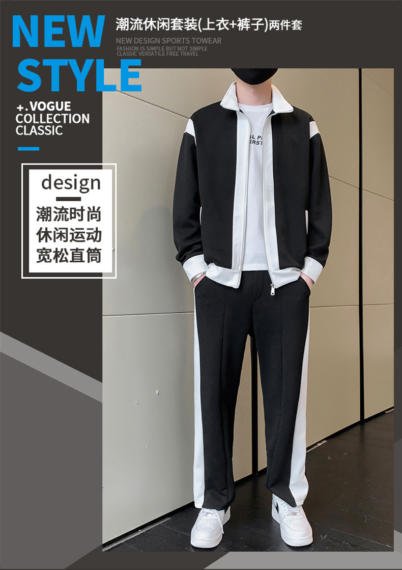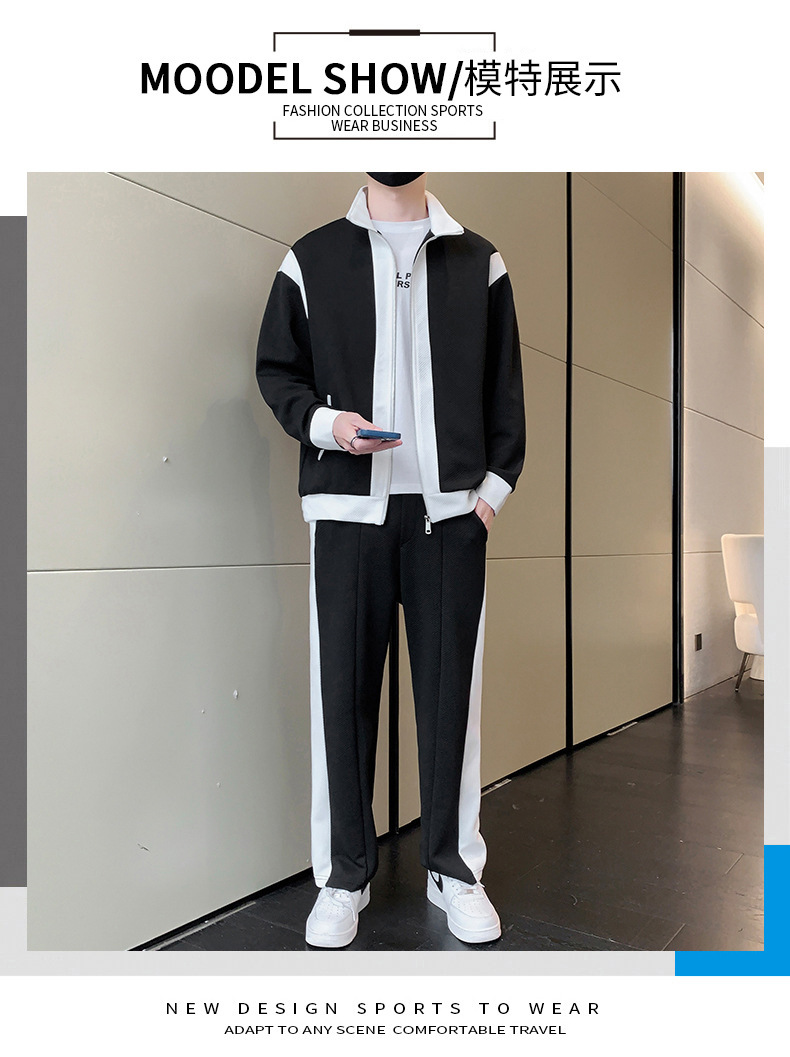 Спортивный набор мужской весенний модный длинный рукав свитер набор плоские брюки удобный куртка набор мужской повседневный куртка
