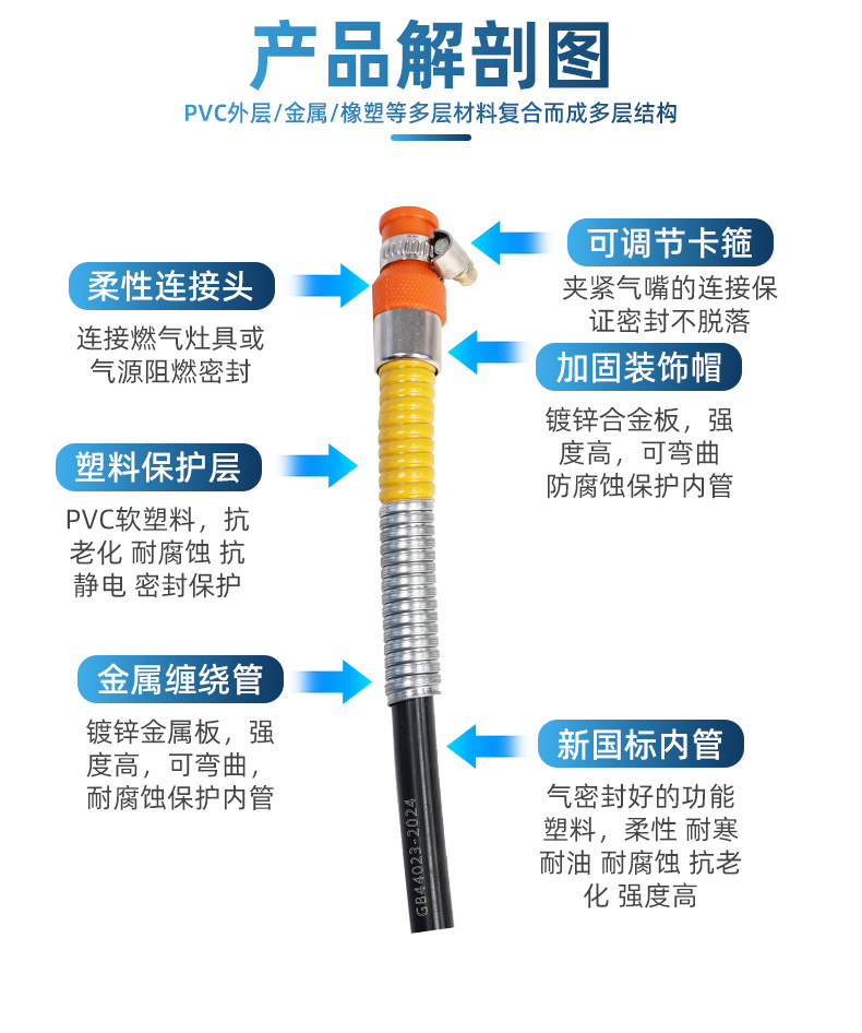 Новый универсальный взрывозащищенный бронированный газопровод, сертифицированный по национальному стандарту 3C, для природного газа, сжиженного газа и огнестойкого шланга.