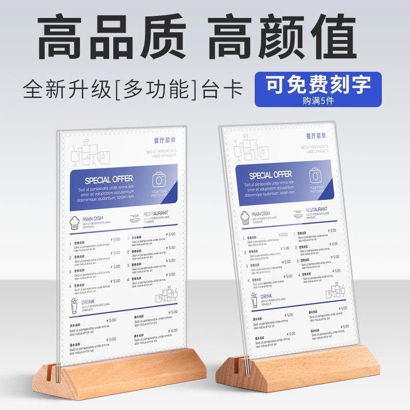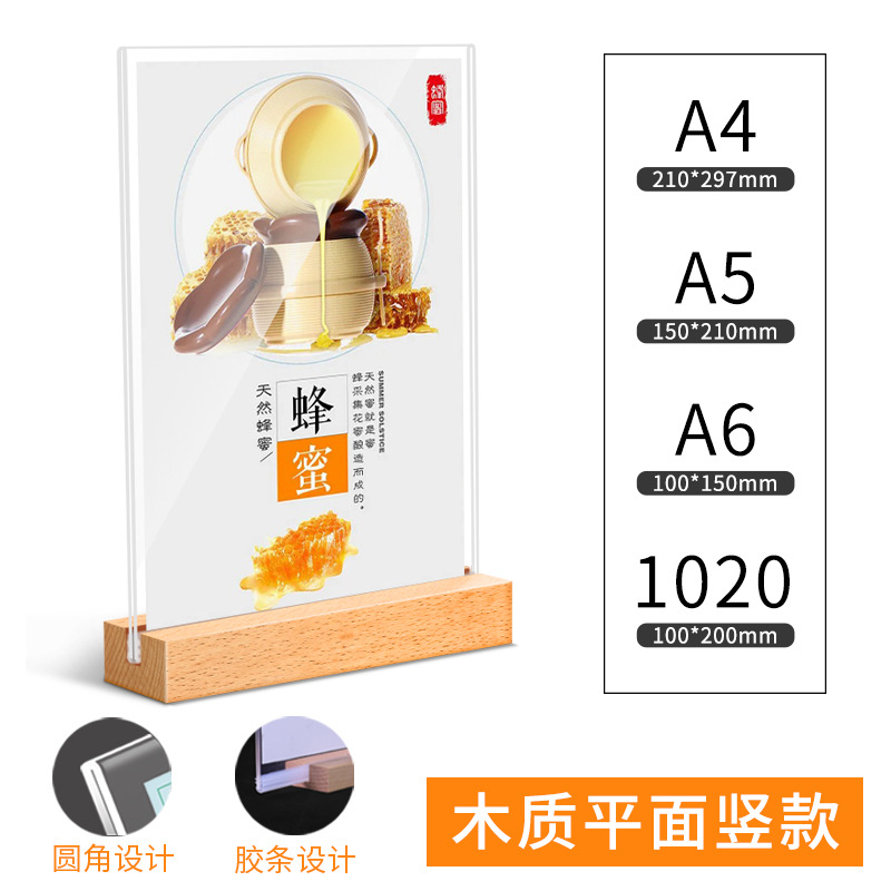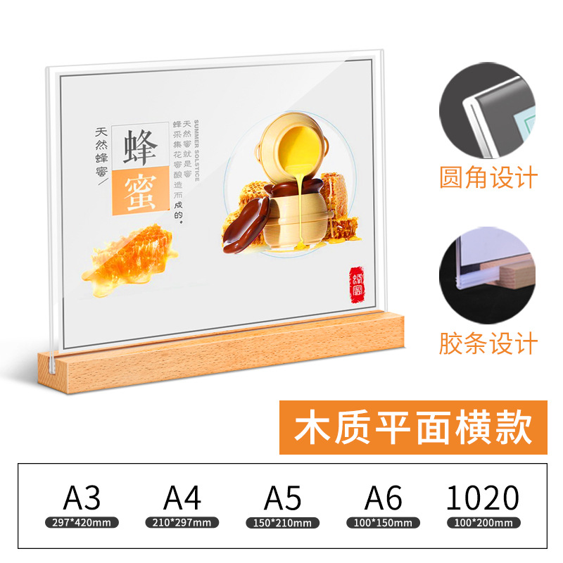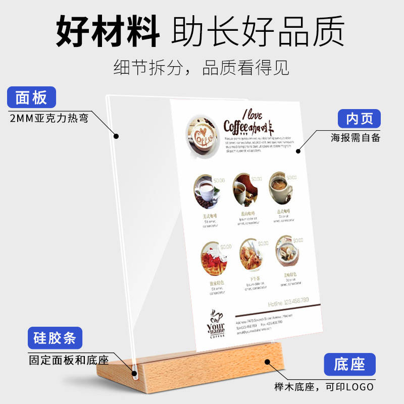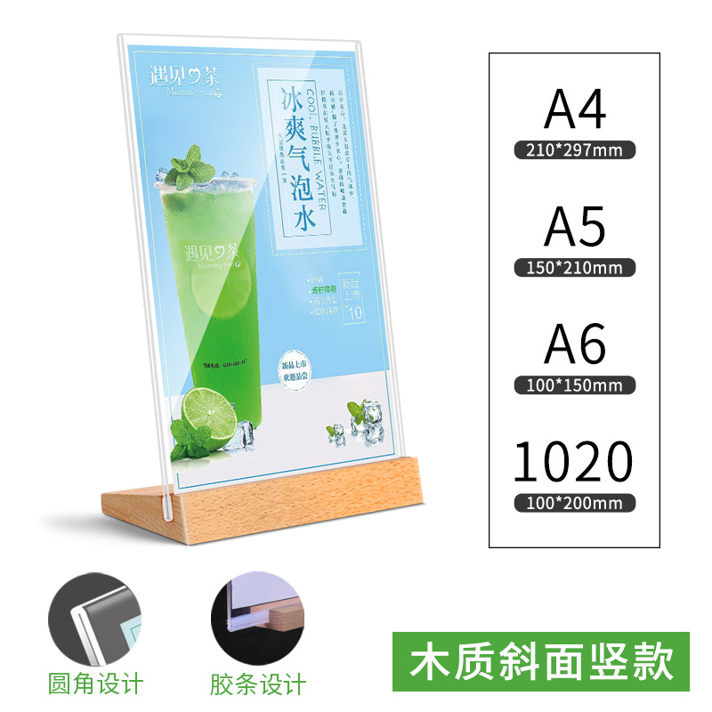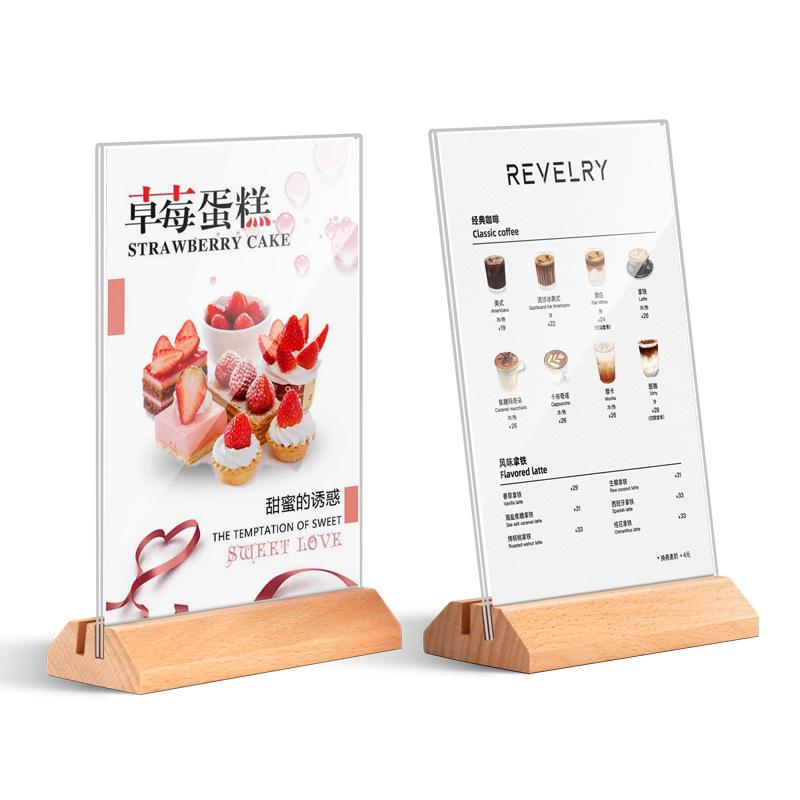 Акриловая подставка для карточек с деревянным основанием, карточка для стола, держатель для карточек формата А4, меню-карточка, настольная табличка из бука, ценник
