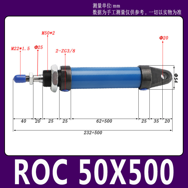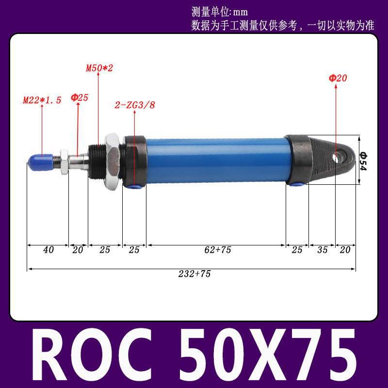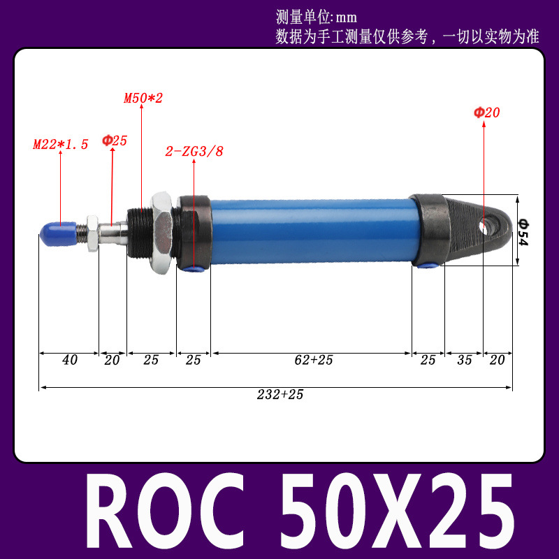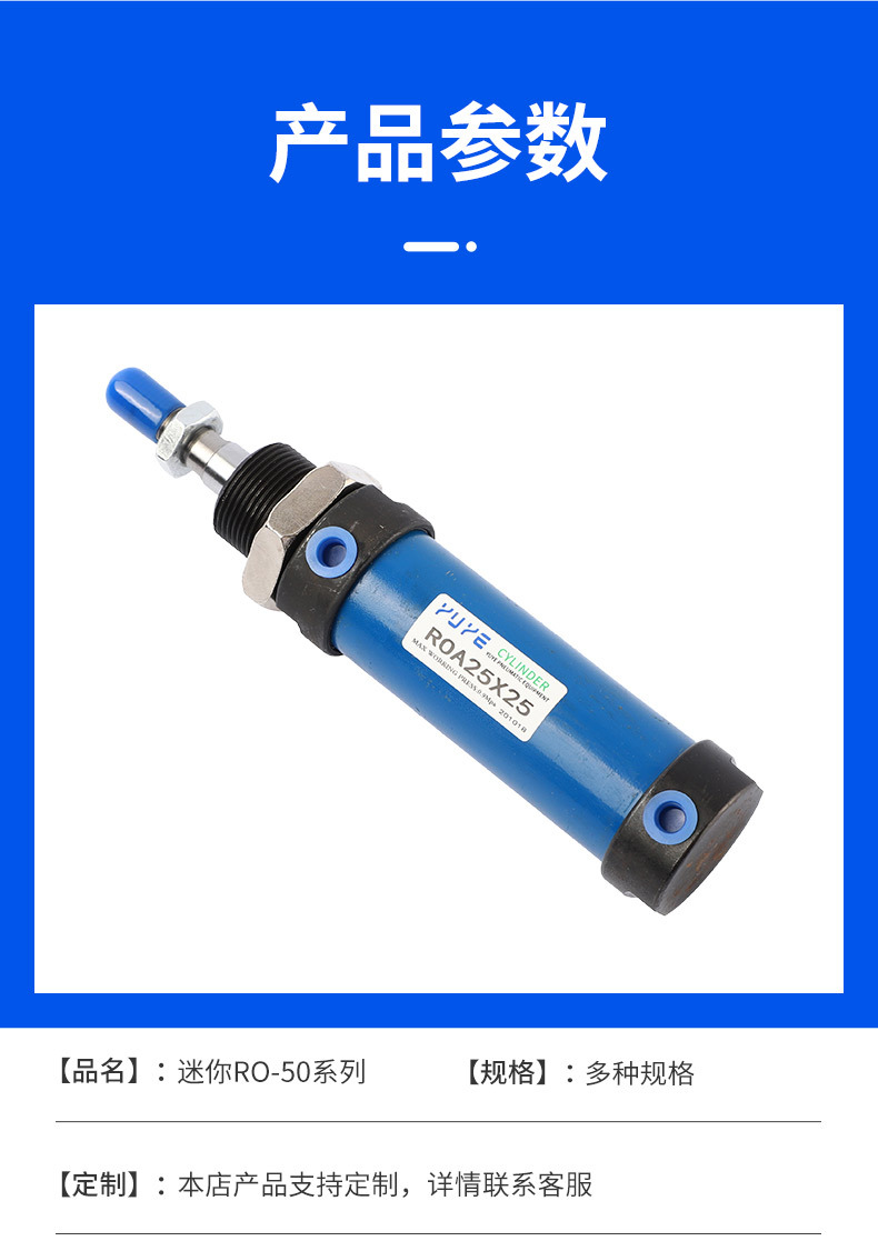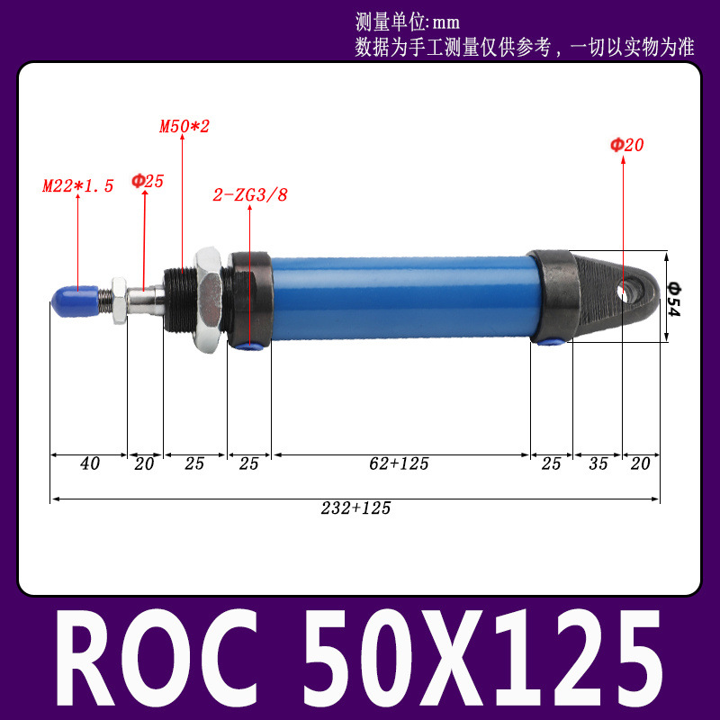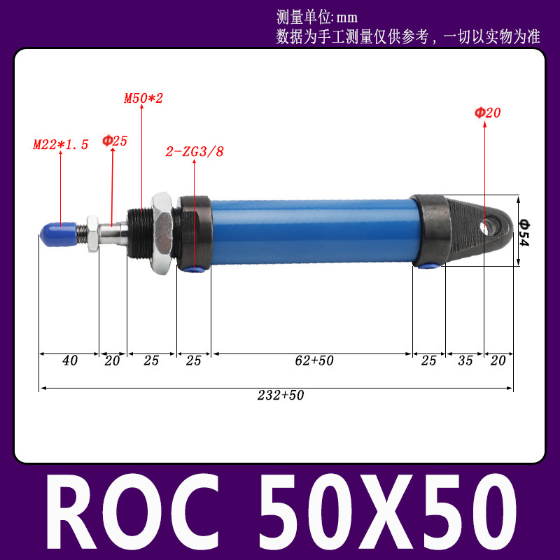 Гидравлический мини-цилиндр ROA/ROB/ROC ROA50 с плоским и круглым концом, с одним ушком, импортное уплотнительное кольцо