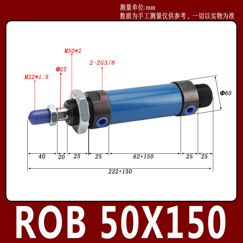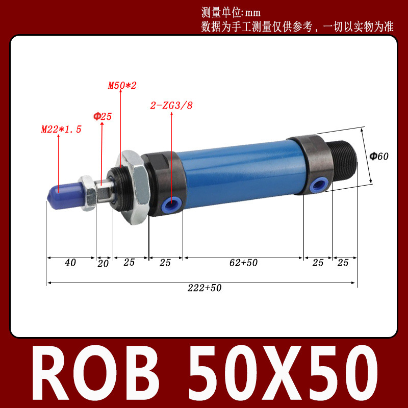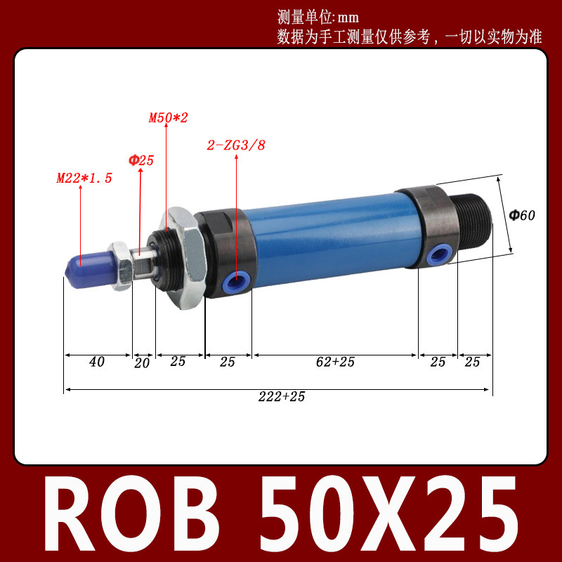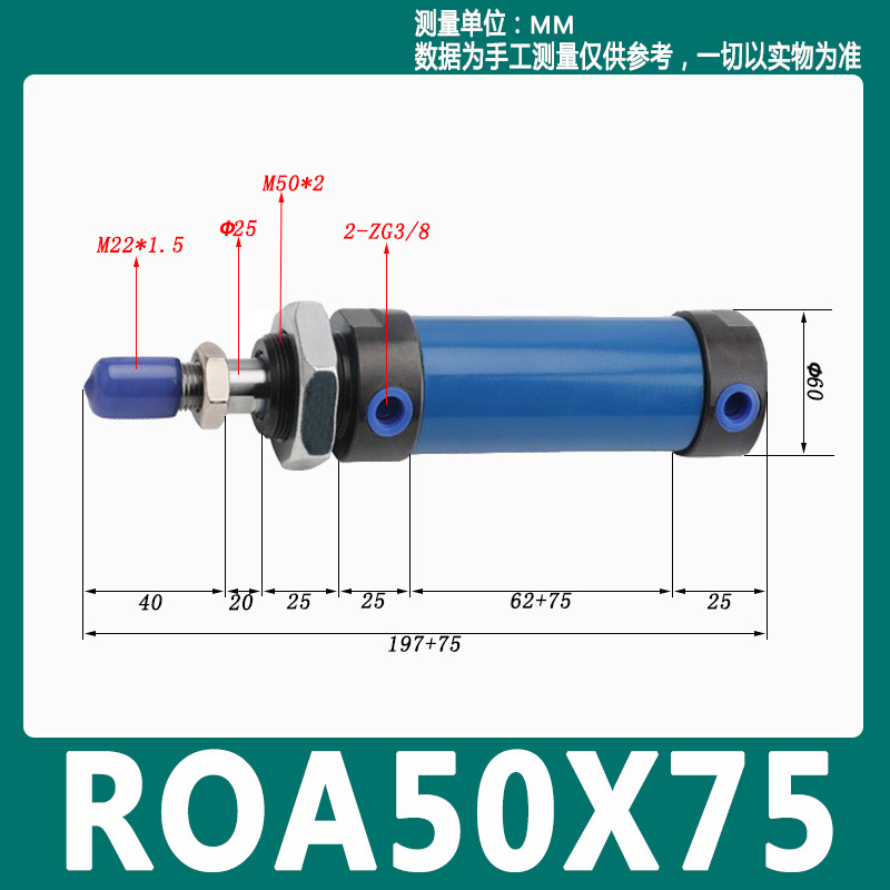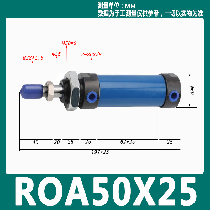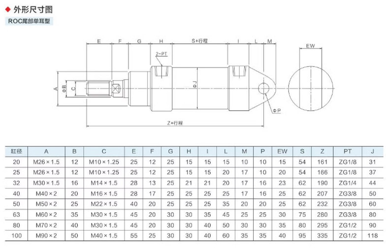 Гидравлический мини-цилиндр ROA/ROB/ROC ROA50 с плоским и круглым концом, с одним ушком, импортное уплотнительное кольцо