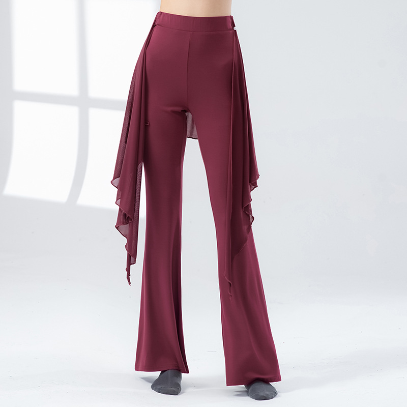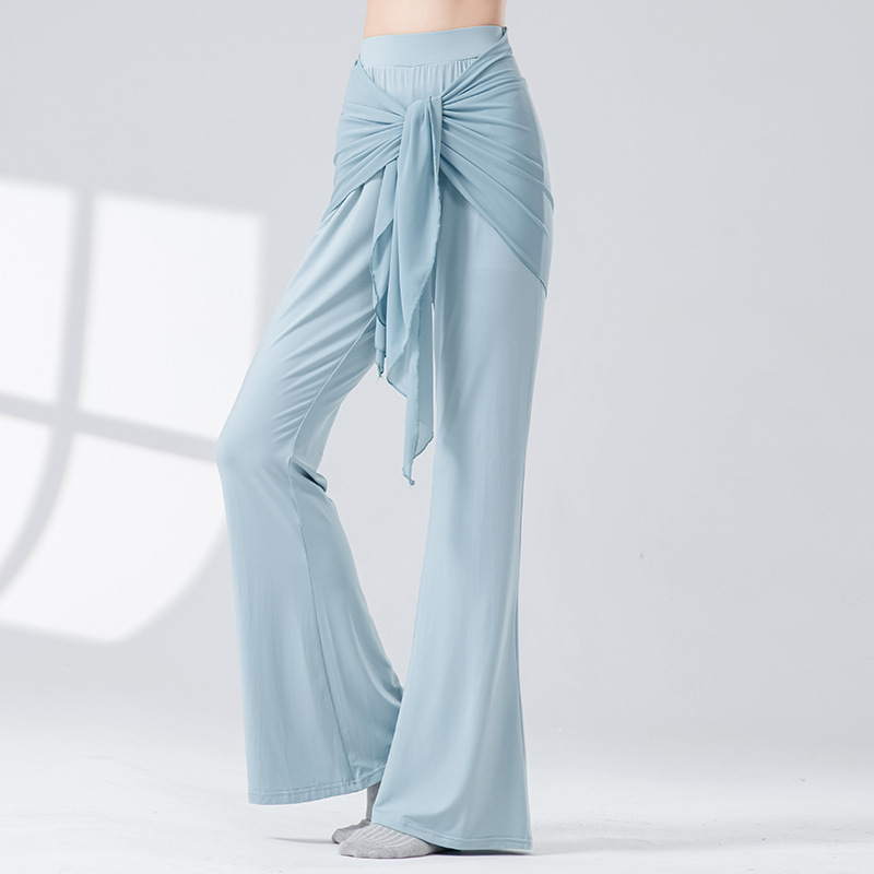 Современная одежда для танцев для женщин, новые свободные брюки с высокой талией и широкими штанинами с лентами, классические брюки для танцев и йоги для взрослых.