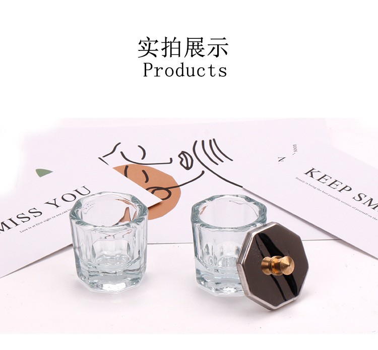 Инструмент для ногтей хрустальный стакан маленький восьмиугольный стакан с крышкой