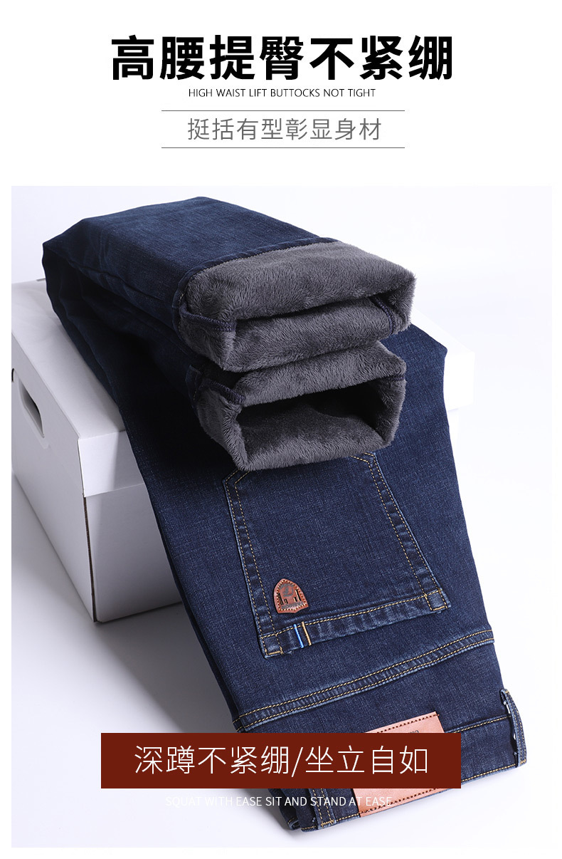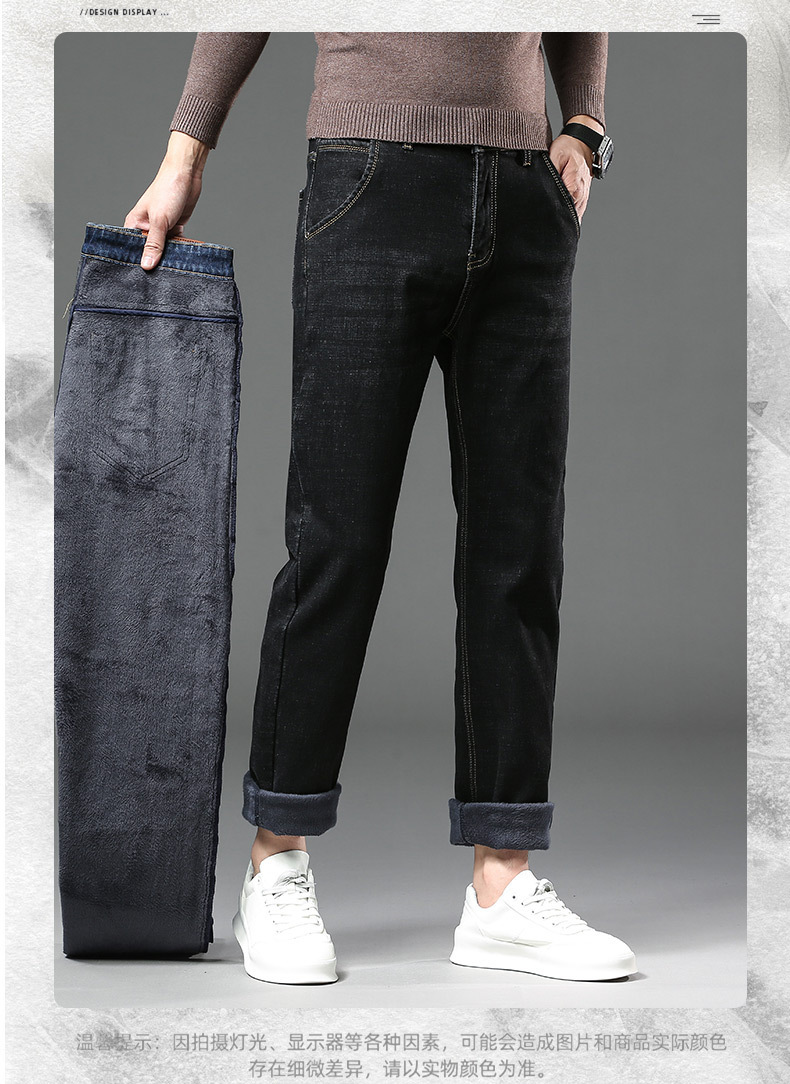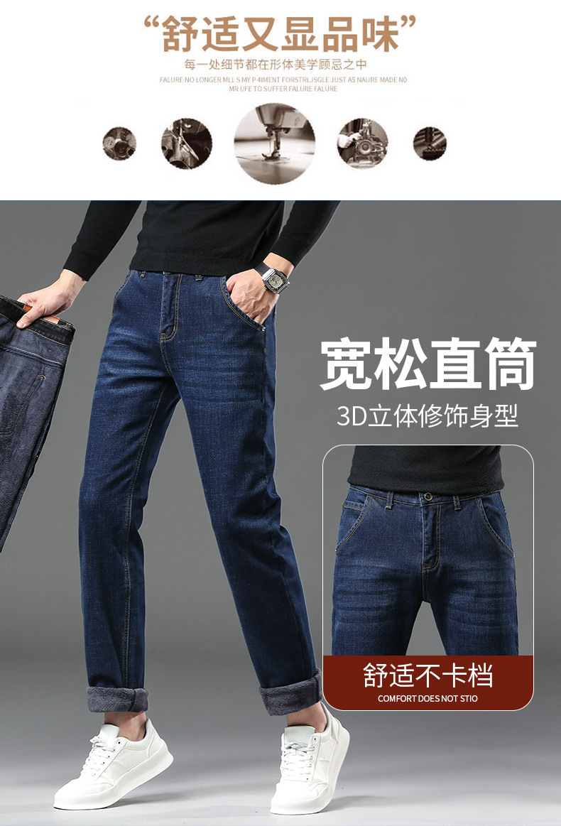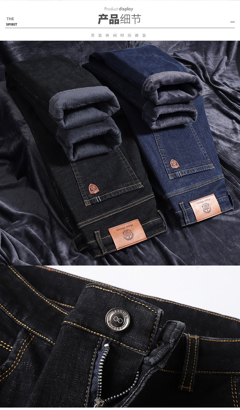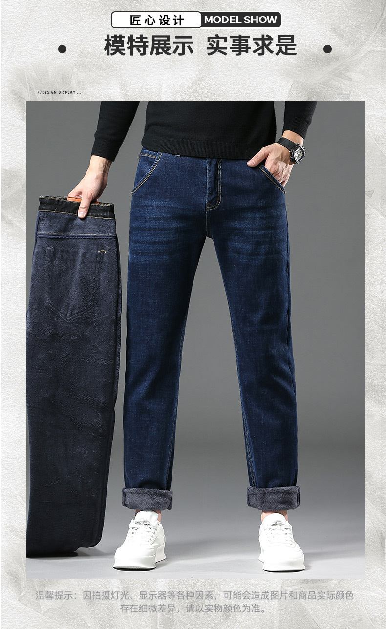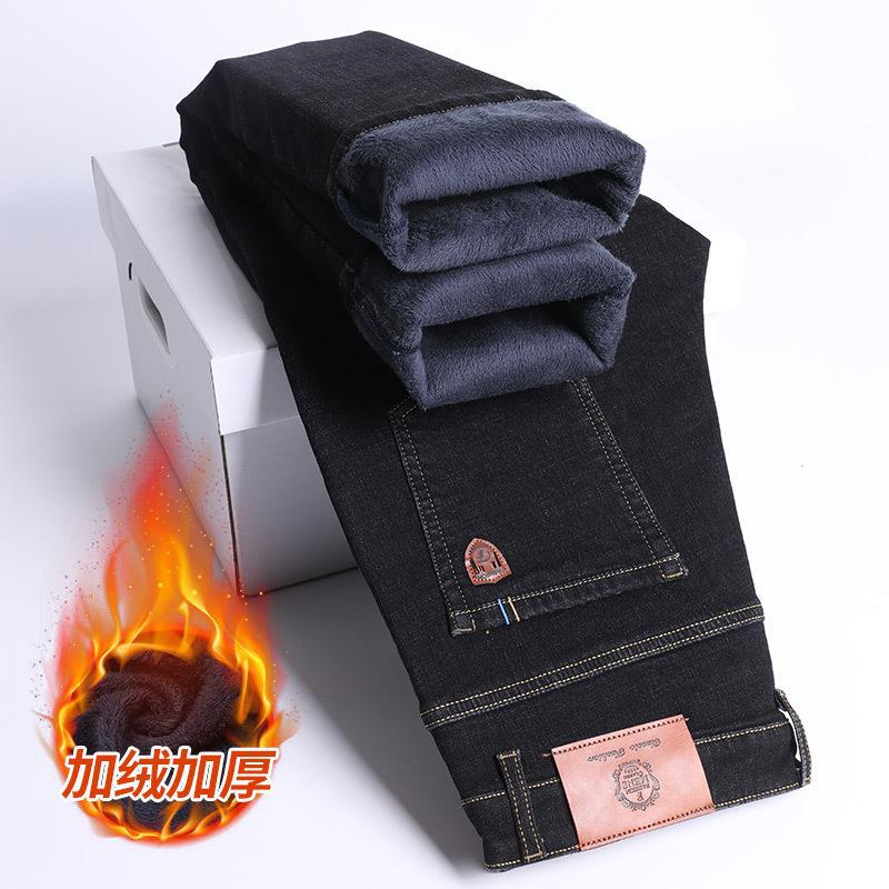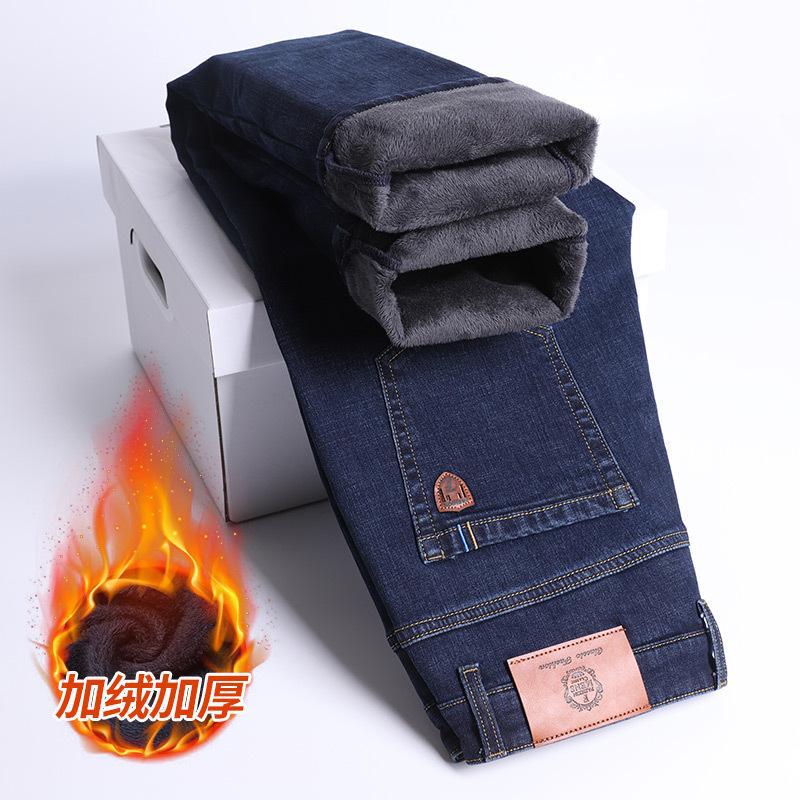Зимние бархатные джинсы мужские осенние и зимние свободные прямые эластичные дикие мужские толстые теплые брюки трансграничная внешняя торговля