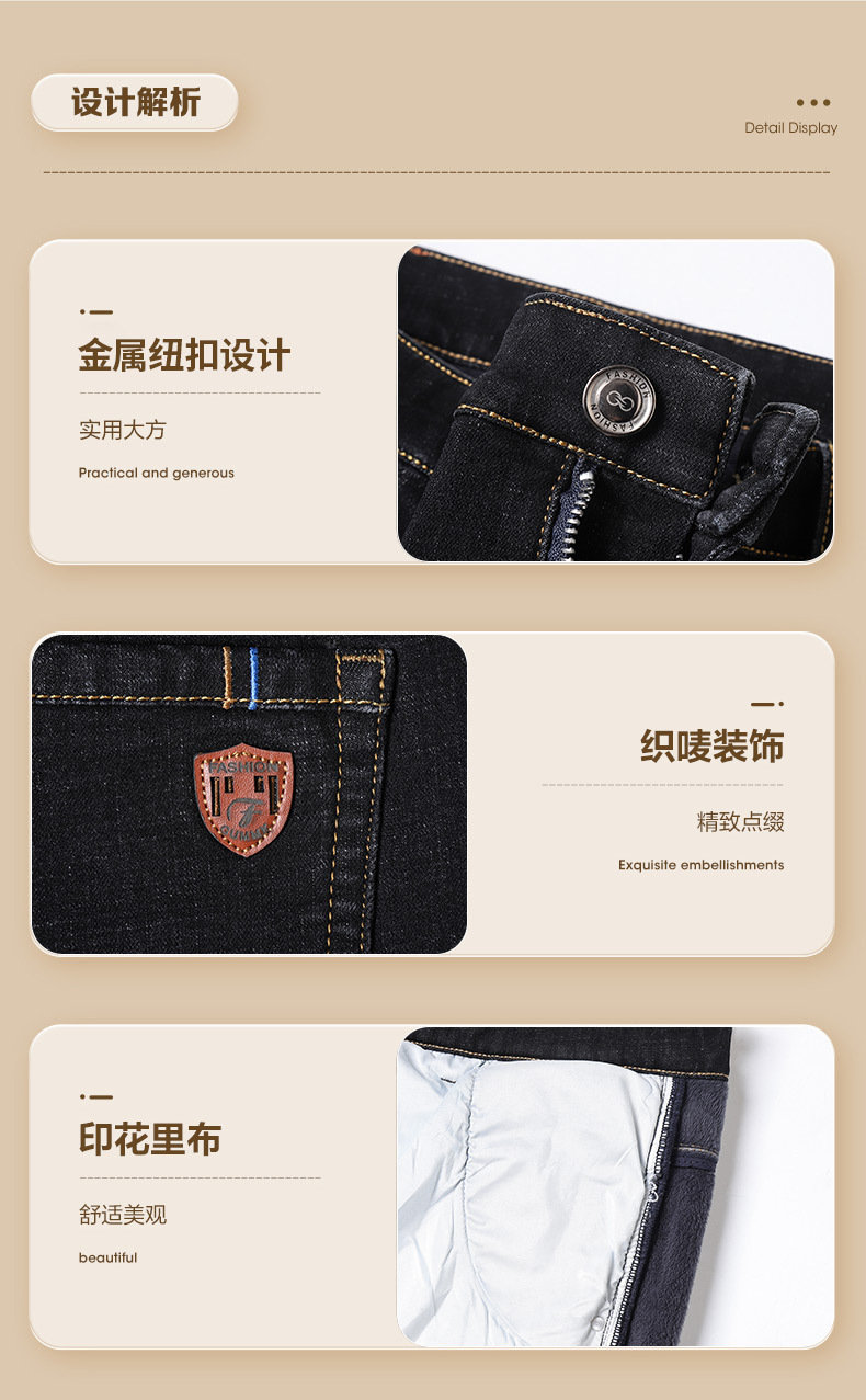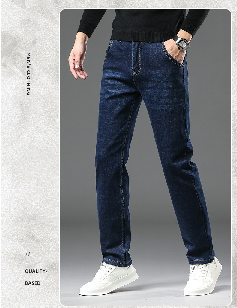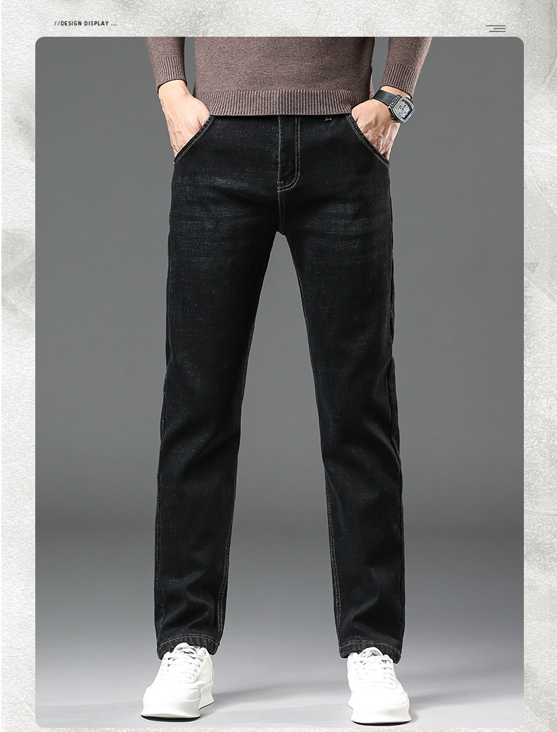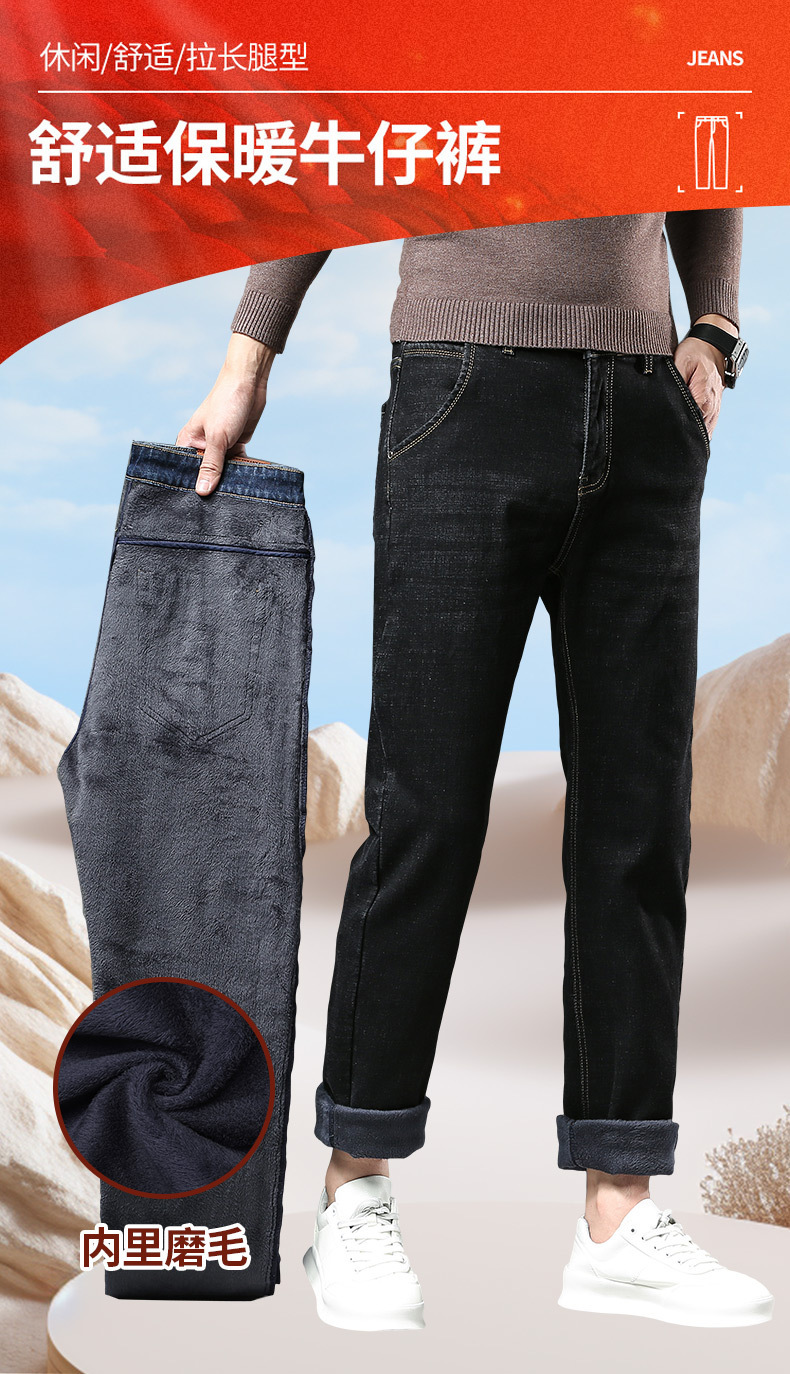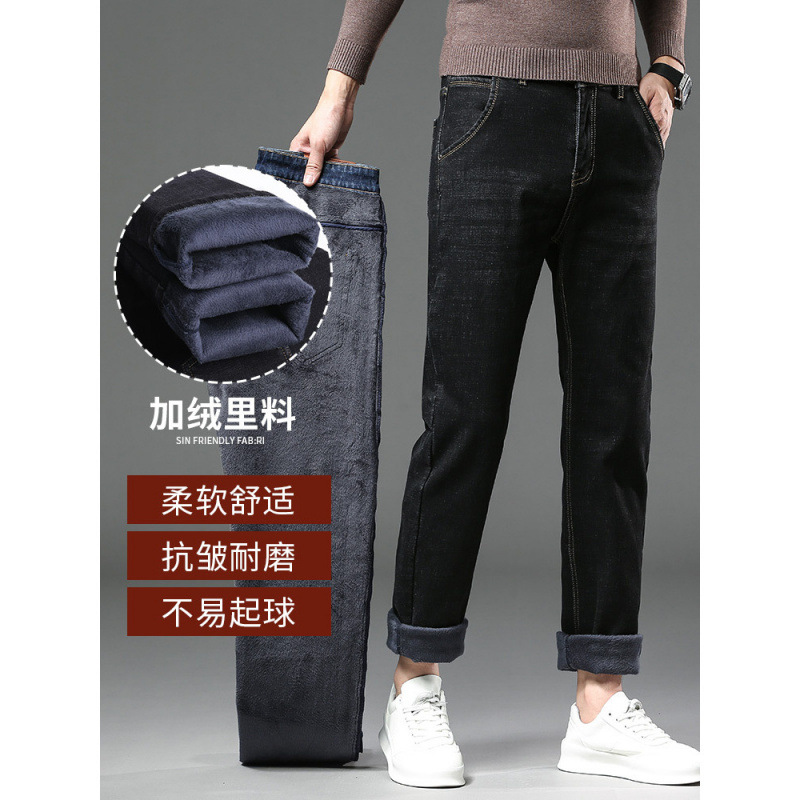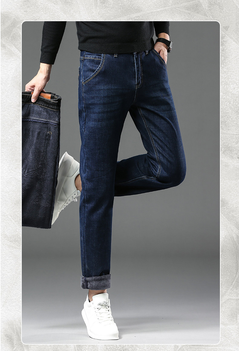 Зимние бархатные джинсы мужские осенние и зимние свободные прямые эластичные дикие мужские толстые теплые брюки трансграничная внешняя торговля