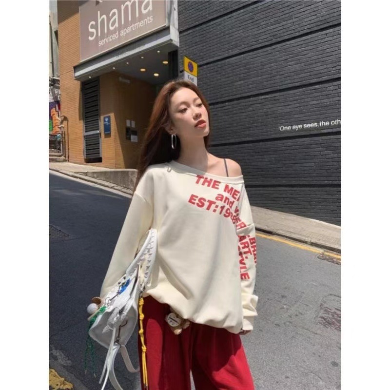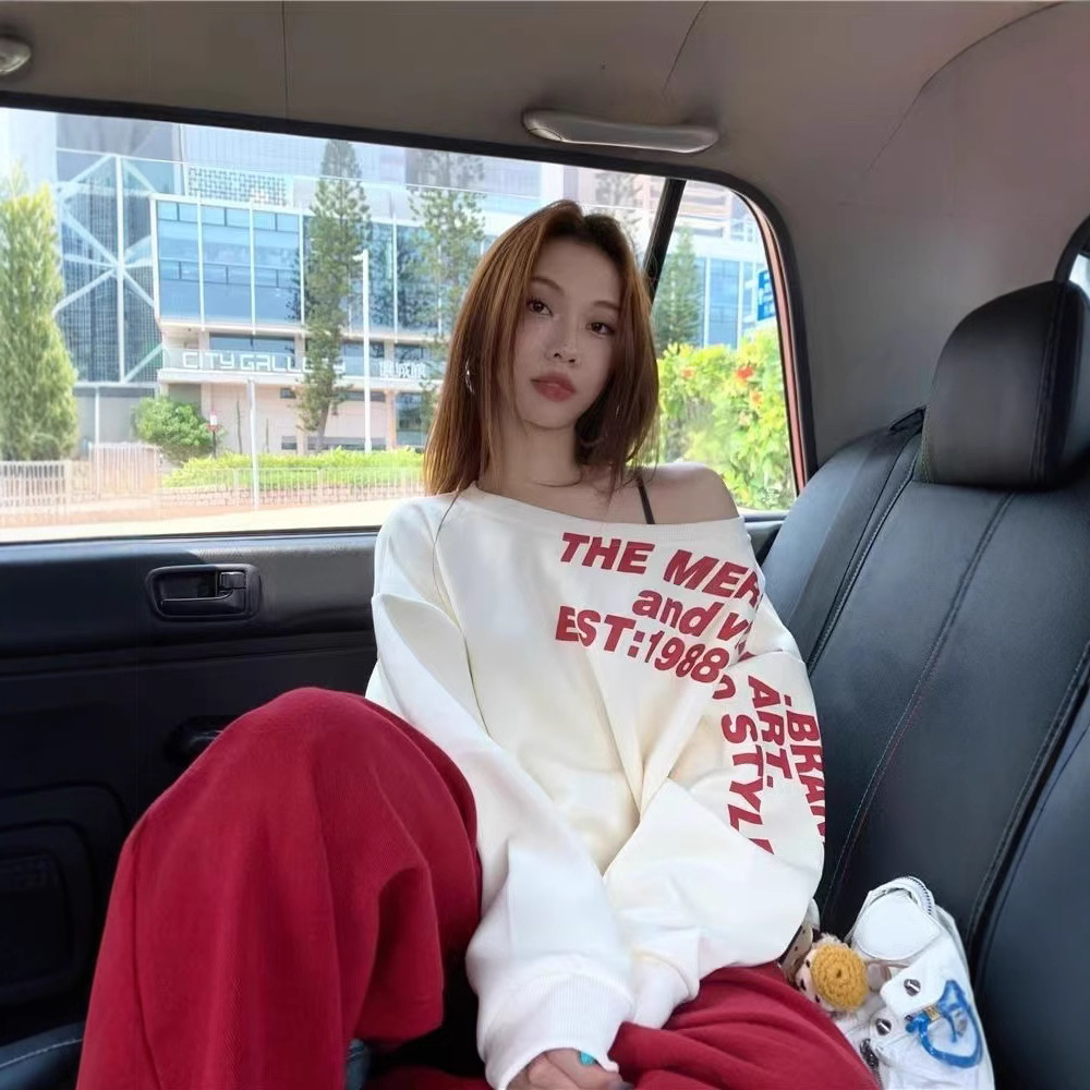 Rins Буквенный дизайн ощущает косой плечо осенью и зимой новый свитера с длинными рукавами