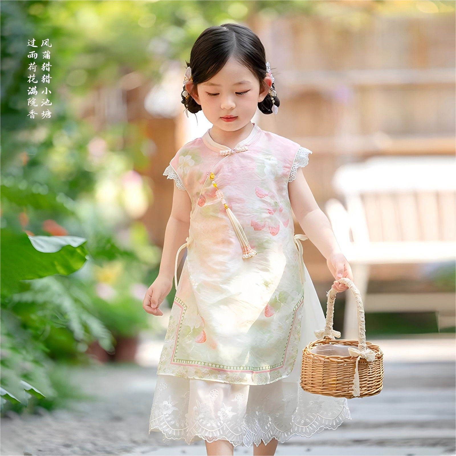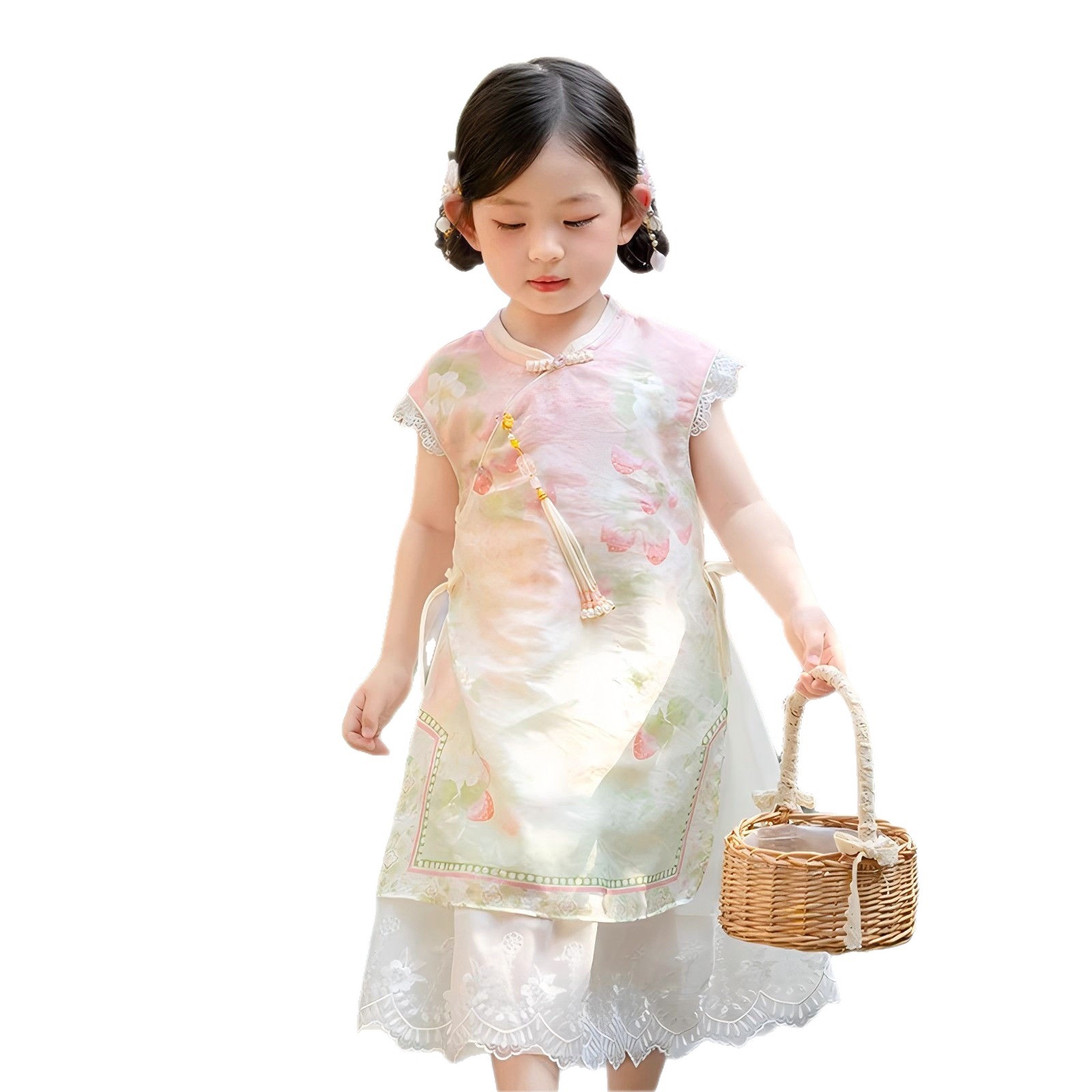 Новое детское платье-ципао в китайском стиле для девочек, летнее, в традиционном китайском стиле, платье принцессы, коллекция 2025 года