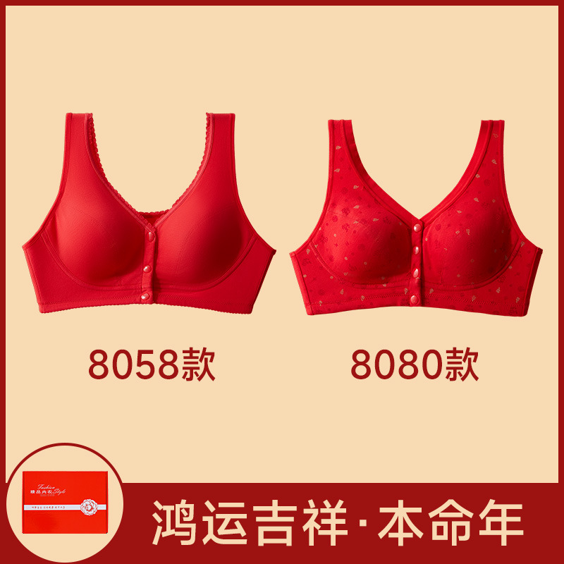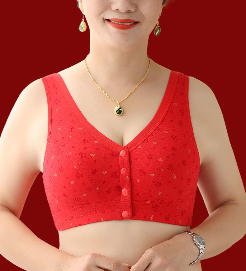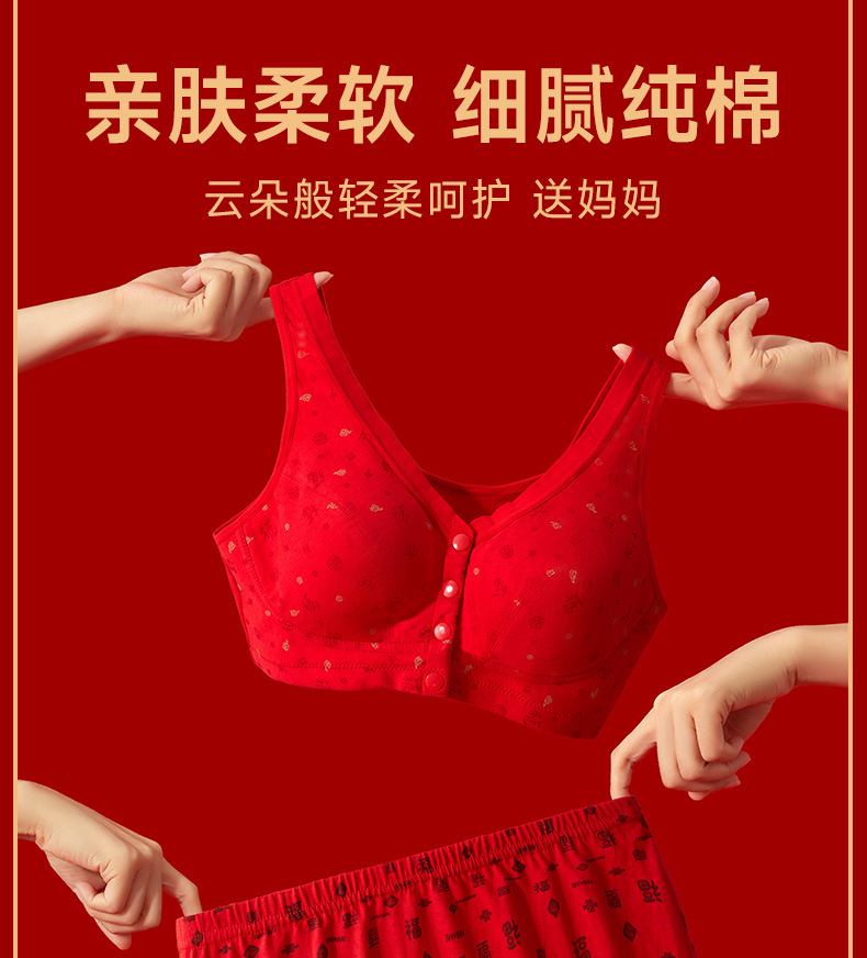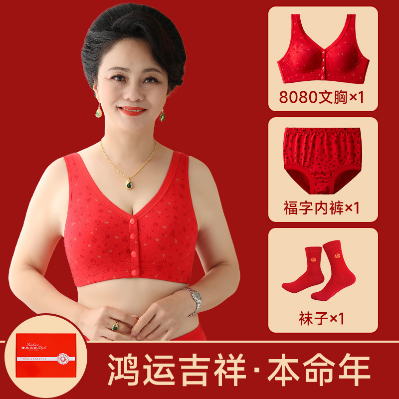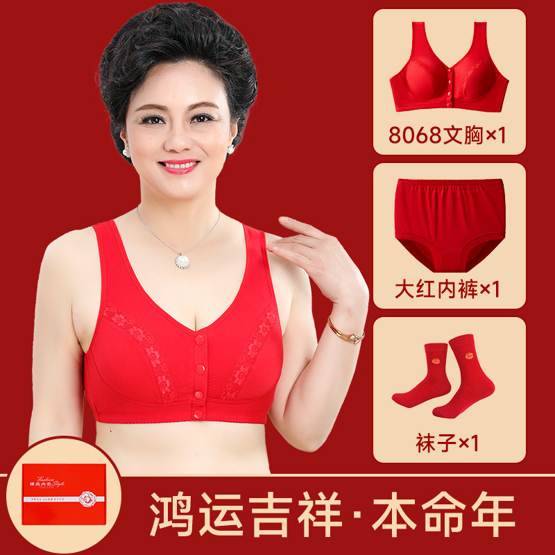 Год змеи, год рождения, нижнее белье, женский хлопок, пожилой жилет передняя пряжка бюстгальтер, большие красные трусики мама бюстгальтер без стальных кругов