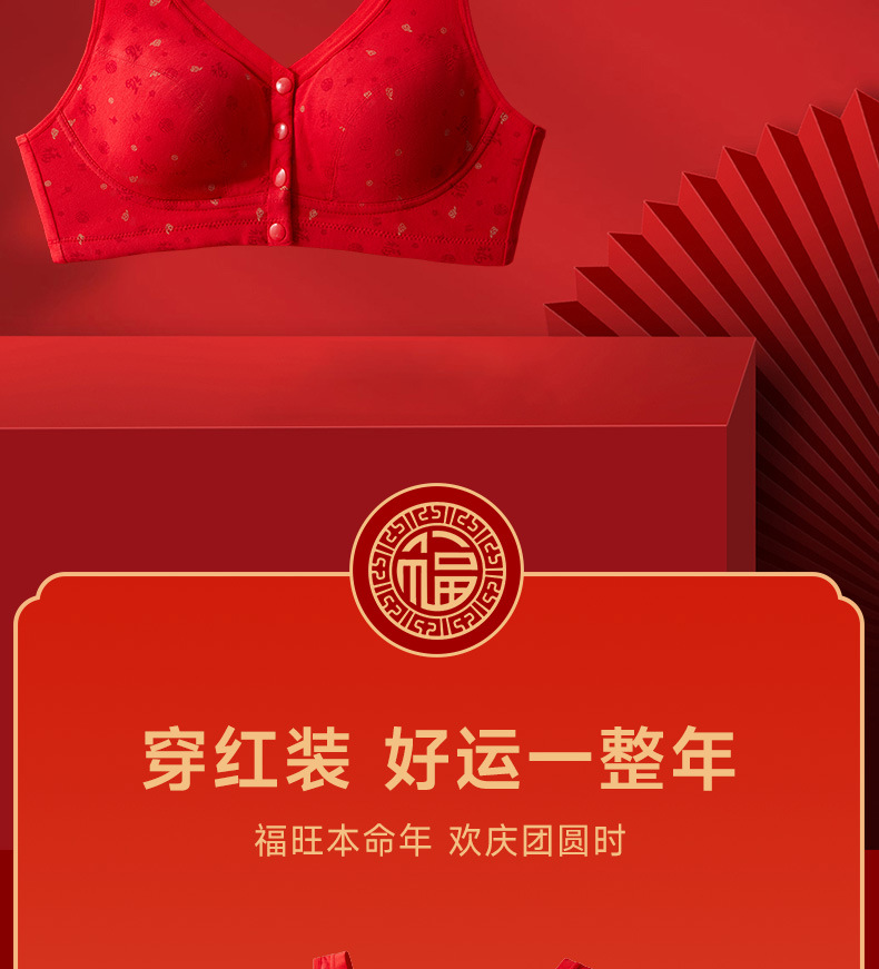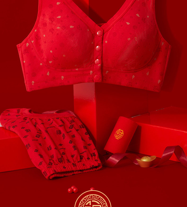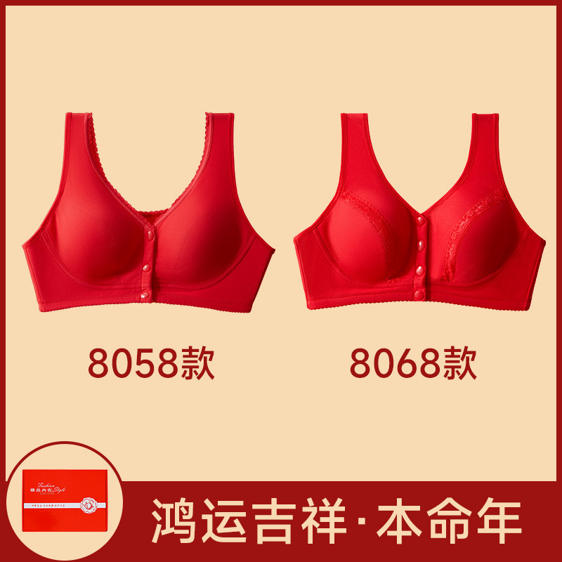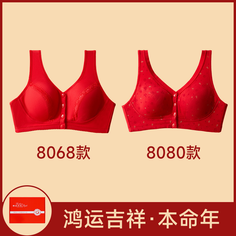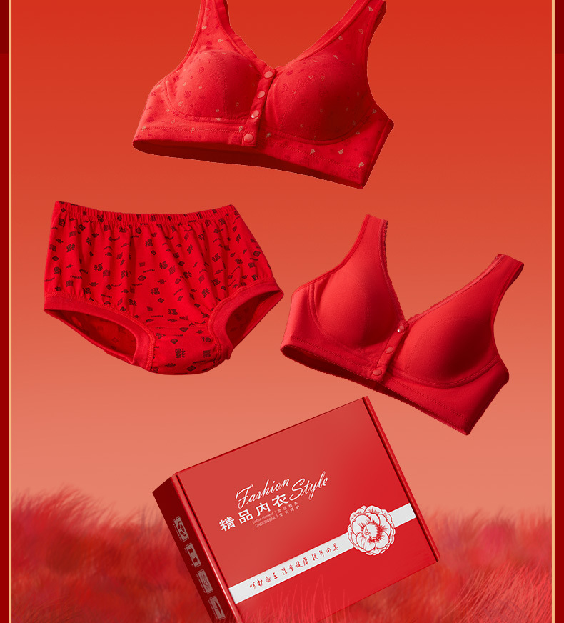 Год змеи, год рождения, нижнее белье, женский хлопок, пожилой жилет передняя пряжка бюстгальтер, большие красные трусики мама бюстгальтер без стальных кругов