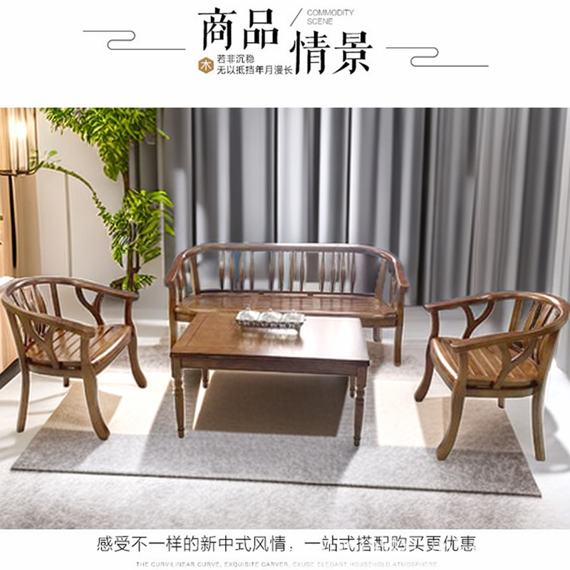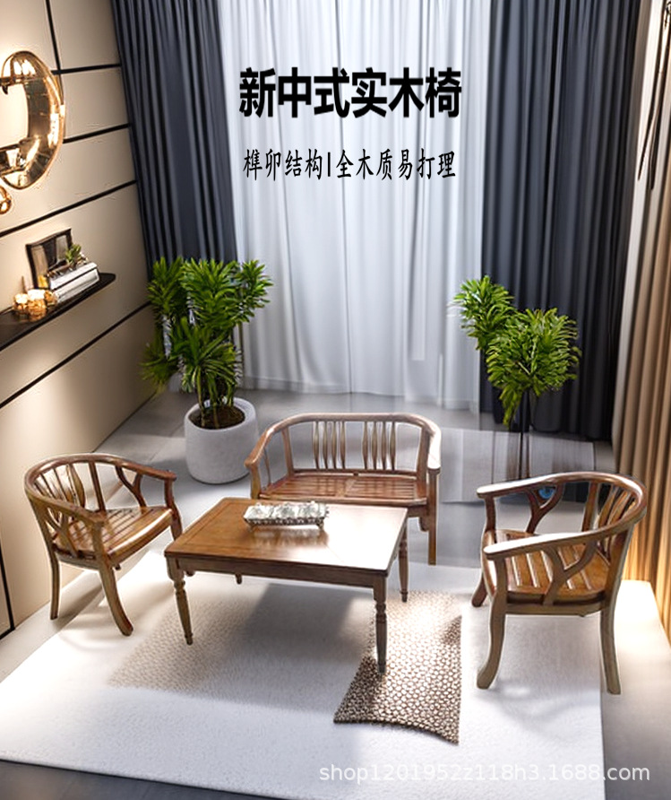 Трехкомплектный набор: дубовые кресла, журнальный столик, стулья из массива дерева для переговоров, для дома, квартиры, в современном новом китайском стиле, в стиле Мин.