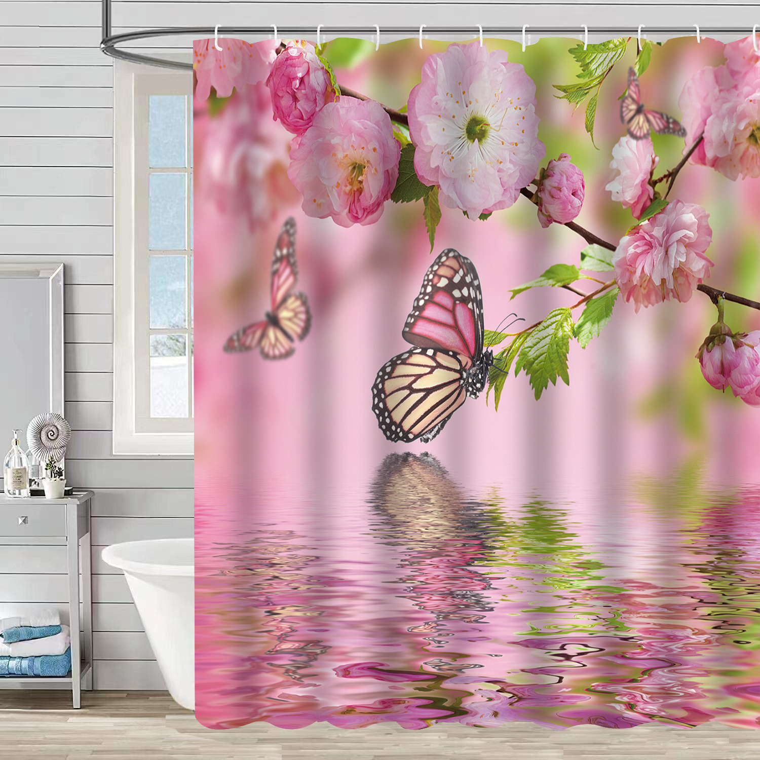 Amazon Бабочка Растение Занавеска для душа Водонепроницаемая подвесная занавеска Защита от плесени Цифровая печать Занавеска для душа в ванной комнате Перегородка без перфорации