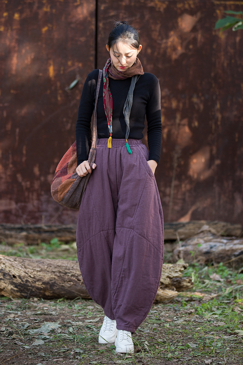 Зимние женские брюки-фонарики из рами нового фасона, утепленные, окрашенные, в стиле ретро, хлопок-лен, для медитации и тай-чи