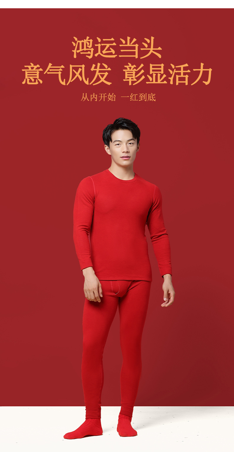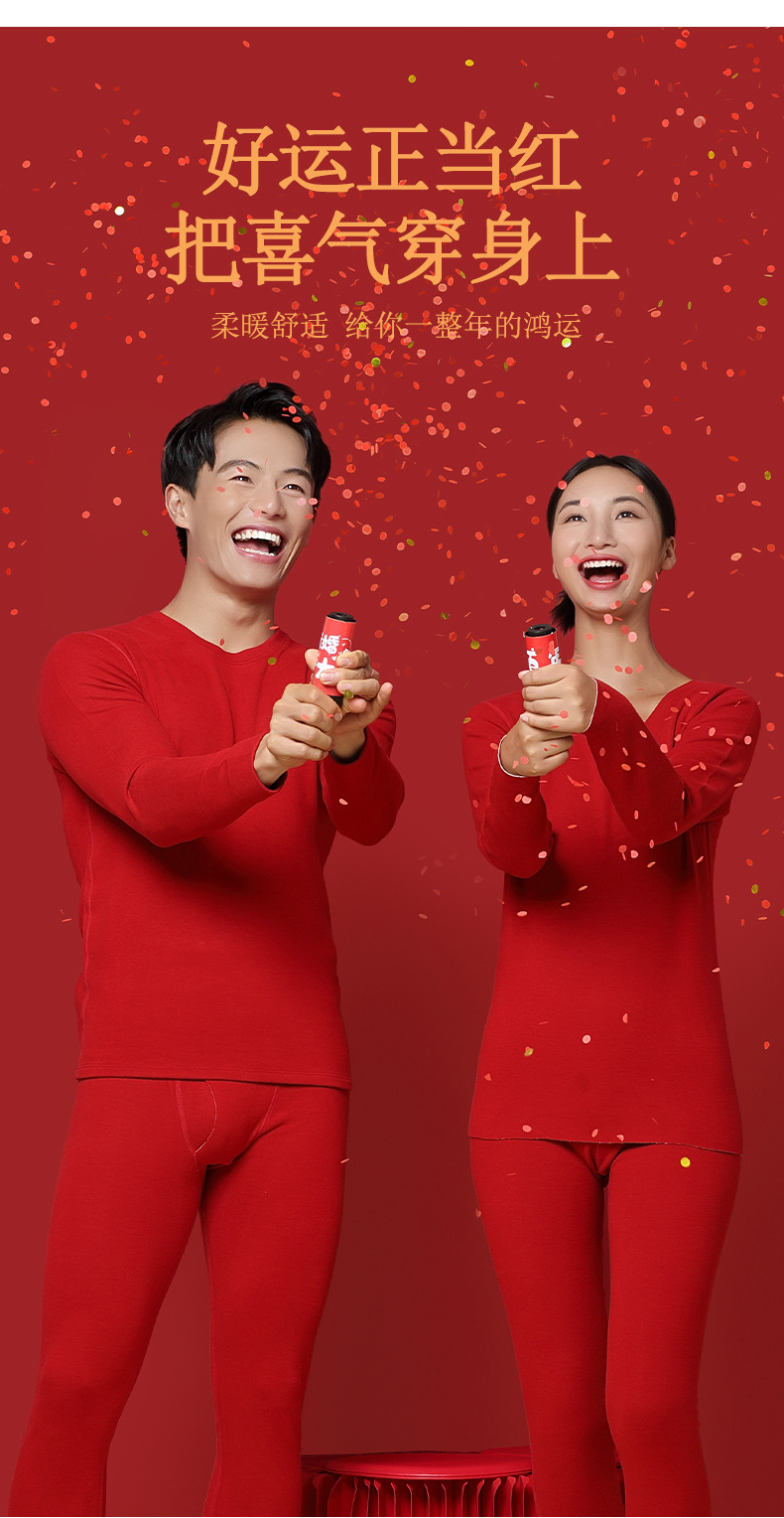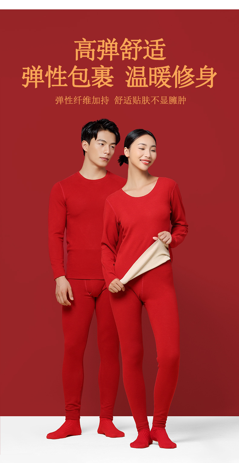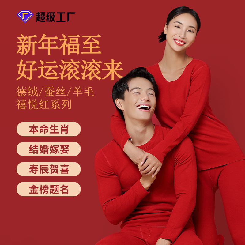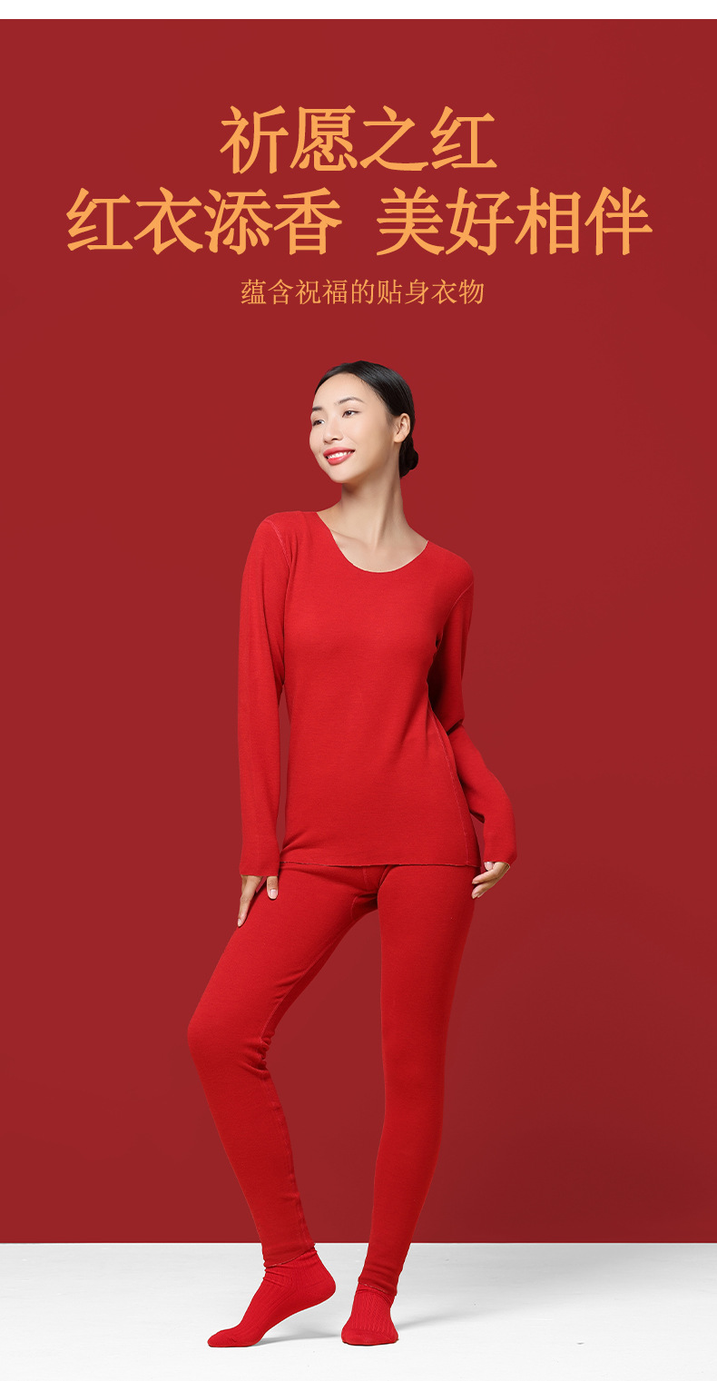 Новый осенний и зимний шелковый шерстяной парой свадебный год плюс бархат утолщенный большой красный нижний комплект термобелья