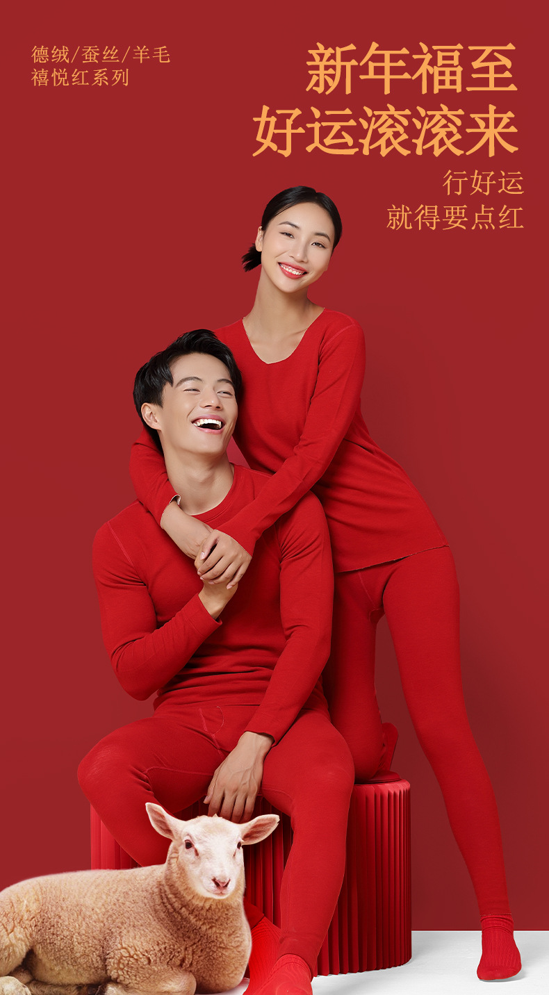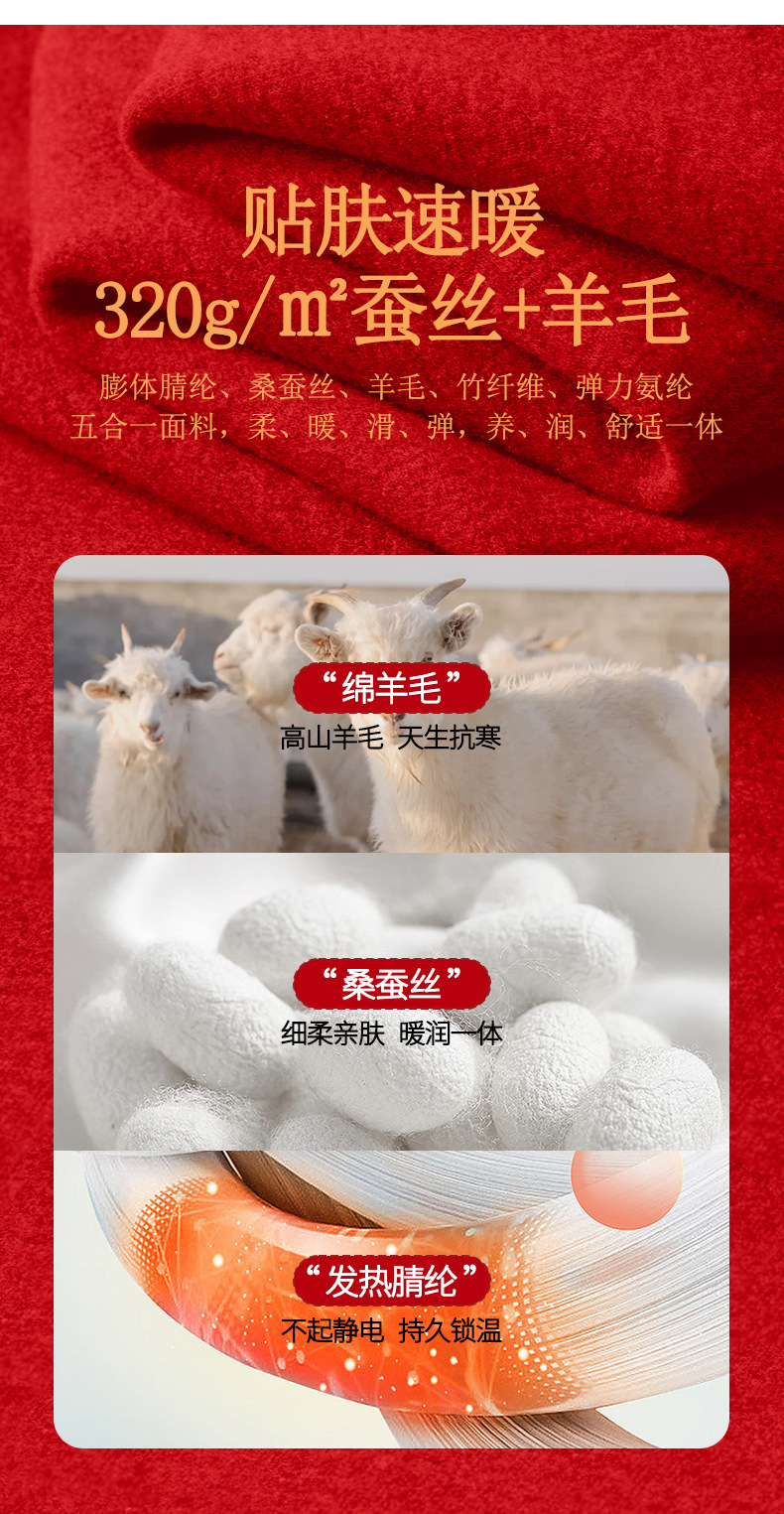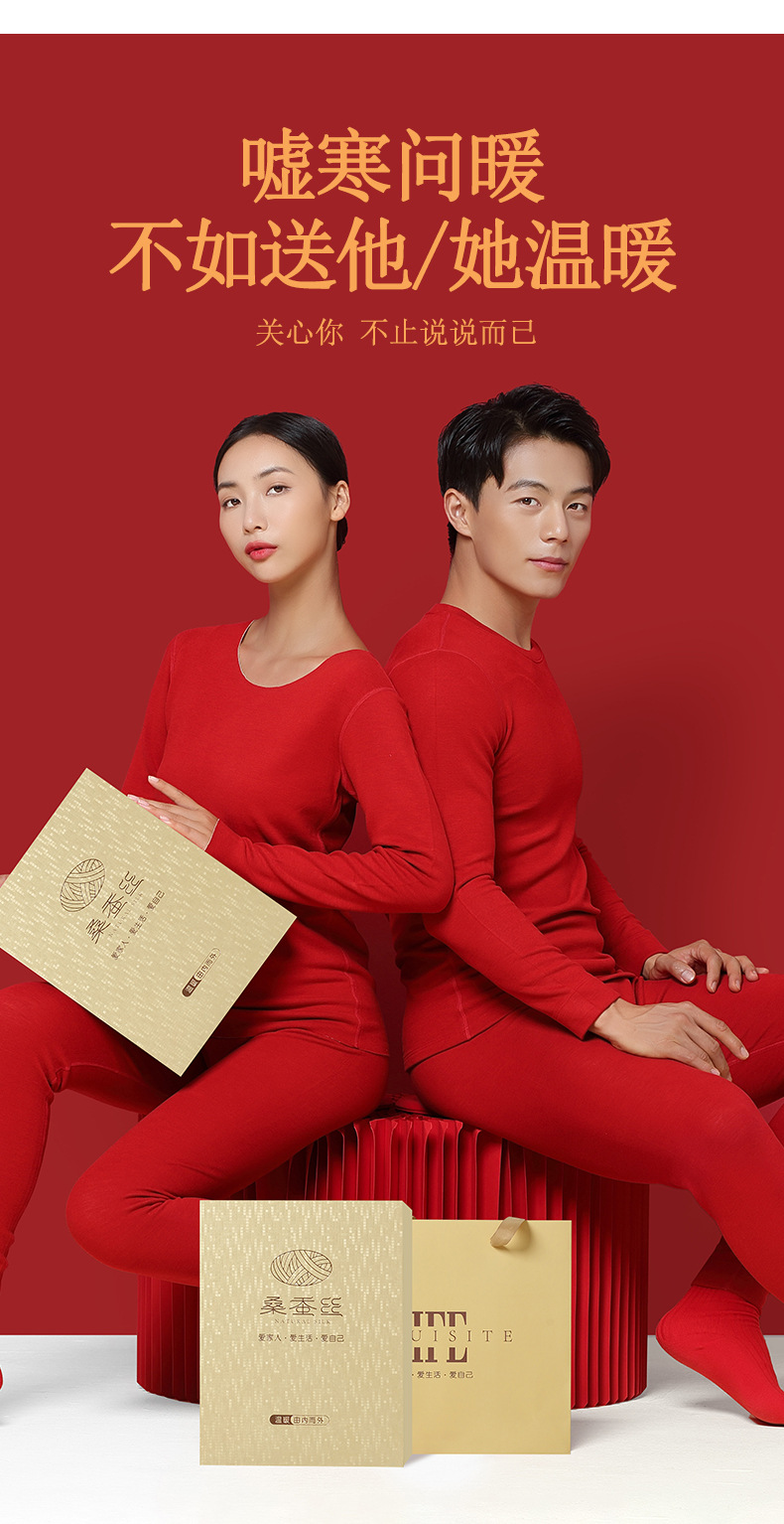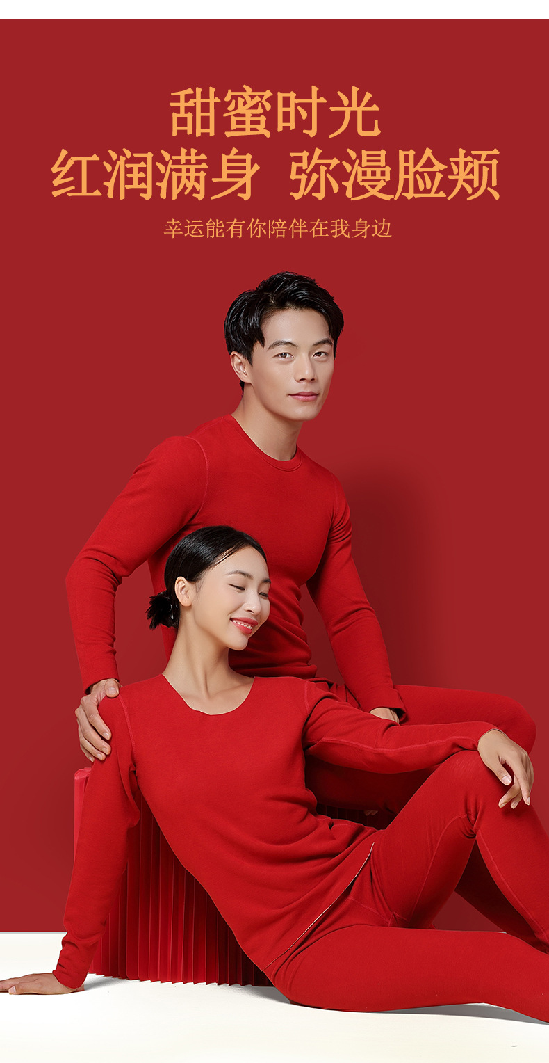 Новый осенний и зимний шелковый шерстяной парой свадебный год плюс бархат утолщенный большой красный нижний комплект термобелья