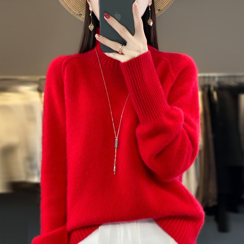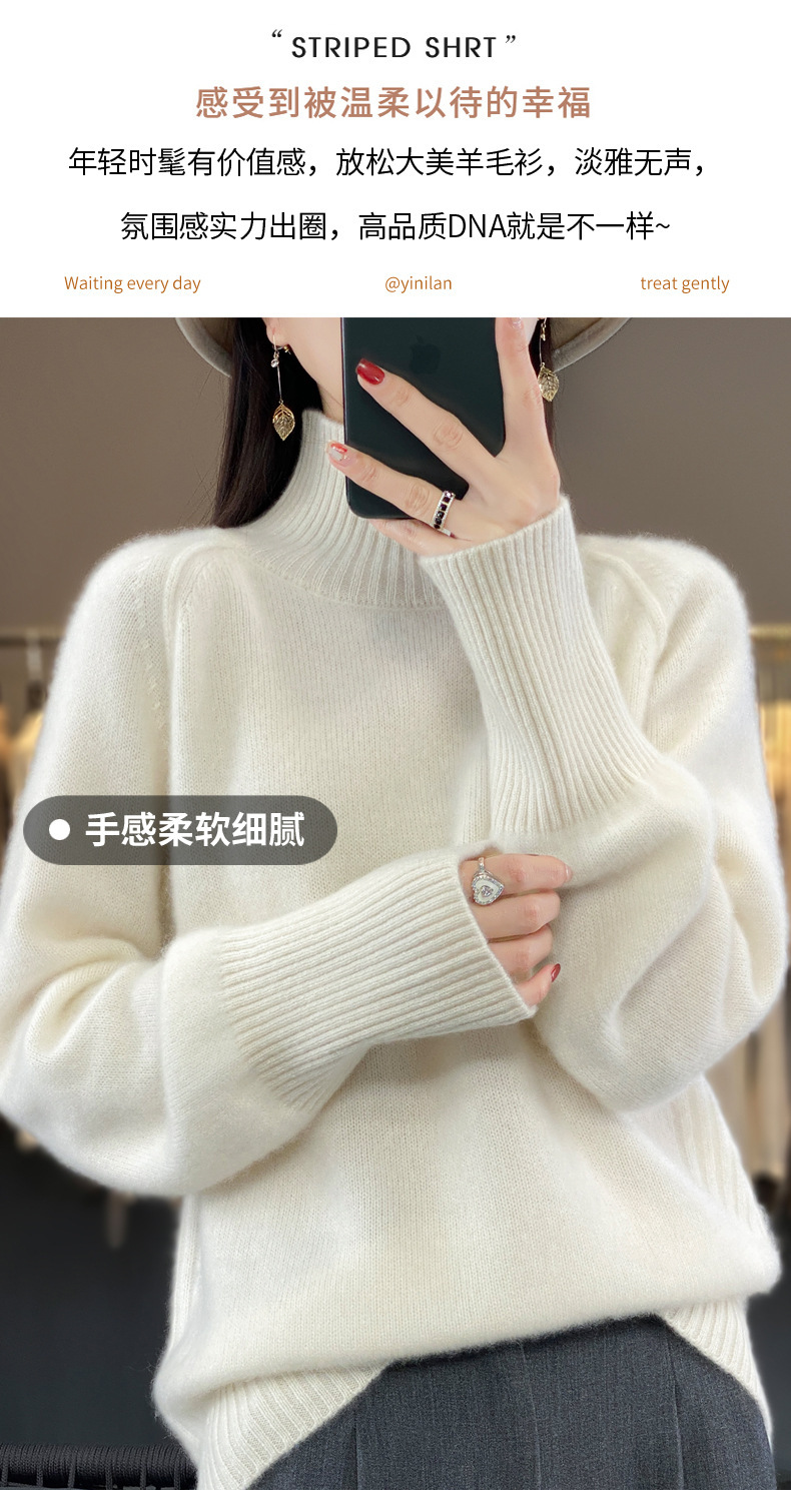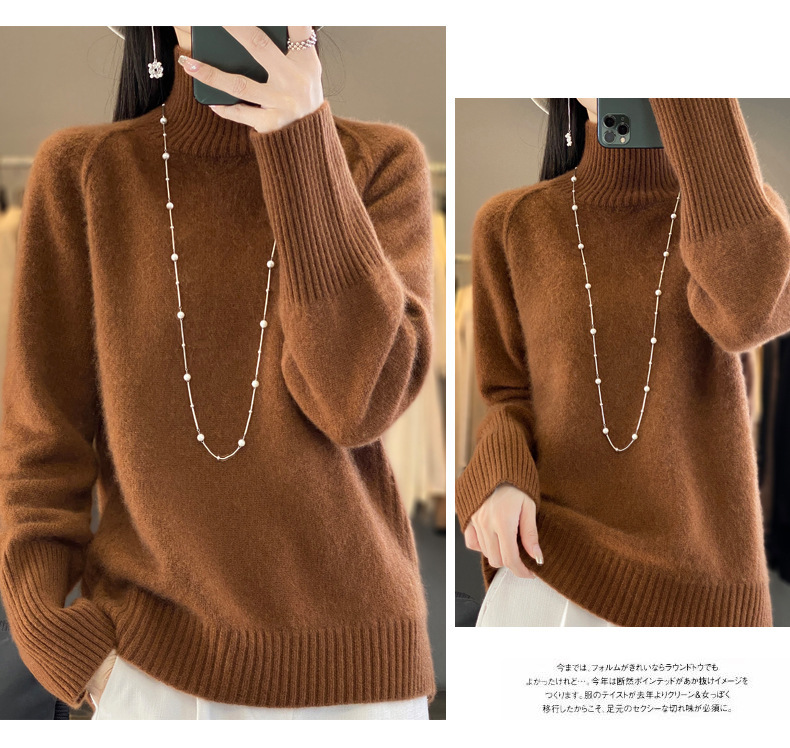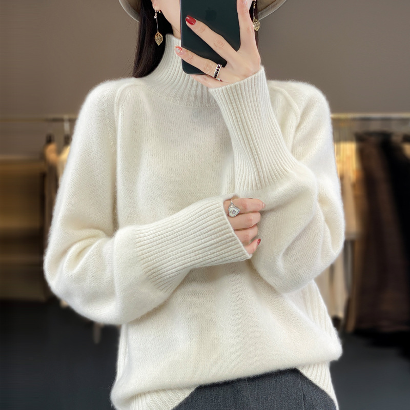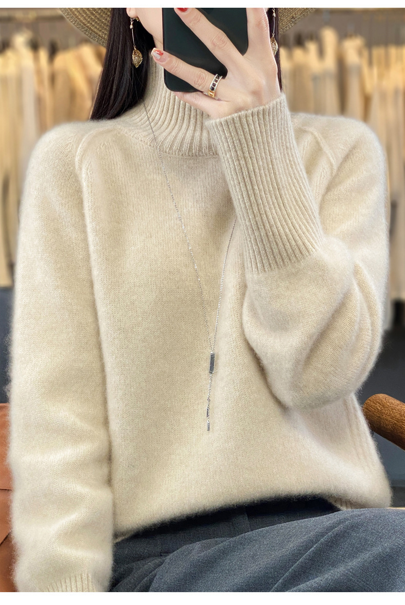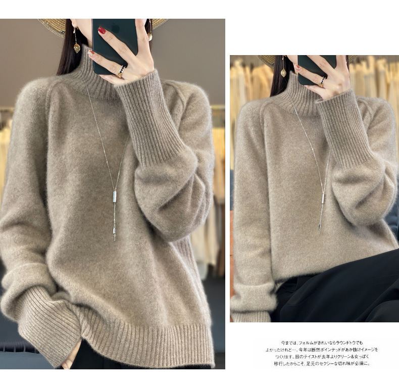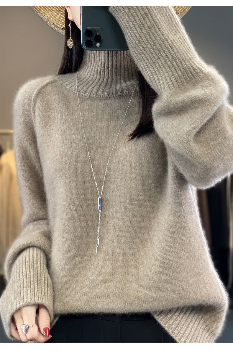 Оптовая продажа от производителя: новый стиль 2025 года, утолщенный свитер из 100% шерсти с семью иглами, высокий воротник, рукава реглан, в стиле Ван Фэй, для женщин, в наличии.