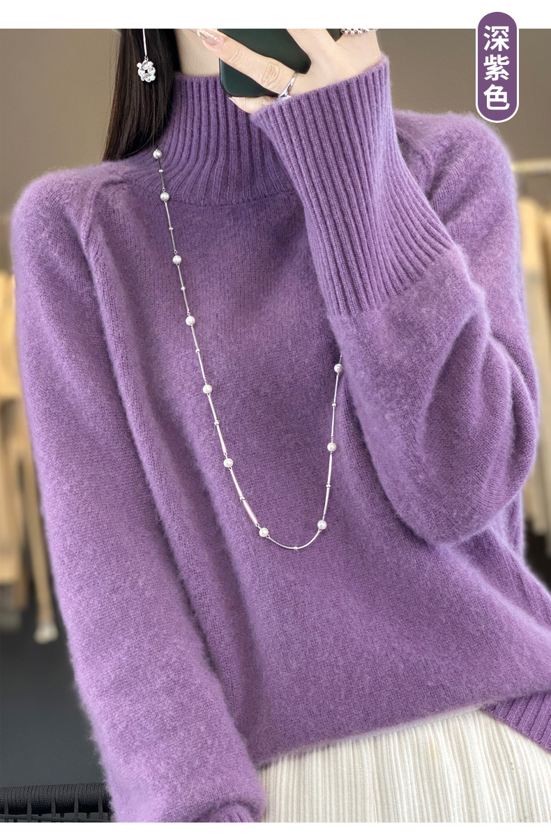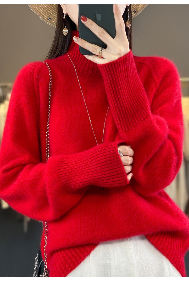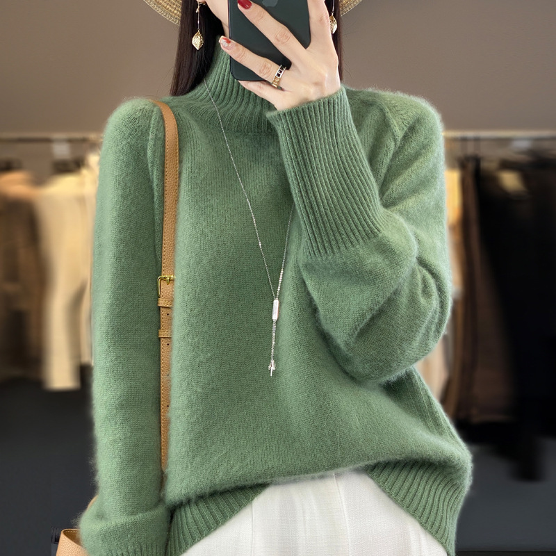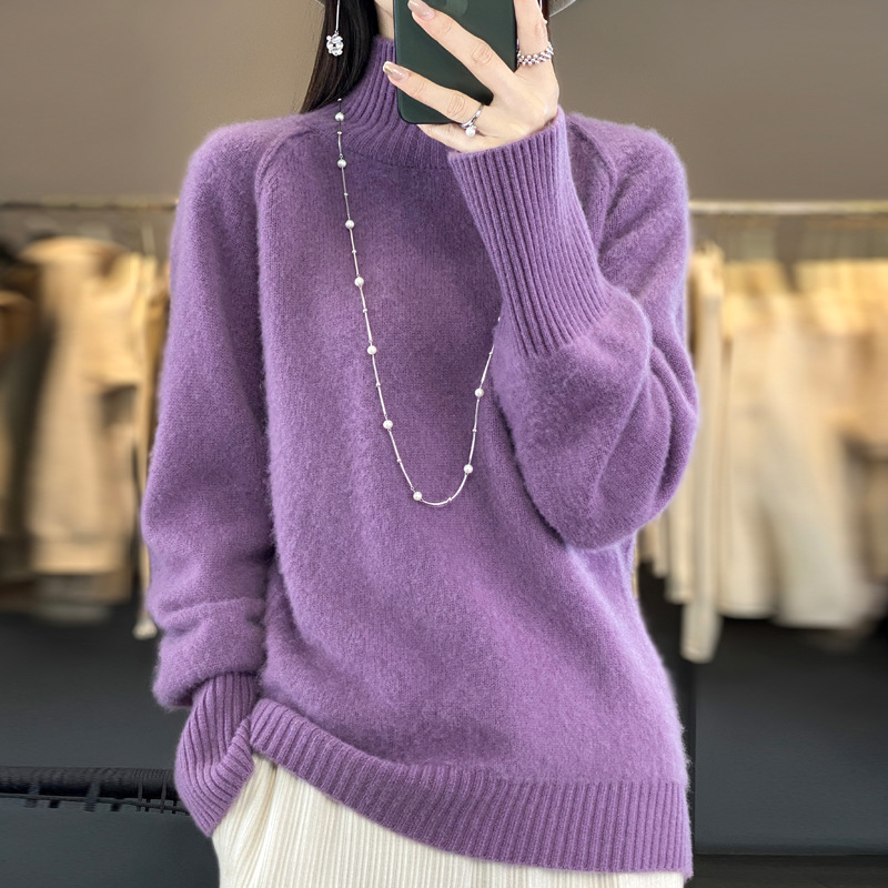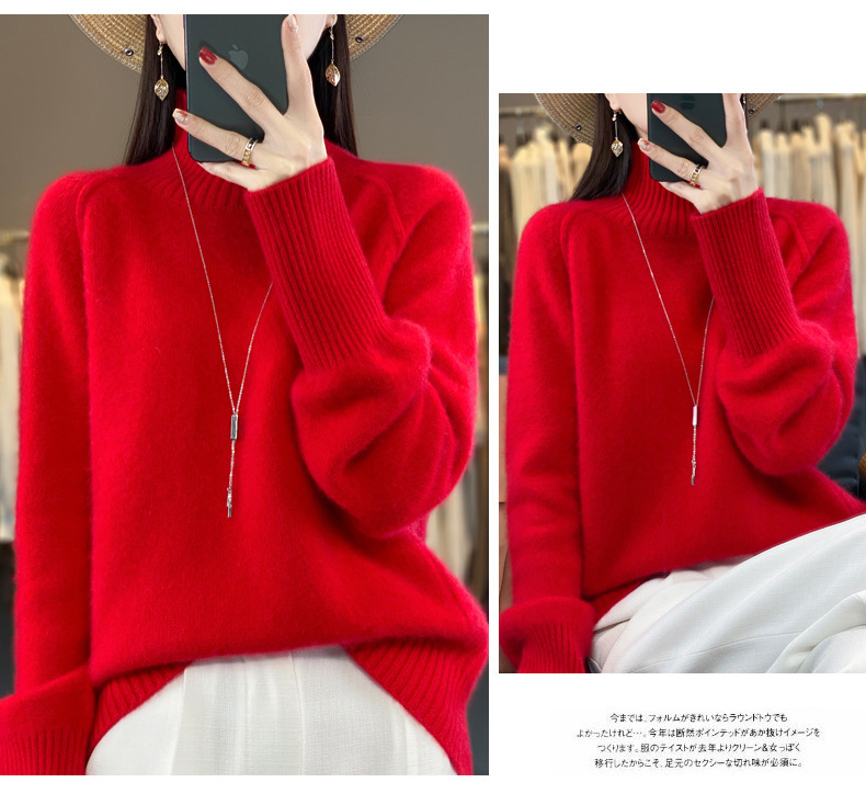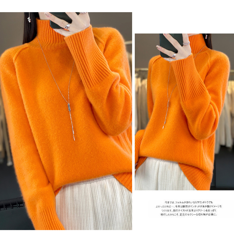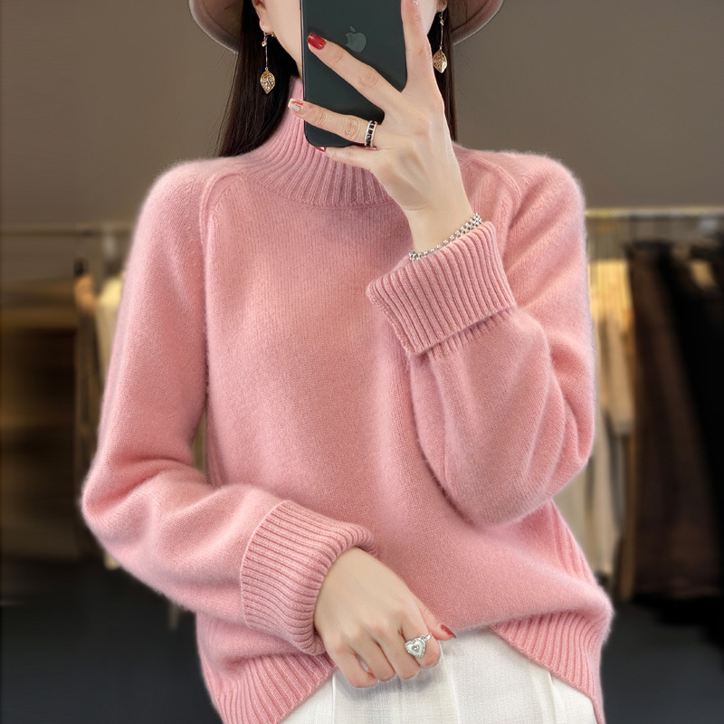 Оптовая продажа от производителя: новый стиль 2025 года, утолщенный свитер из 100% шерсти с семью иглами, высокий воротник, рукава реглан, в стиле Ван Фэй, для женщин, в наличии.