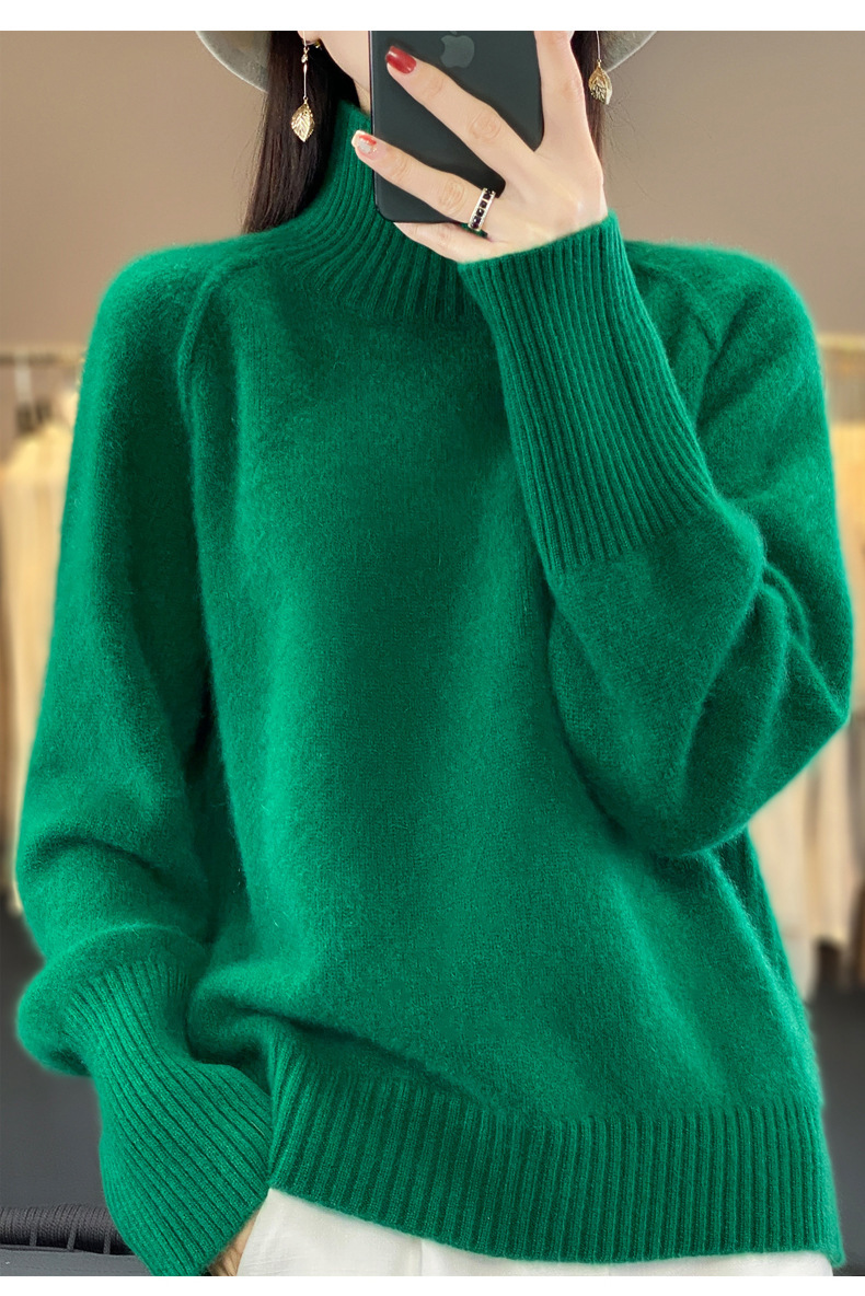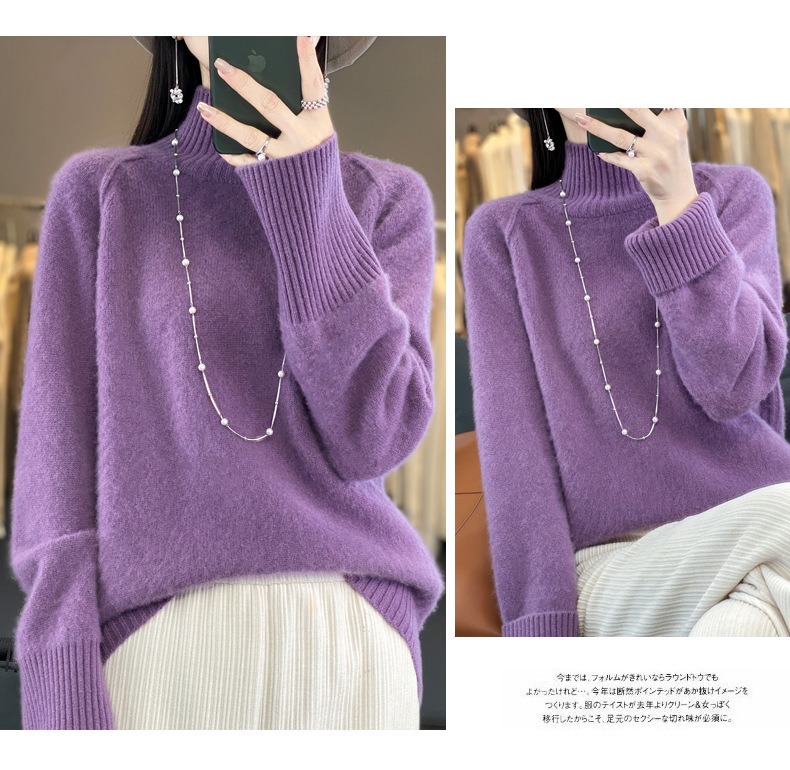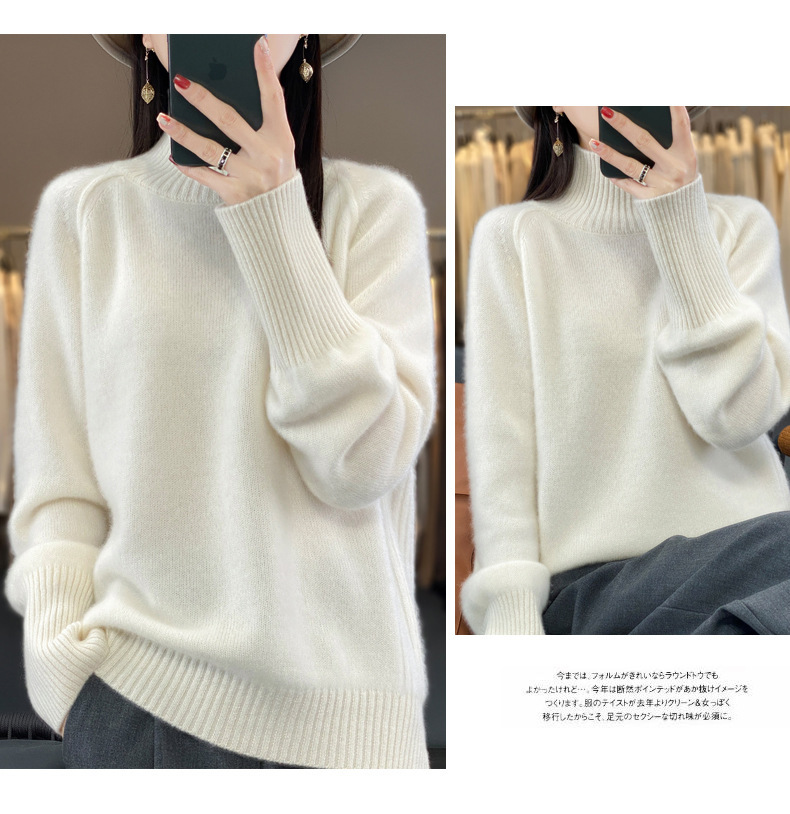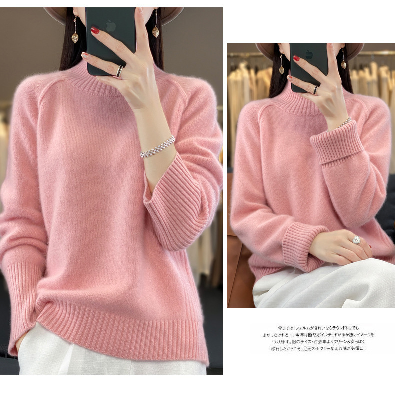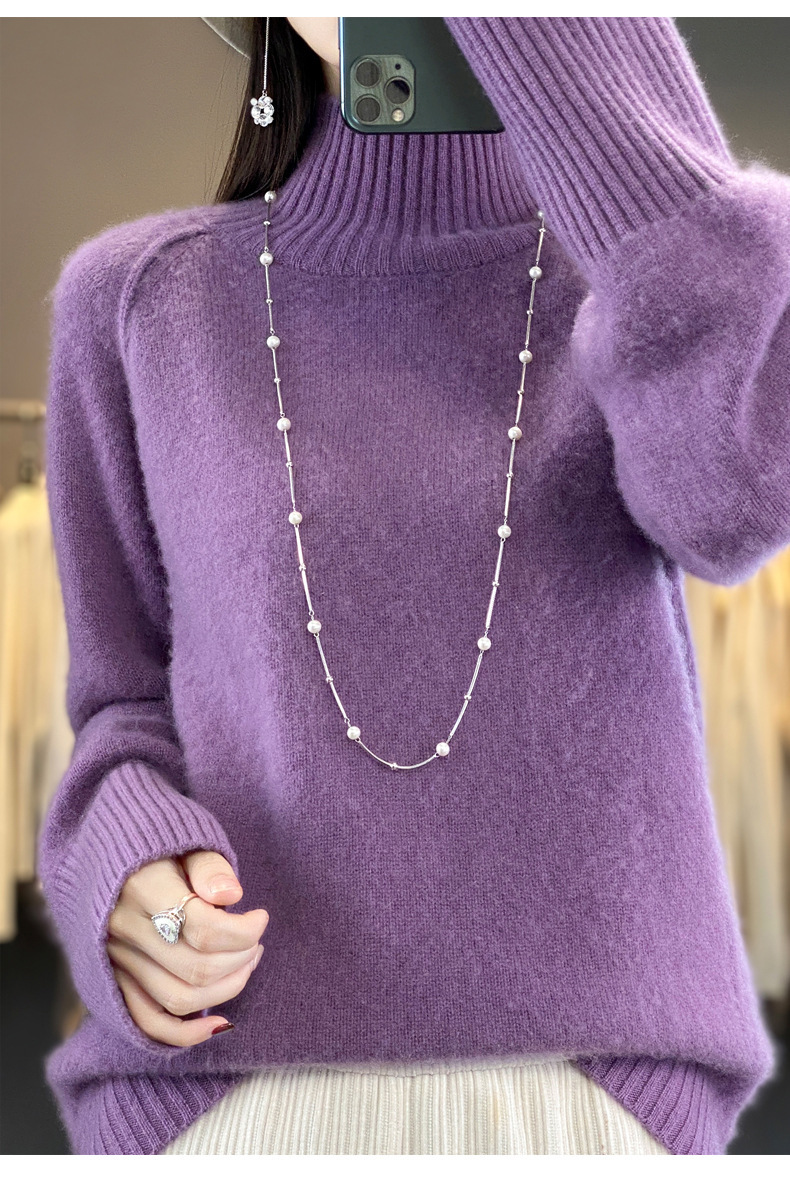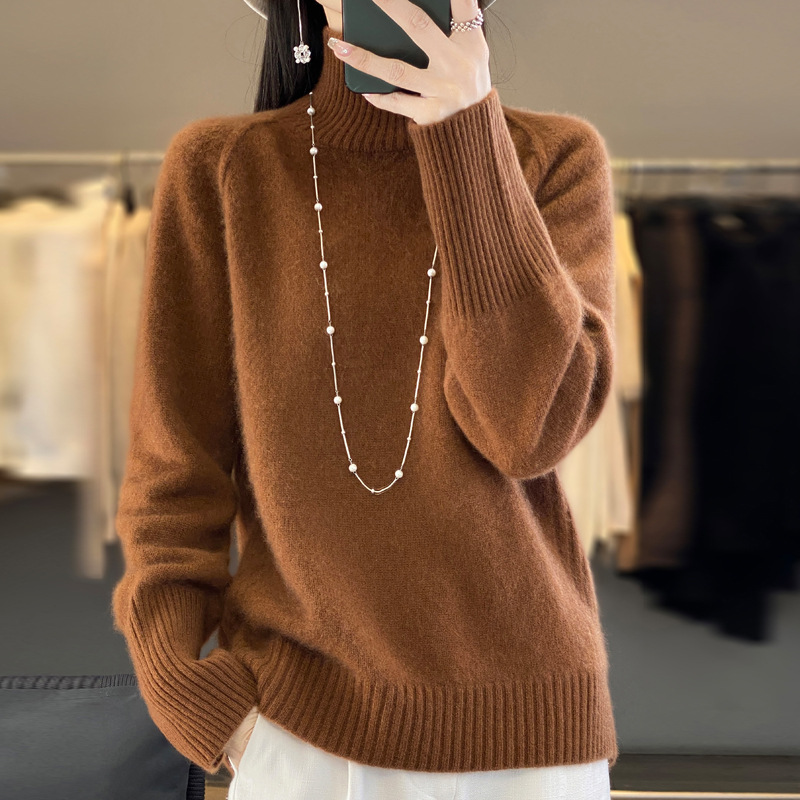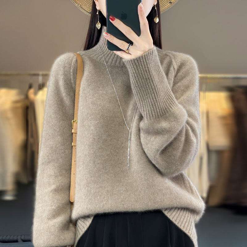 Оптовая продажа от производителя: новый стиль 2025 года, утолщенный свитер из 100% шерсти с семью иглами, высокий воротник, рукава реглан, в стиле Ван Фэй, для женщин, в наличии.