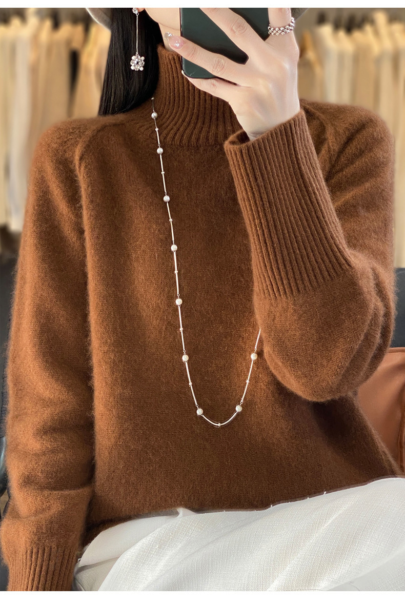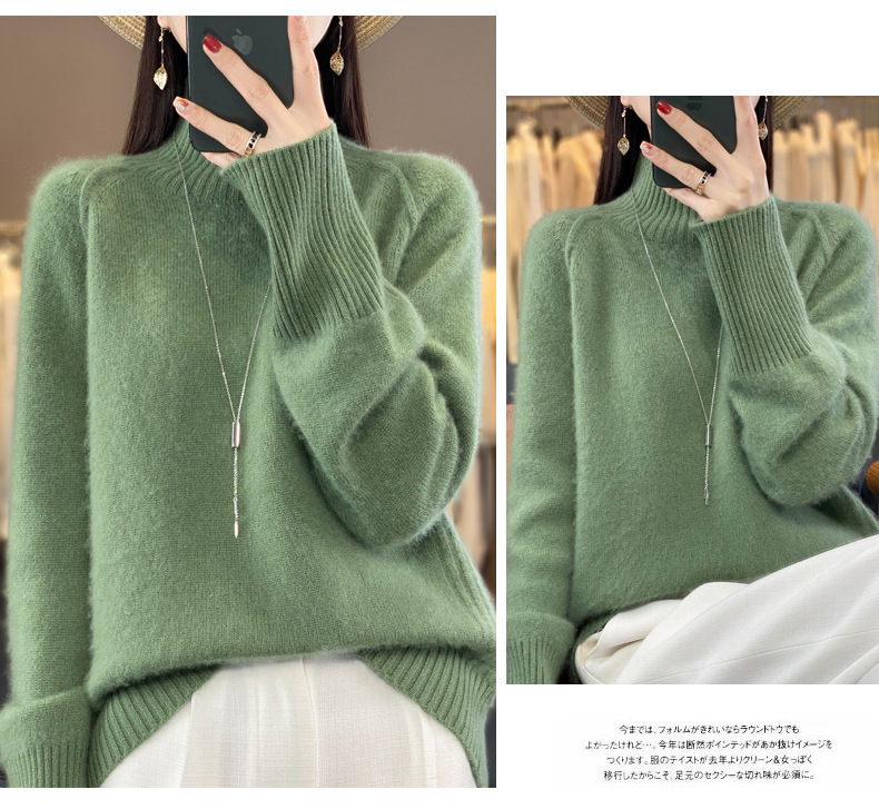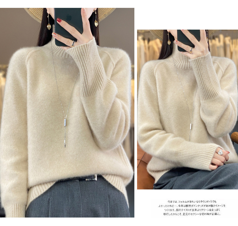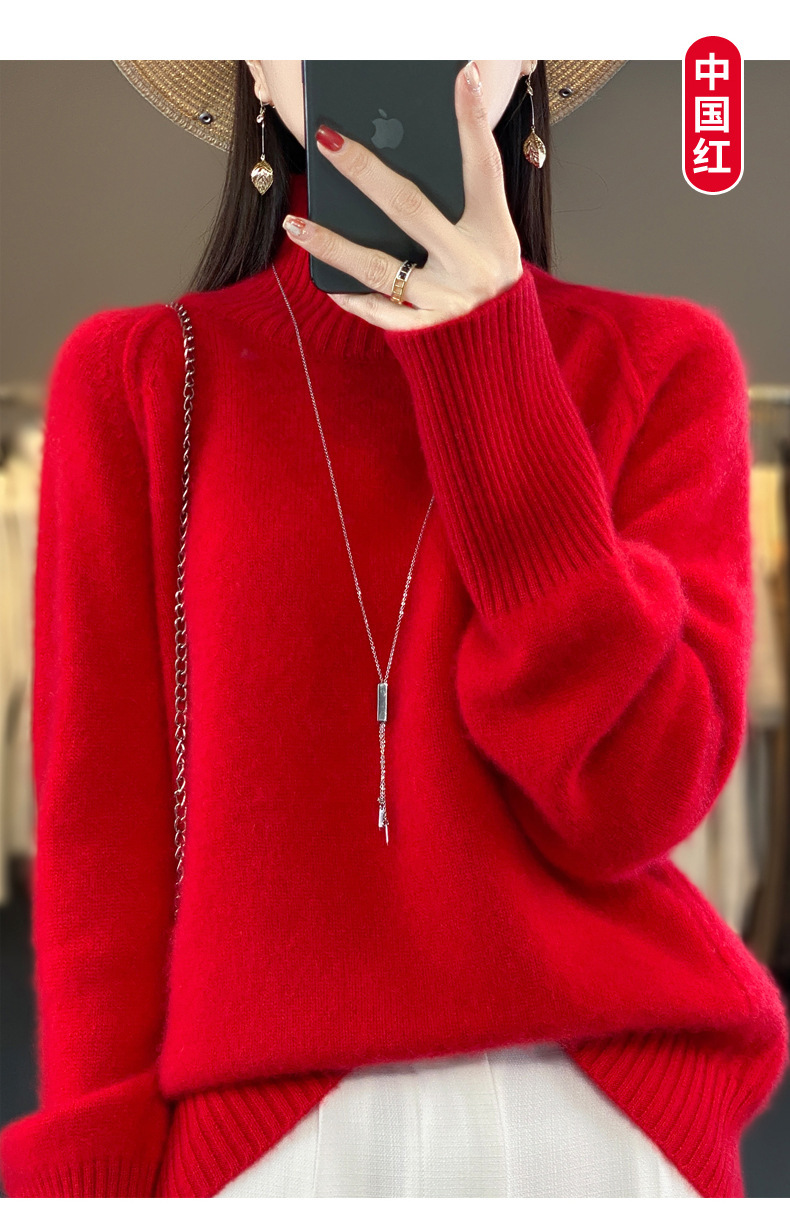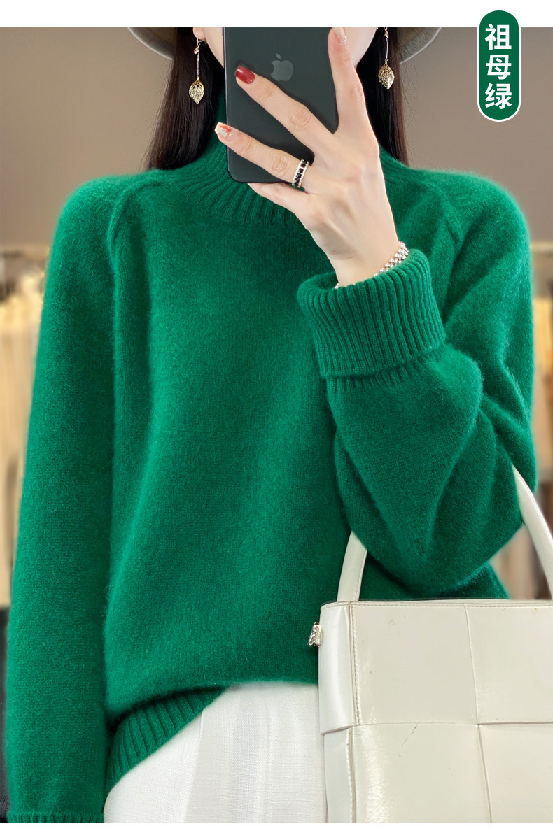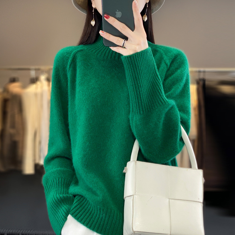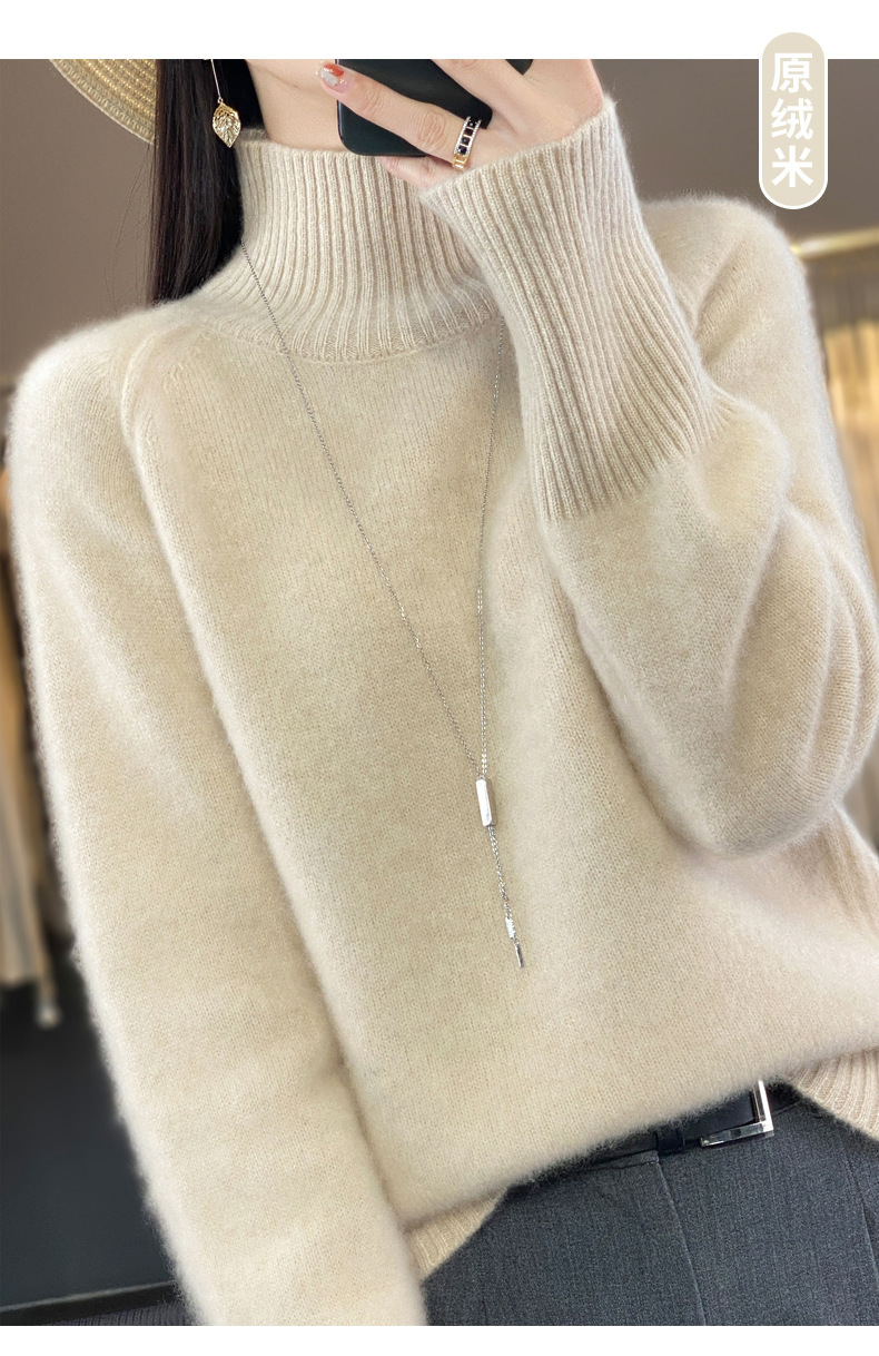 Оптовая продажа от производителя: новый стиль 2025 года, утолщенный свитер из 100% шерсти с семью иглами, высокий воротник, рукава реглан, в стиле Ван Фэй, для женщин, в наличии.