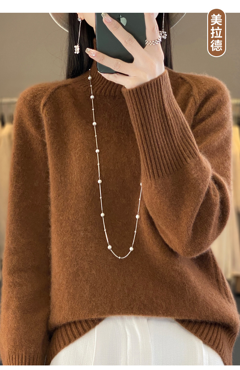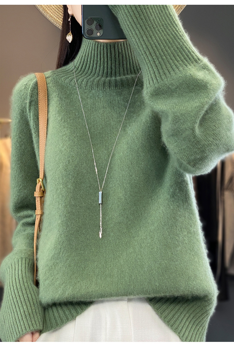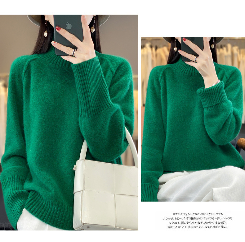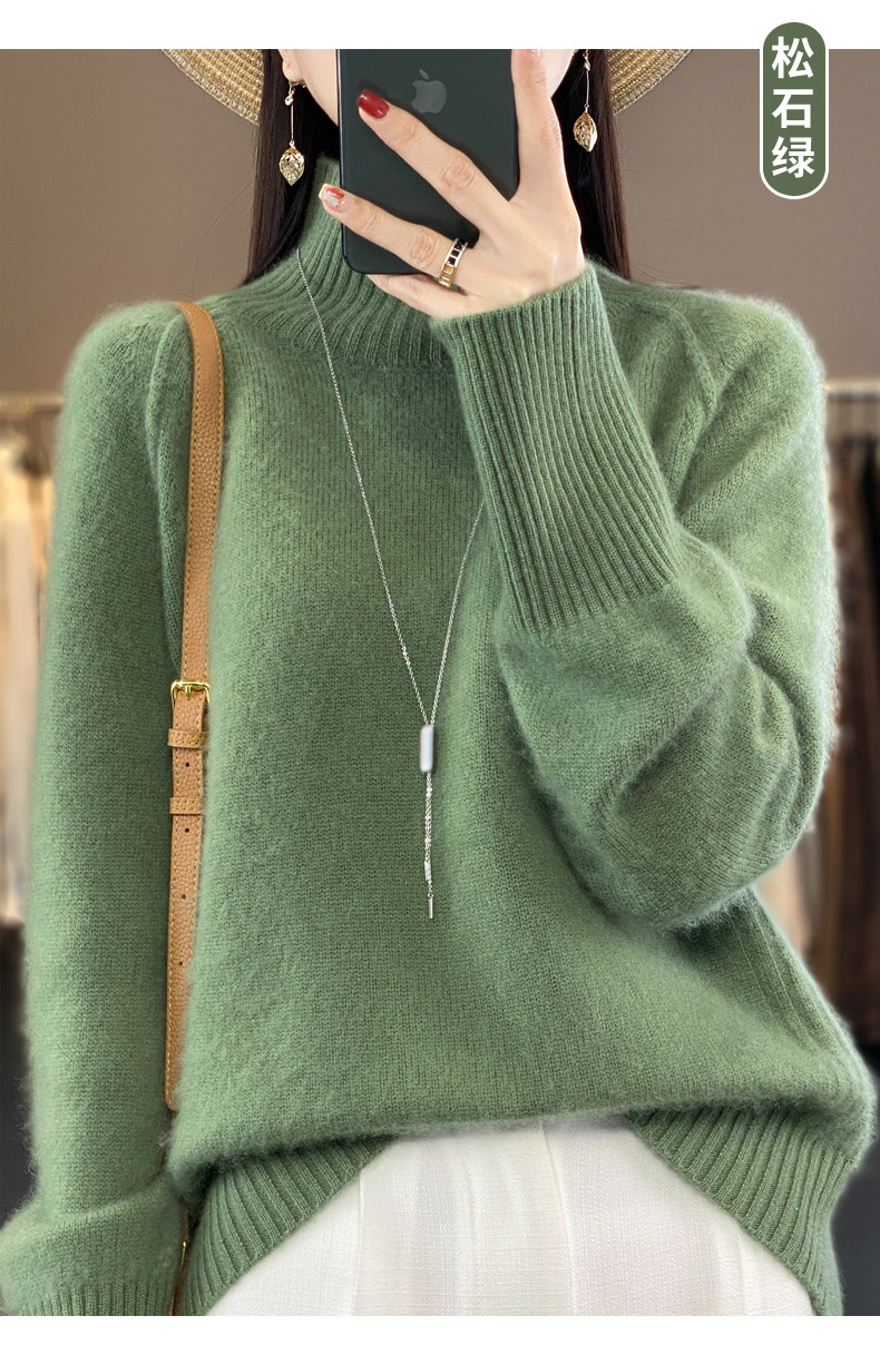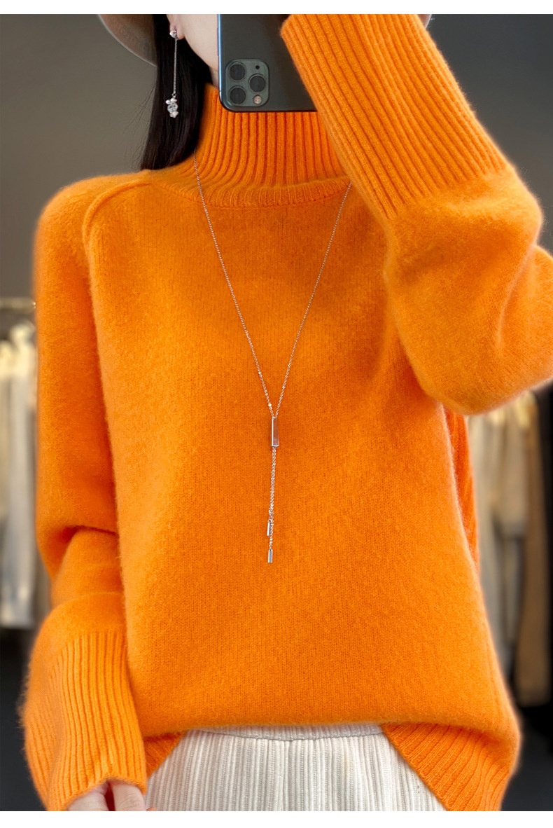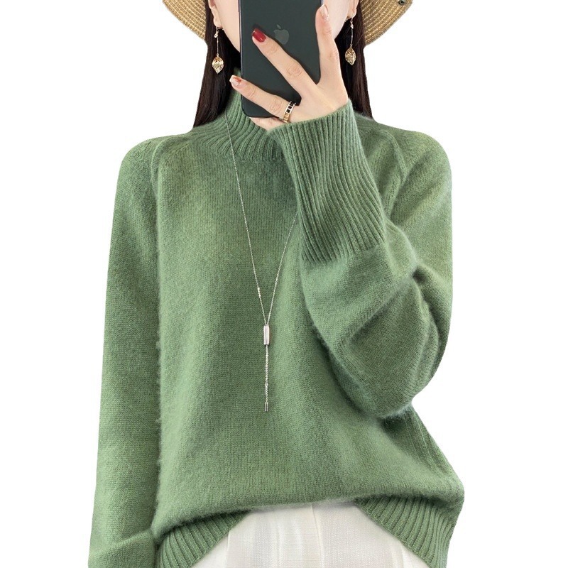 Оптовая продажа от производителя: новый стиль 2025 года, утолщенный свитер из 100% шерсти с семью иглами, высокий воротник, рукава реглан, в стиле Ван Фэй, для женщин, в наличии.
