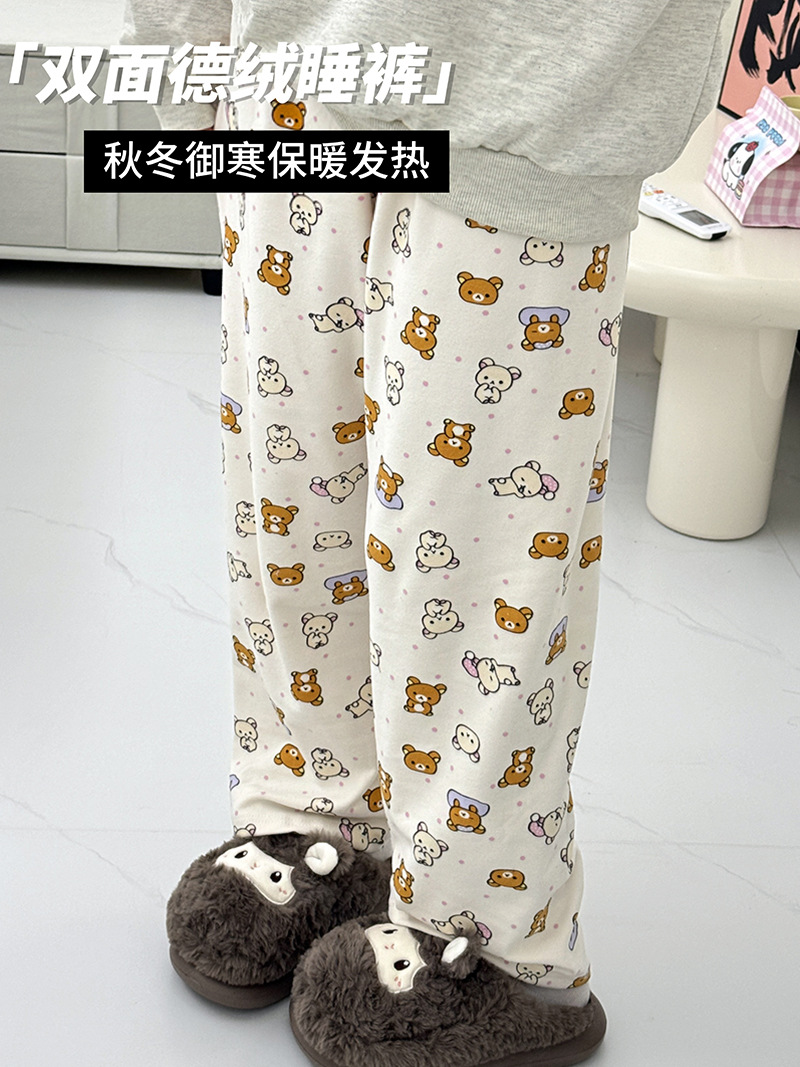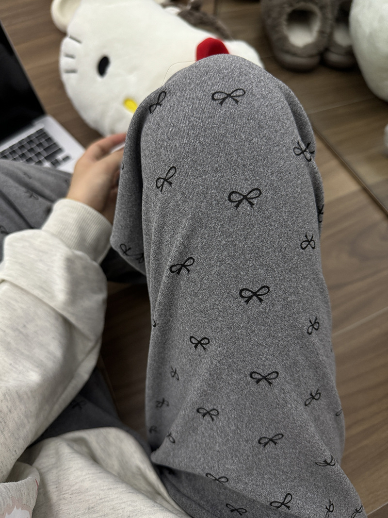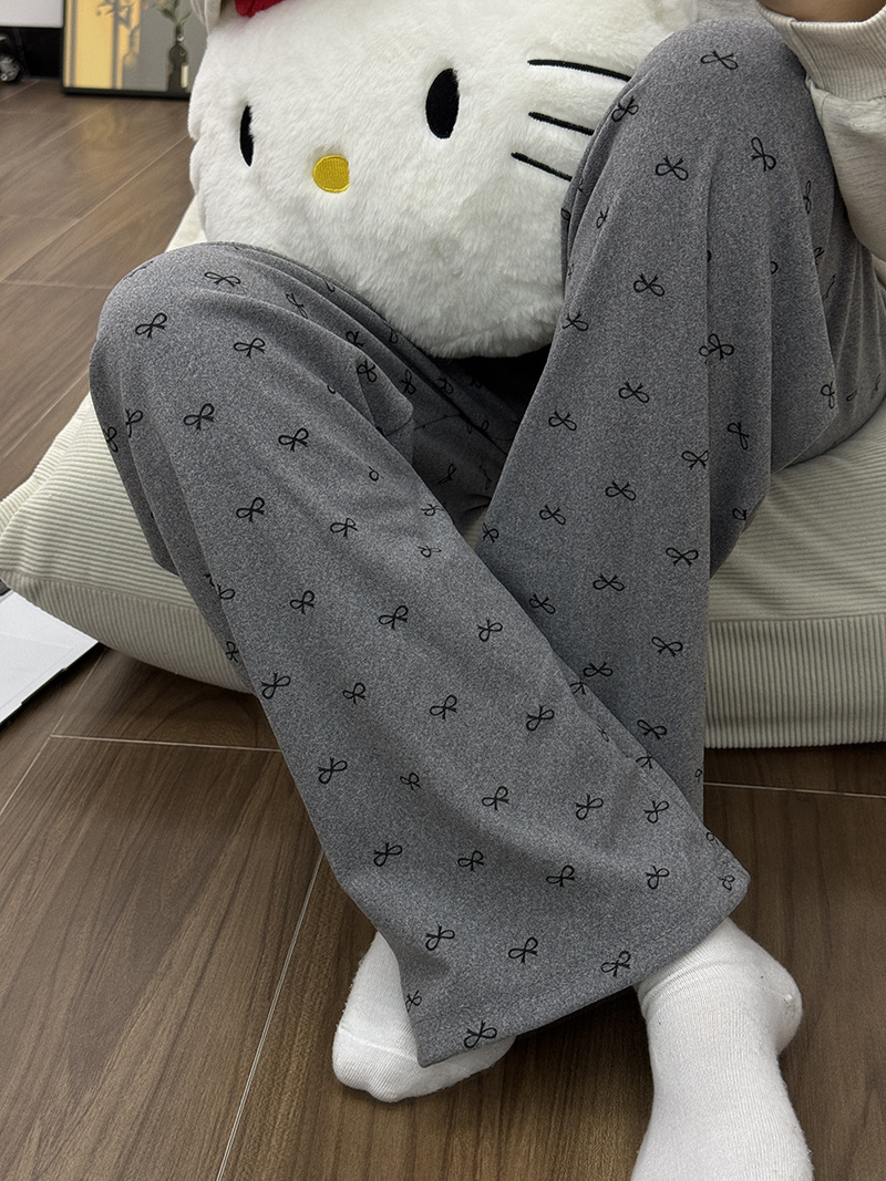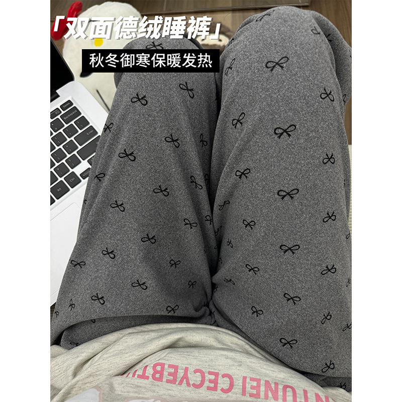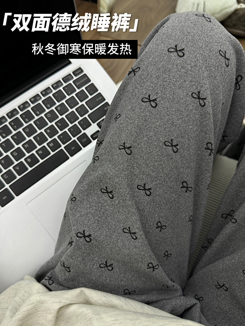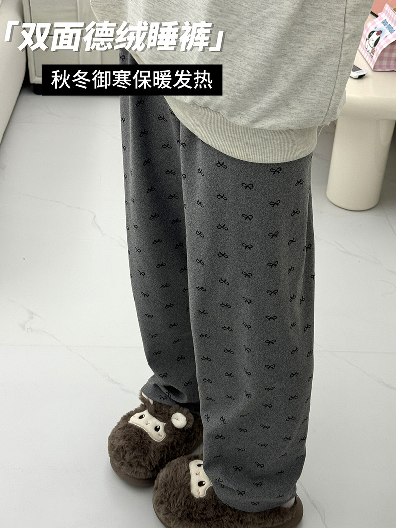 Осенние и зимние изогнутые брюки мягкие клеевые бархатные теплые пижамы женские брюки банты свободные повседневные домашние брюки можно носить на улице