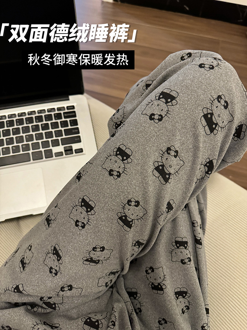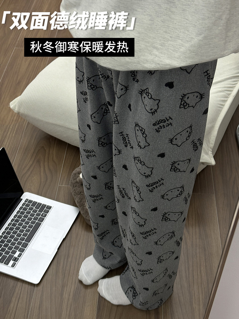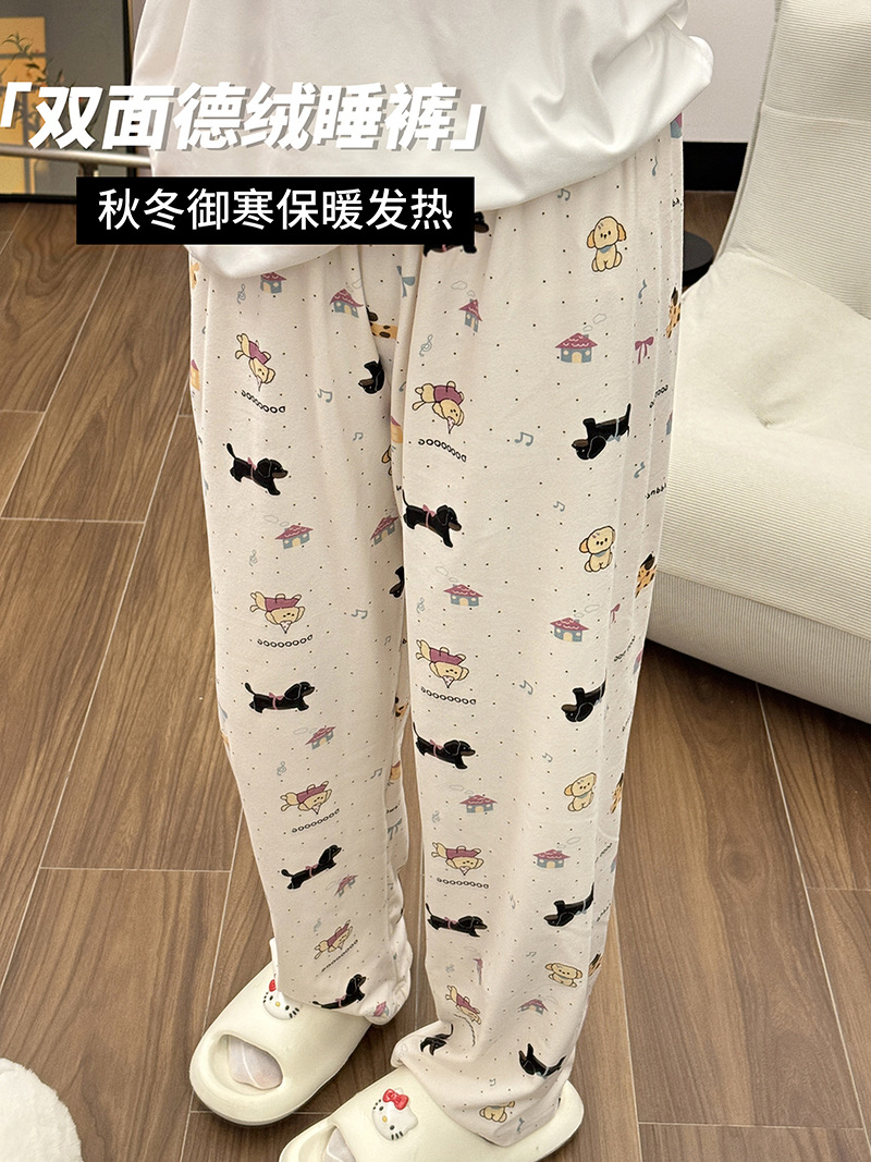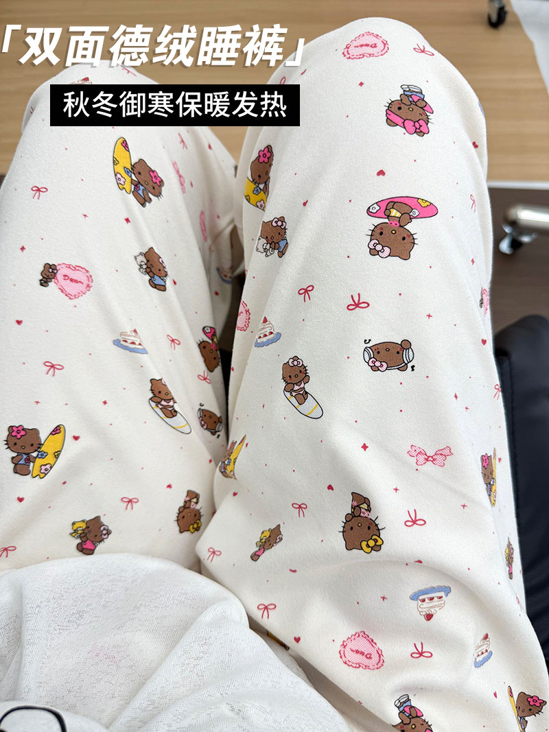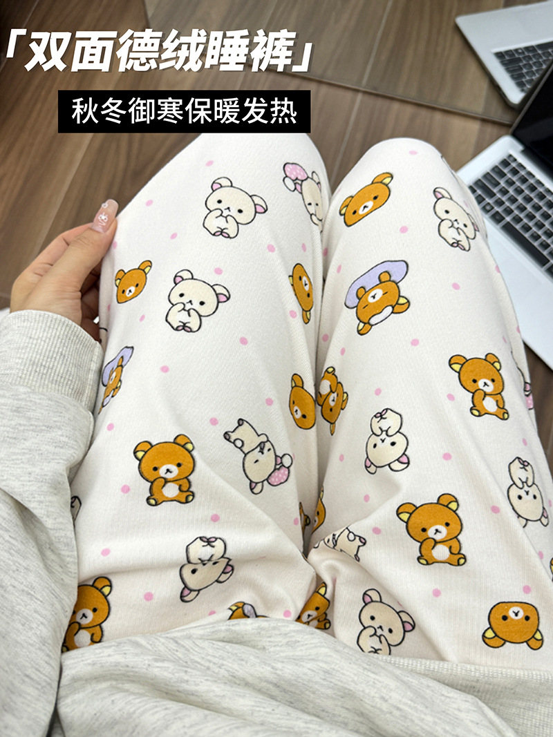 Осенние и зимние изогнутые брюки мягкие клеевые бархатные теплые пижамы женские брюки банты свободные повседневные домашние брюки можно носить на улице