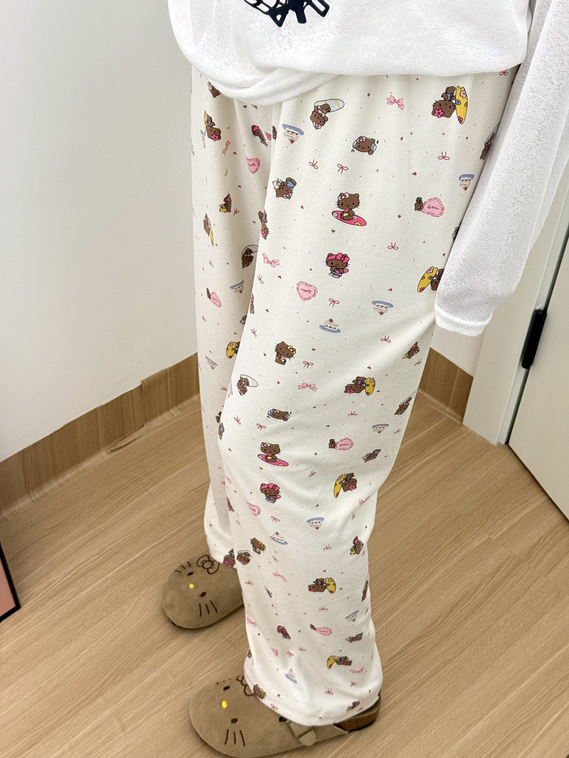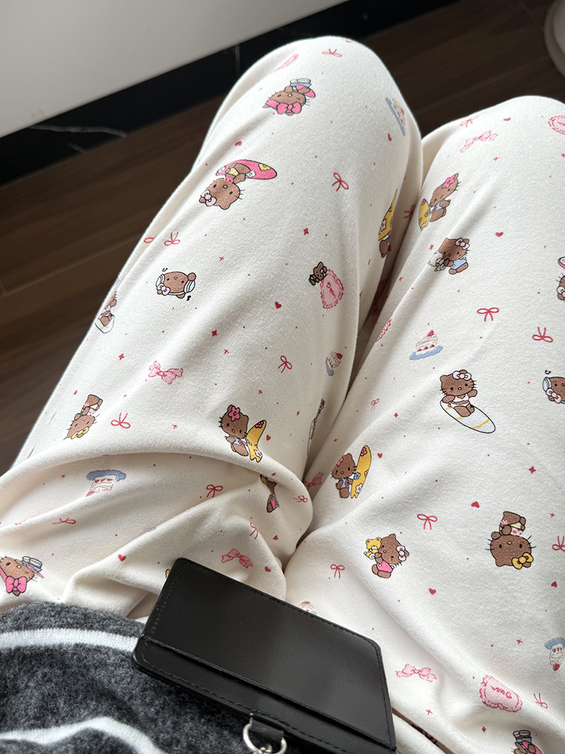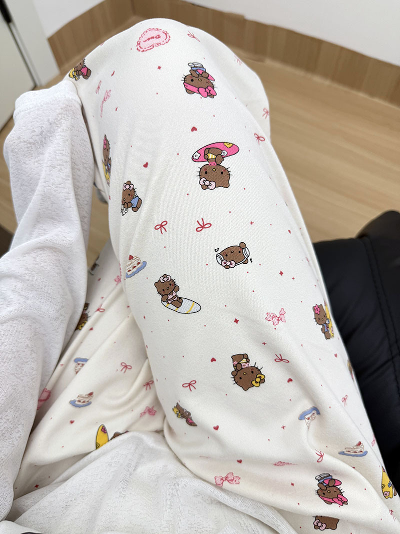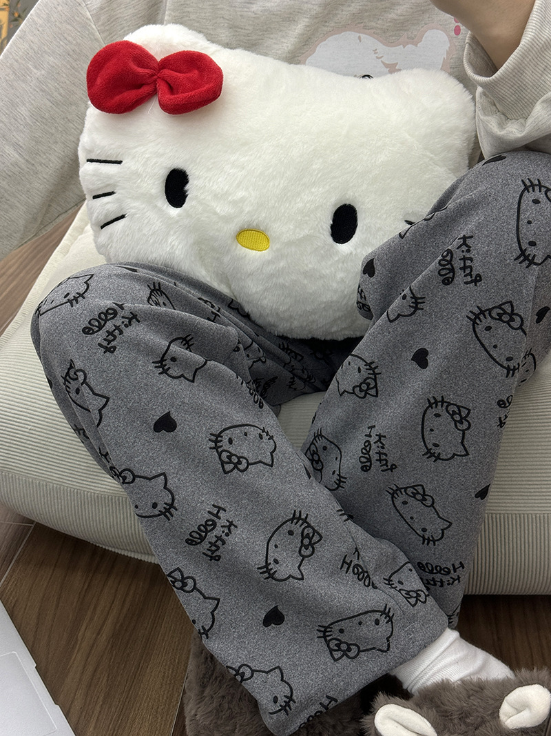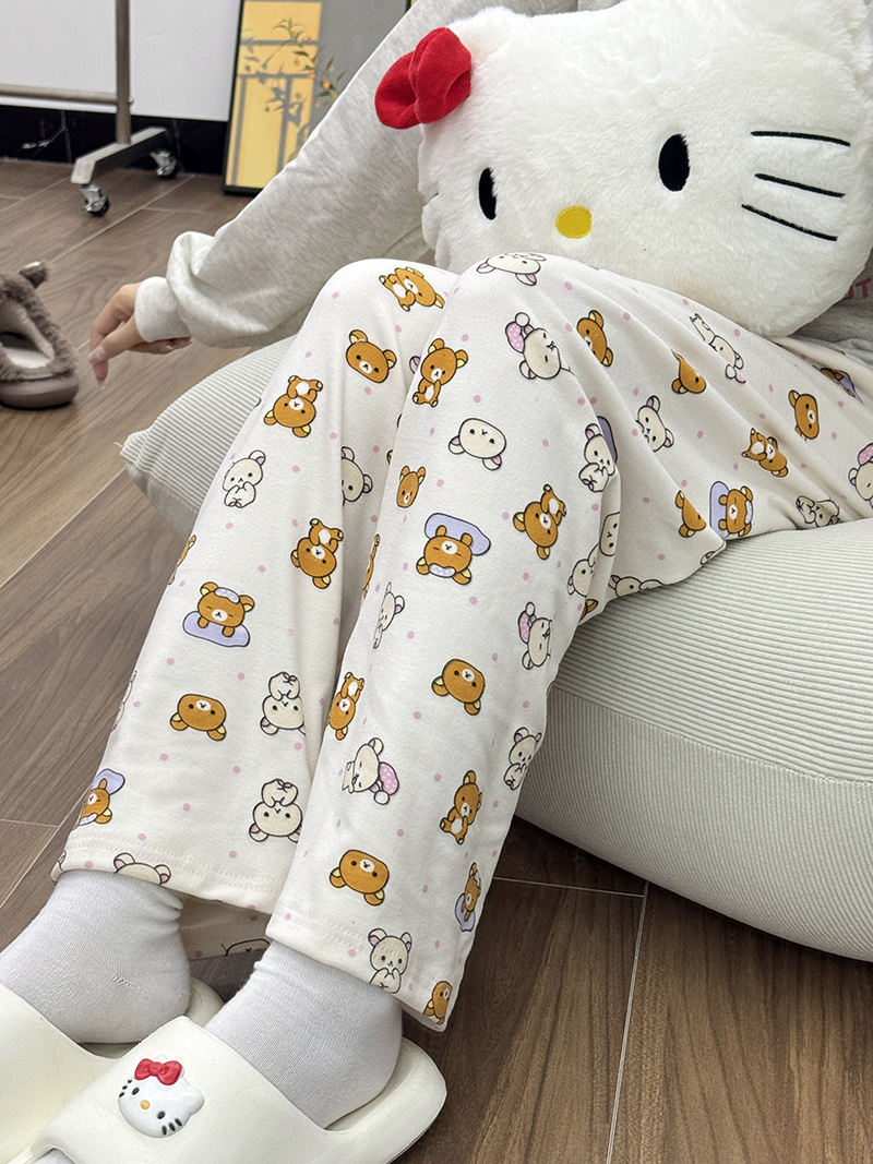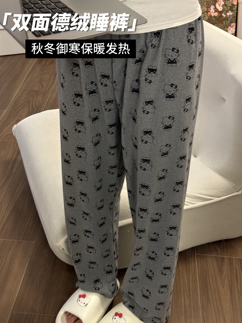Осенние и зимние изогнутые брюки мягкие клеевые бархатные теплые пижамы женские брюки банты свободные повседневные домашние брюки можно носить на улице
