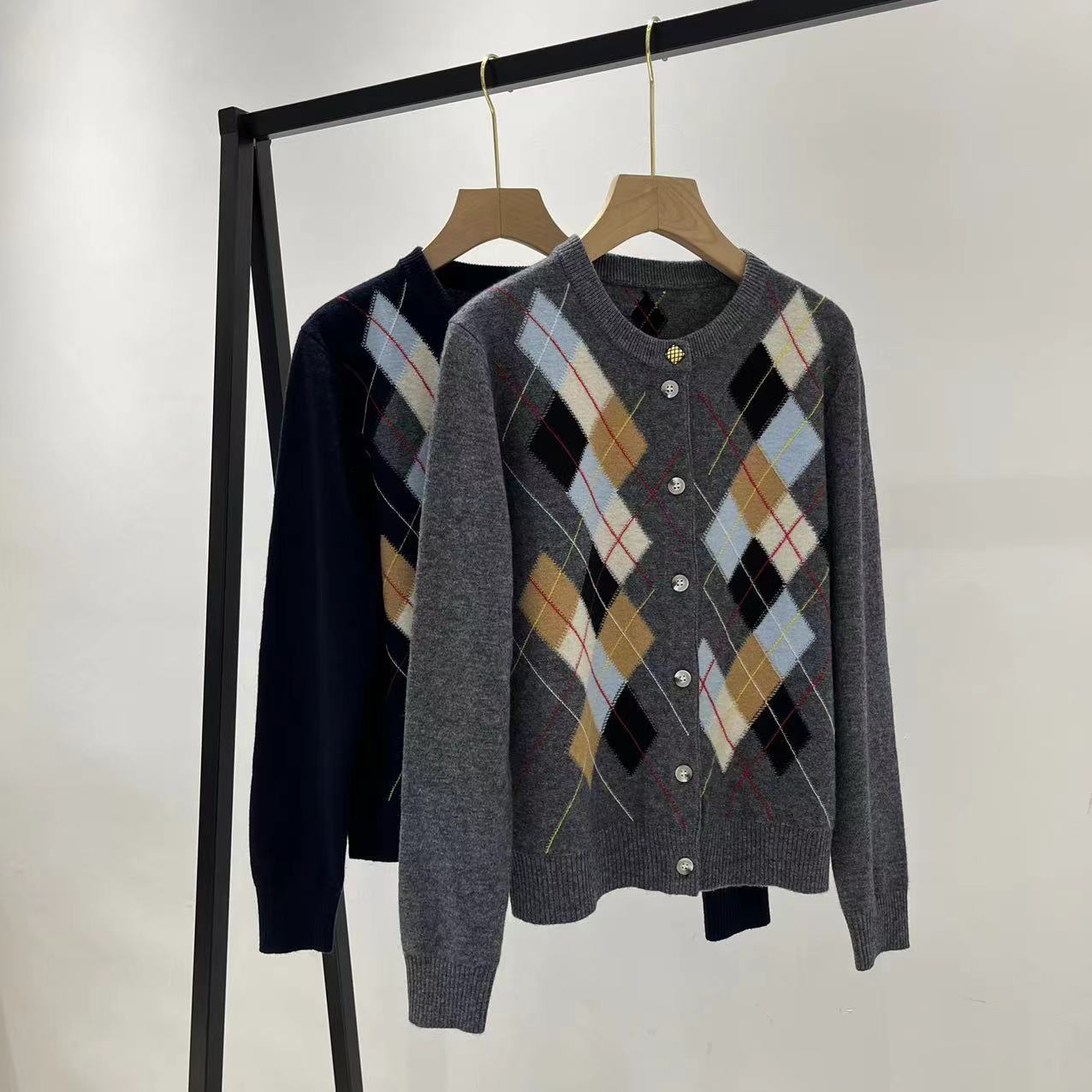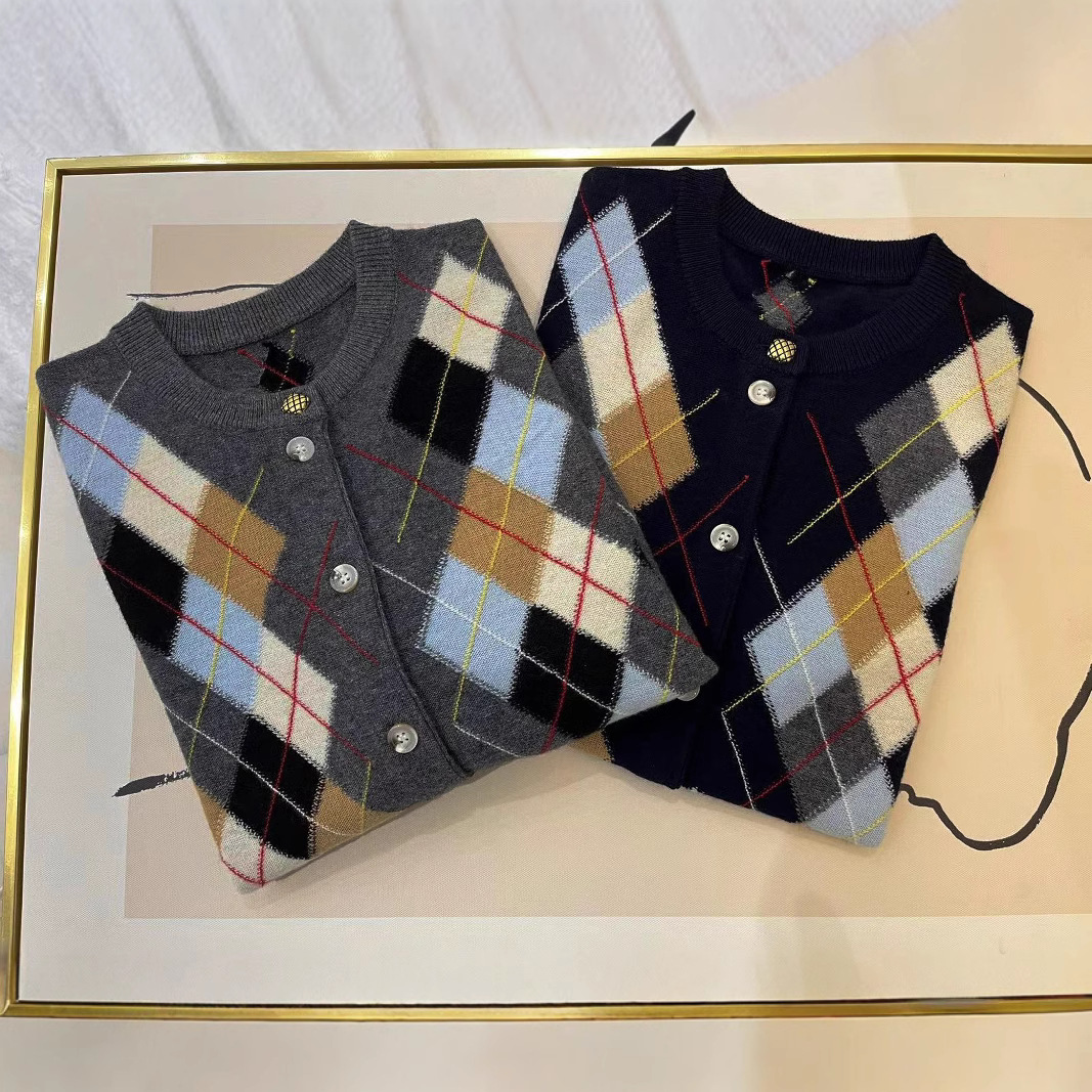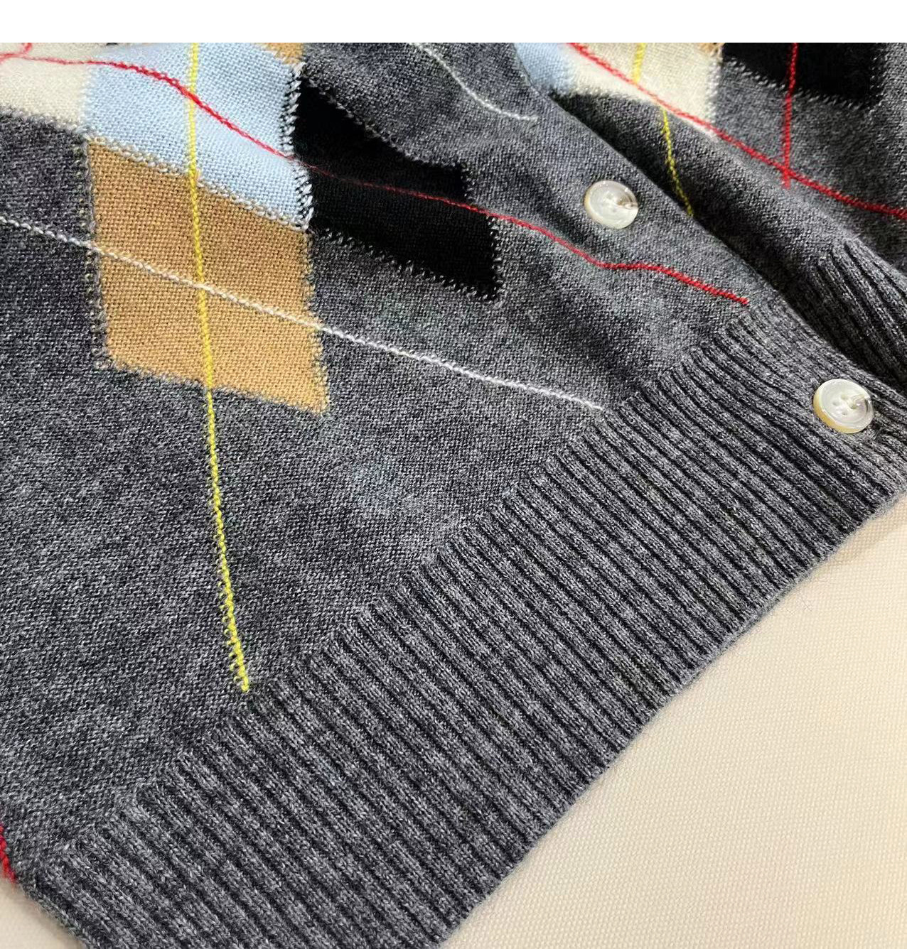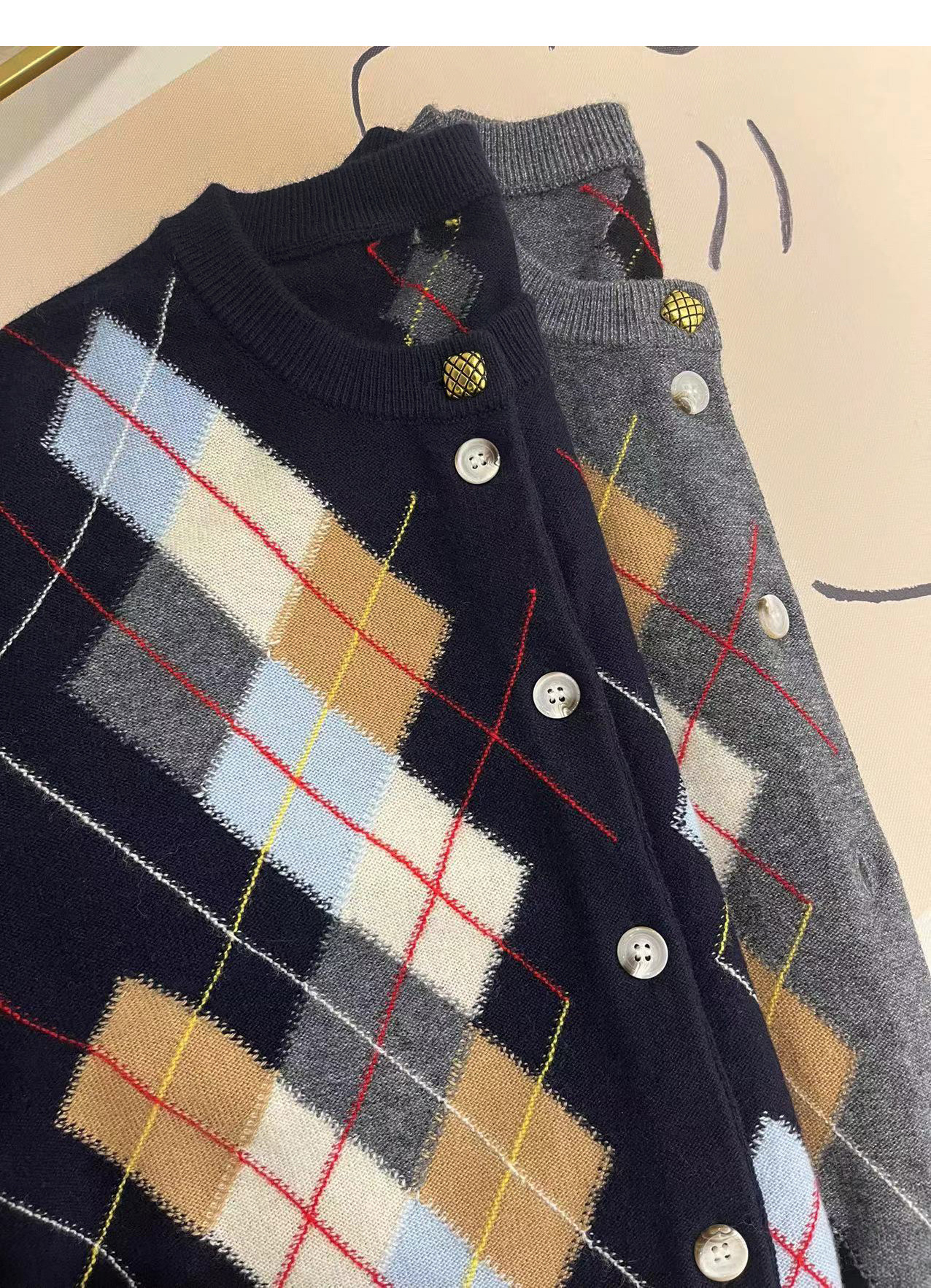 Шотландский шерстяной вязаный кардиган с ромбовидным узором ~ 25 осенне-зимних классических британских свитеров в консервативном стиле с круглым вырезом