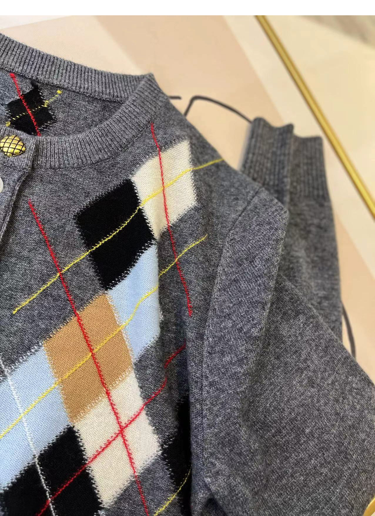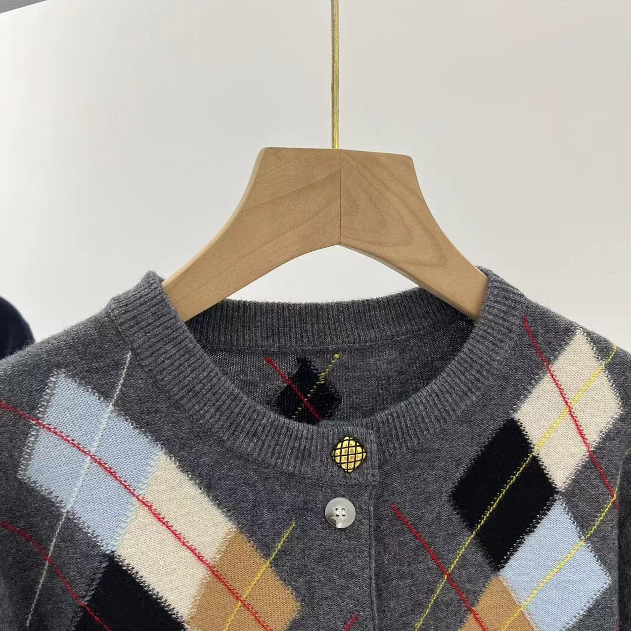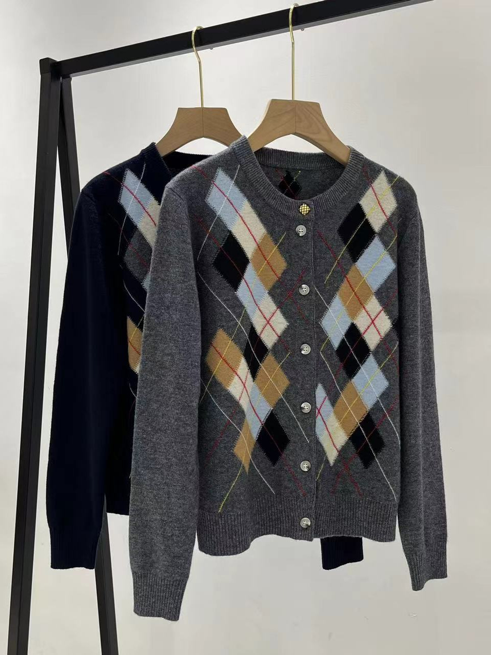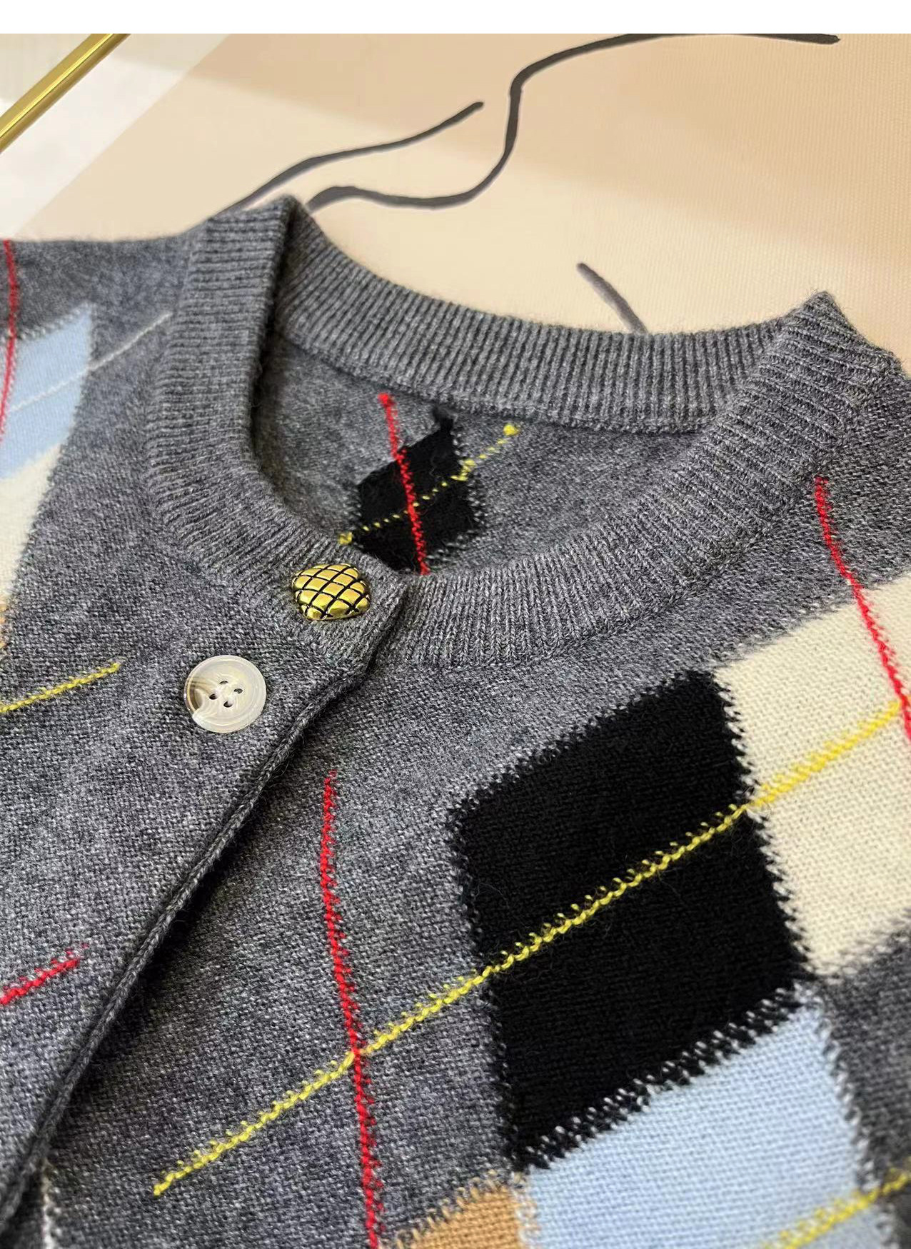 Шотландский шерстяной вязаный кардиган с ромбовидным узором ~ 25 осенне-зимних классических британских свитеров в консервативном стиле с круглым вырезом