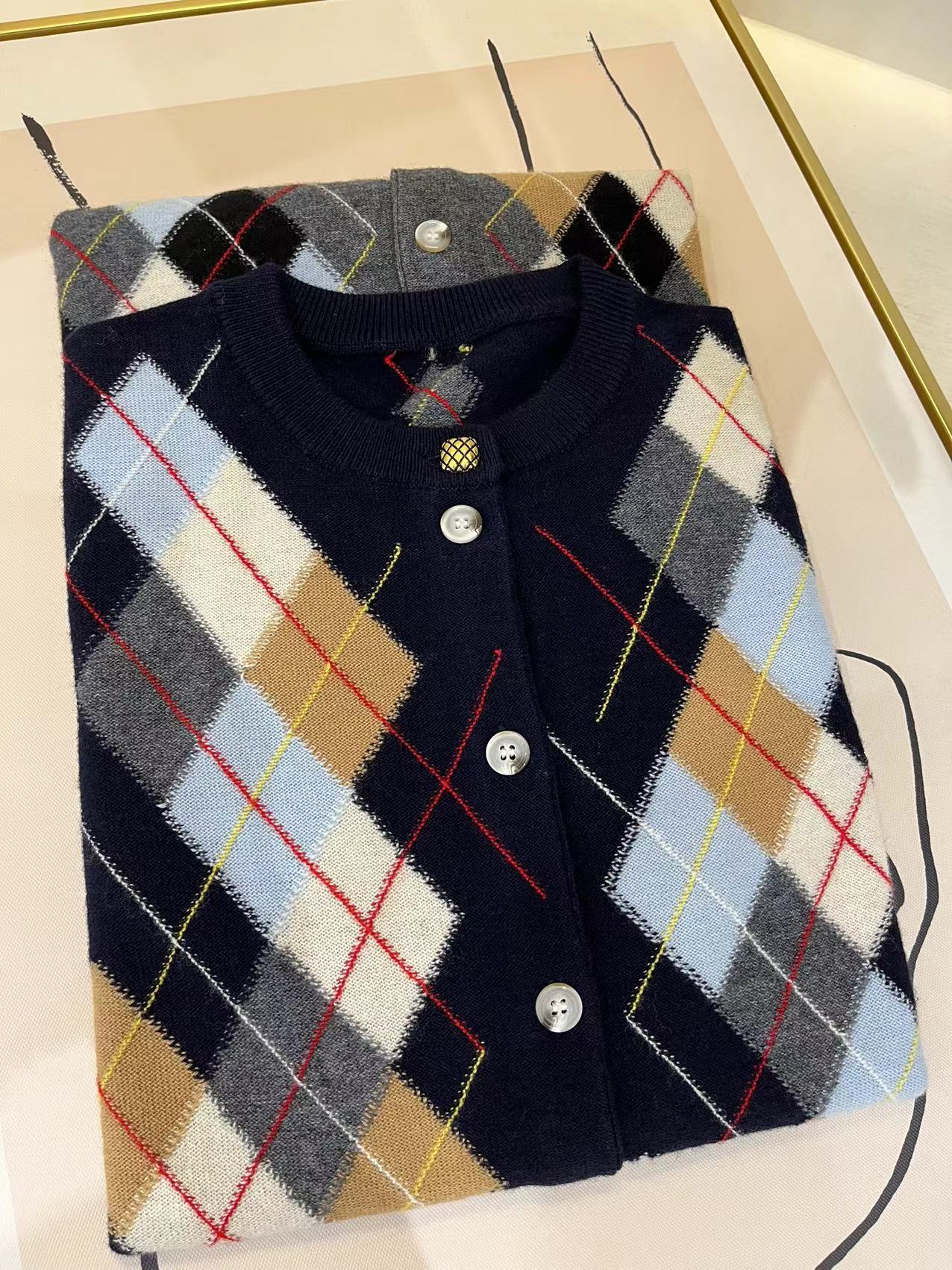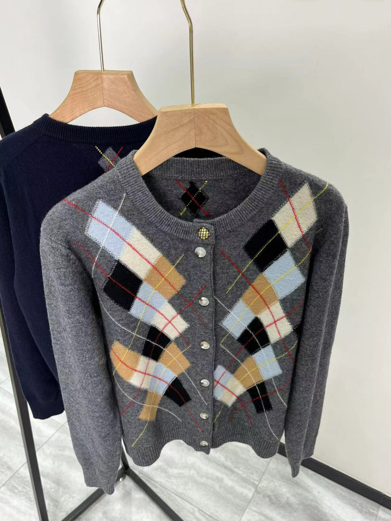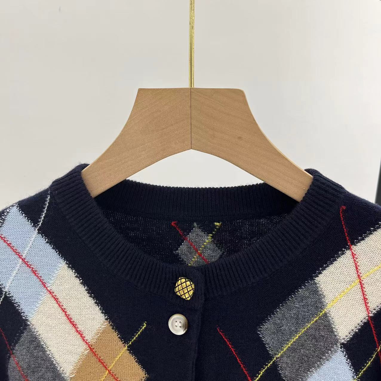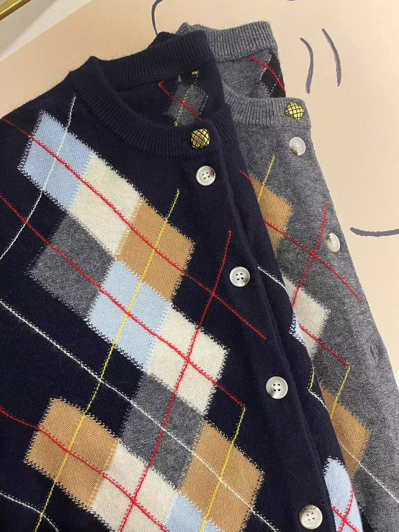 Шотландский шерстяной вязаный кардиган с ромбовидным узором ~ 25 осенне-зимних классических британских свитеров в консервативном стиле с круглым вырезом