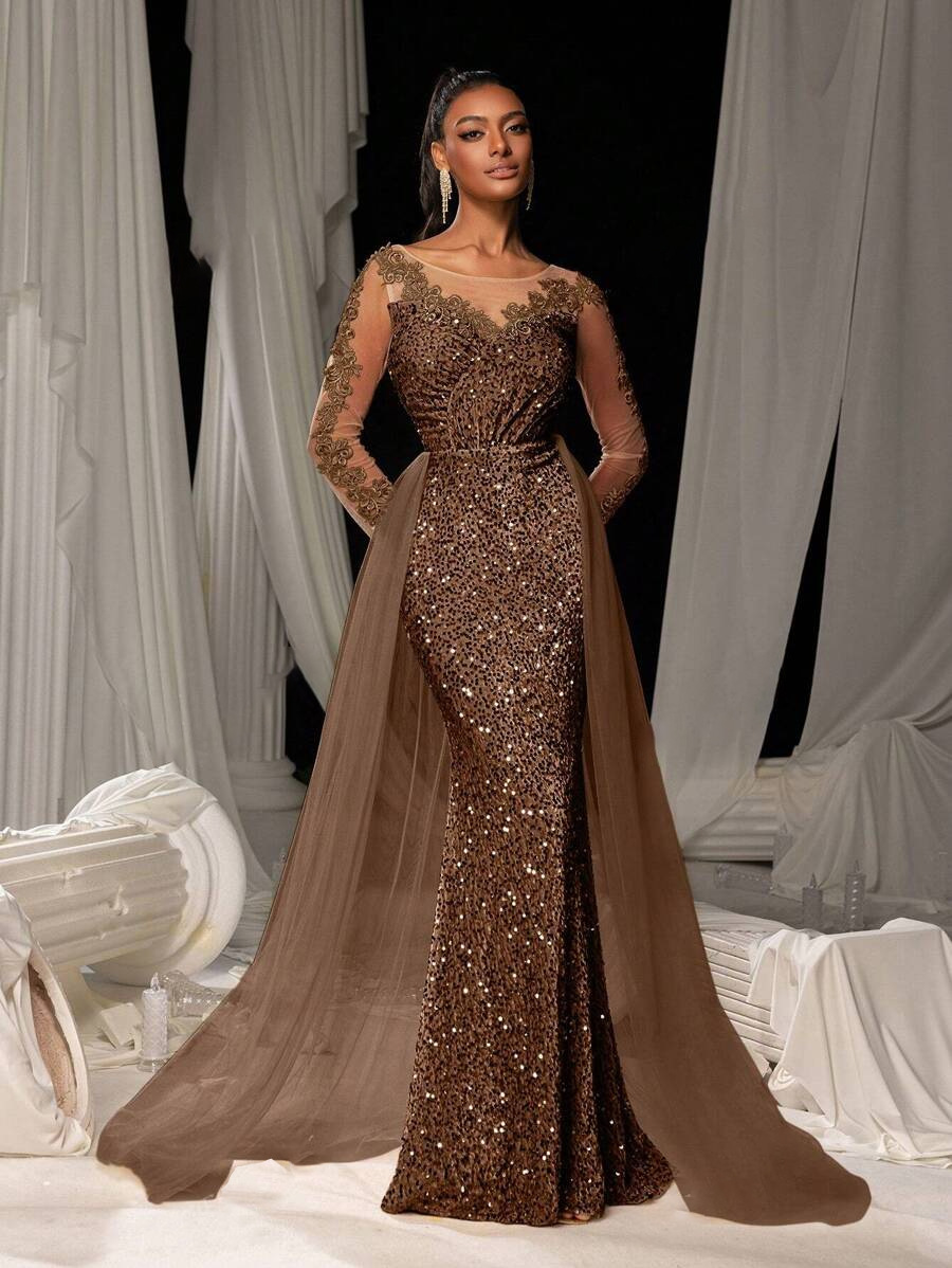 2025 трансграничное европейское и американское женское платье для выпускного вечера, длинная юбка, элегантное модное элегантное длинное кружевное вечернее платье