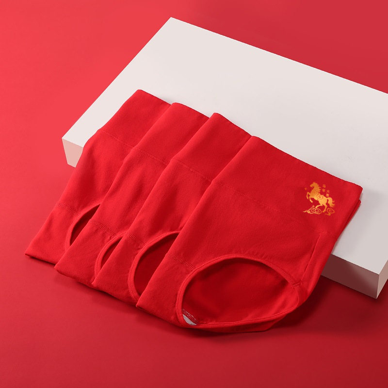 Женские красные хлопковые трусы с высокой талией для года Лошади, праздничные красные бесшовные трусы для коррекции живота оптом