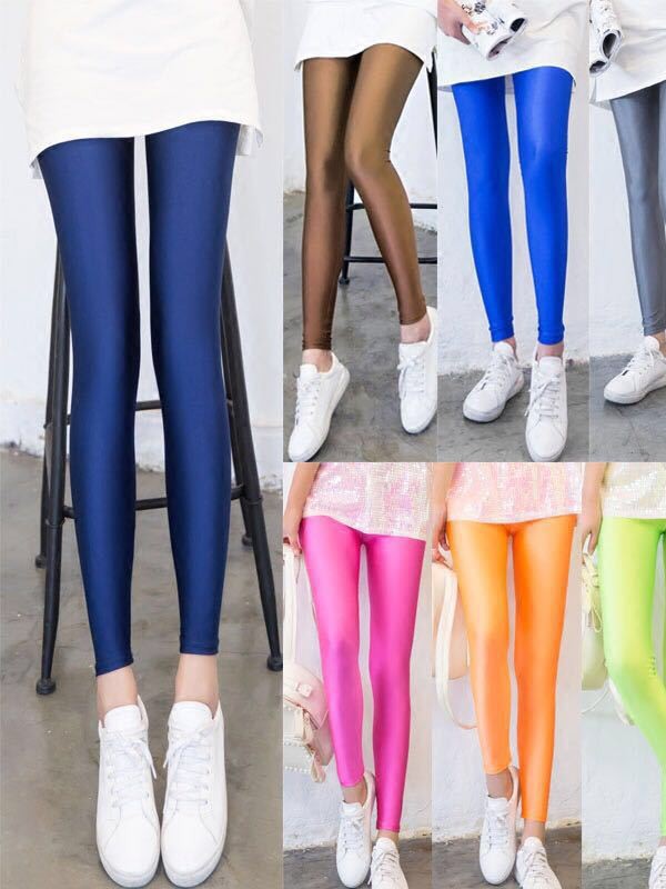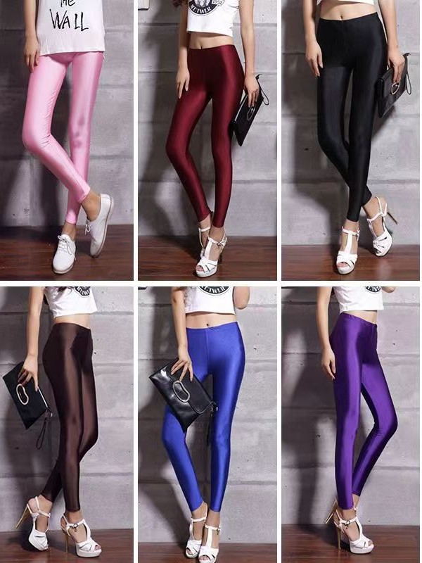 Весна и лето глянцевые брюки леггинсы тонкая женская высокая талия носить тонкие ноги девять центов плюс размер женские брюки флуоресцентные брюки
