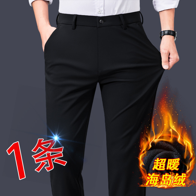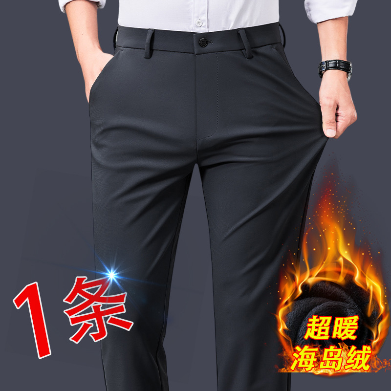 Трансграничные специально для плюшевого утолщения осенние и зимние мужские брюки среднего возраста длинные брюки эластичные папы брюки среднего и пожилого возраста повседневные брюки
