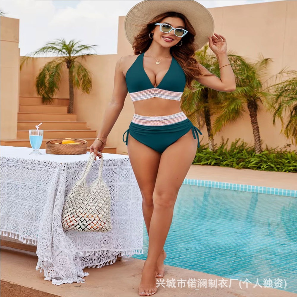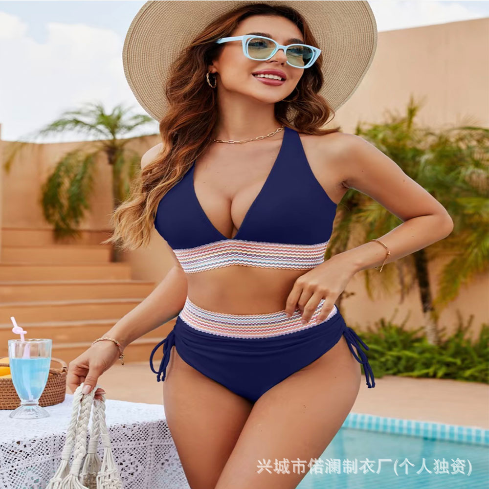 Новая внешняя торговля бикини собирается на Amazon горячие продажи с высокой талией v-образным вырезом с ремешком многоцветный купальник бикини