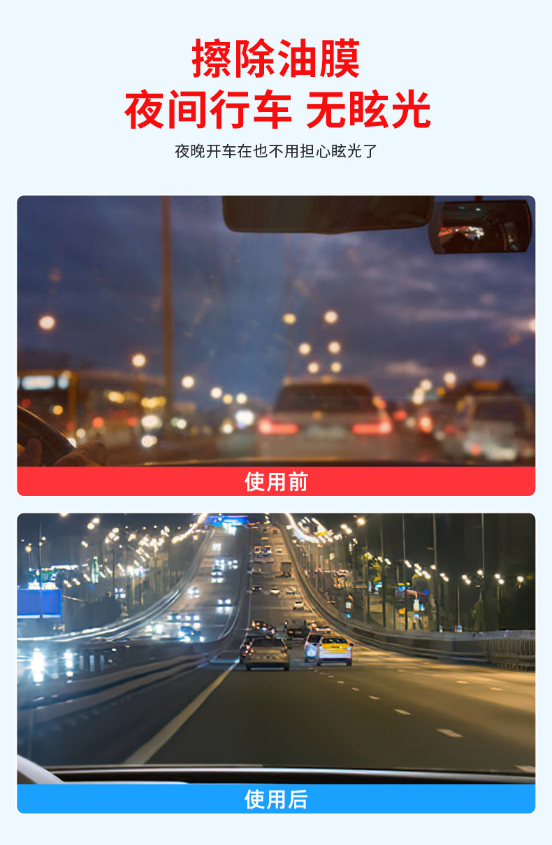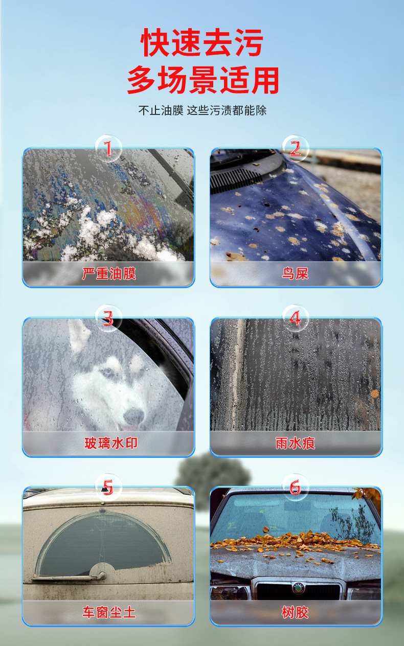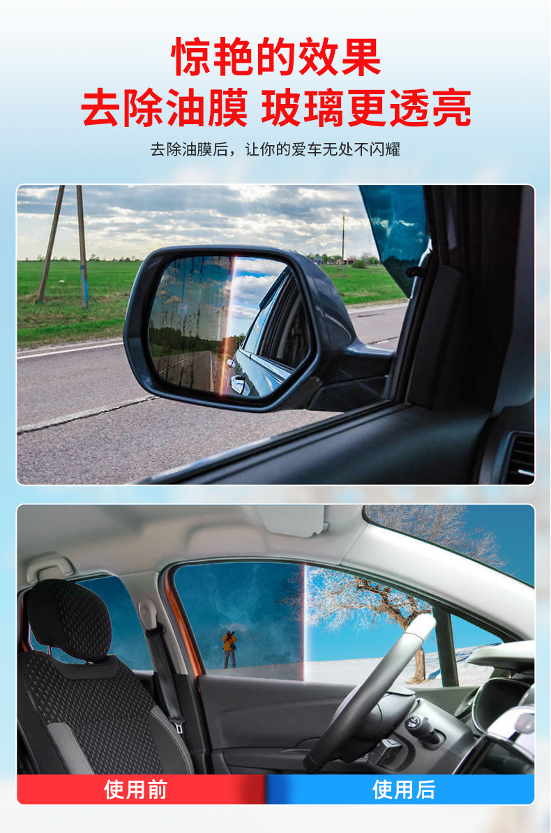 Ингредиенты для удаления масла и обеззараживания позволяют легко удалить легкость внешнего стекла автомобиля, а зеркало заднего вида также сделать стекло более гладким, ярким и четким.