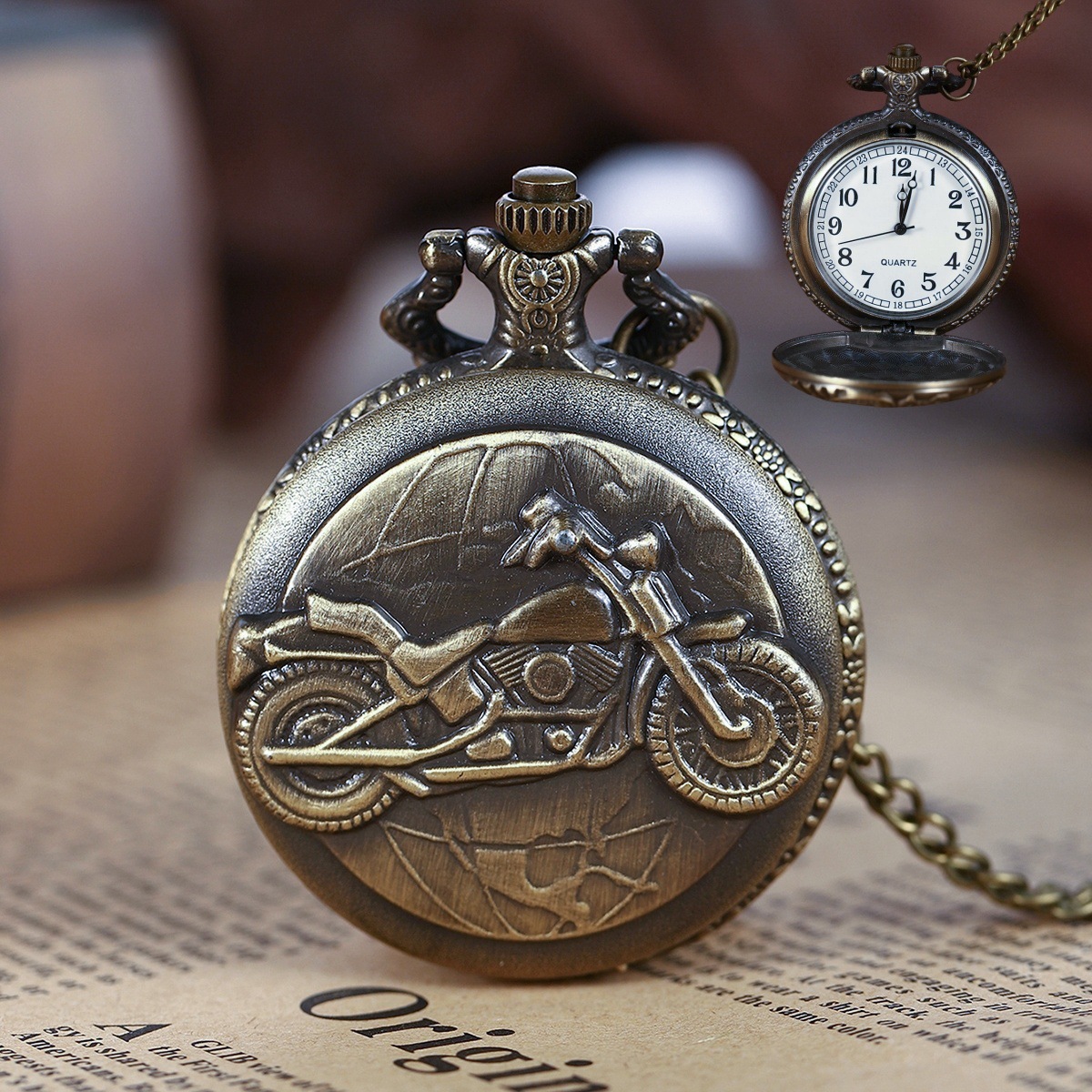 Фабрика прямых продаж спот внешней торговли ретро бронзовый рельеф локомотив большой откидной кварцевый ожерельник