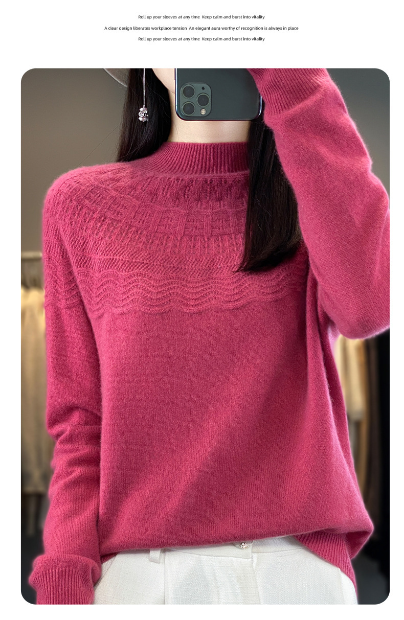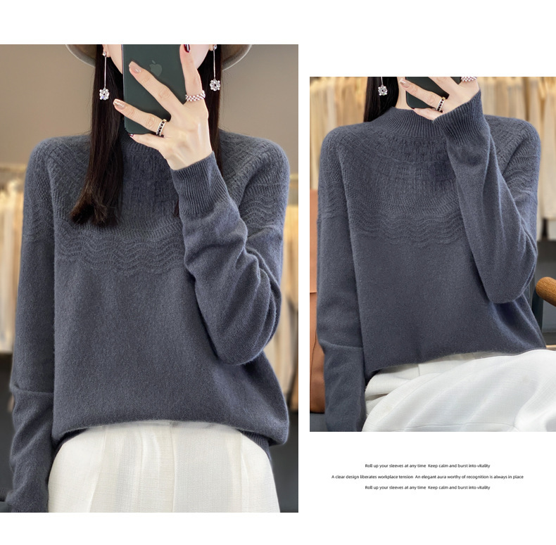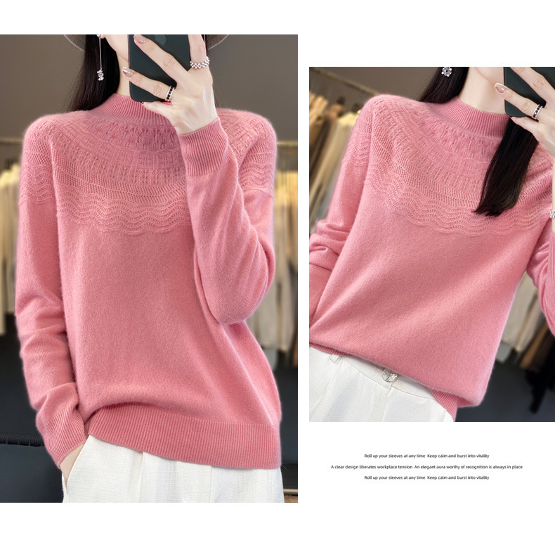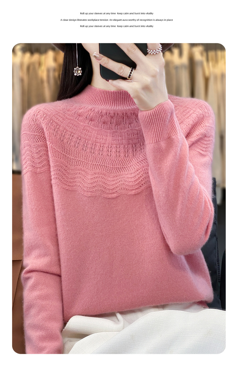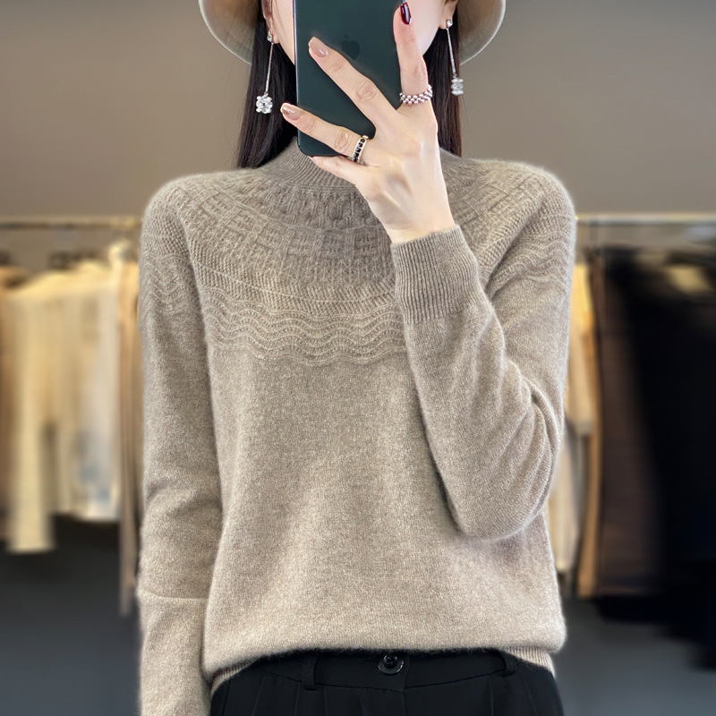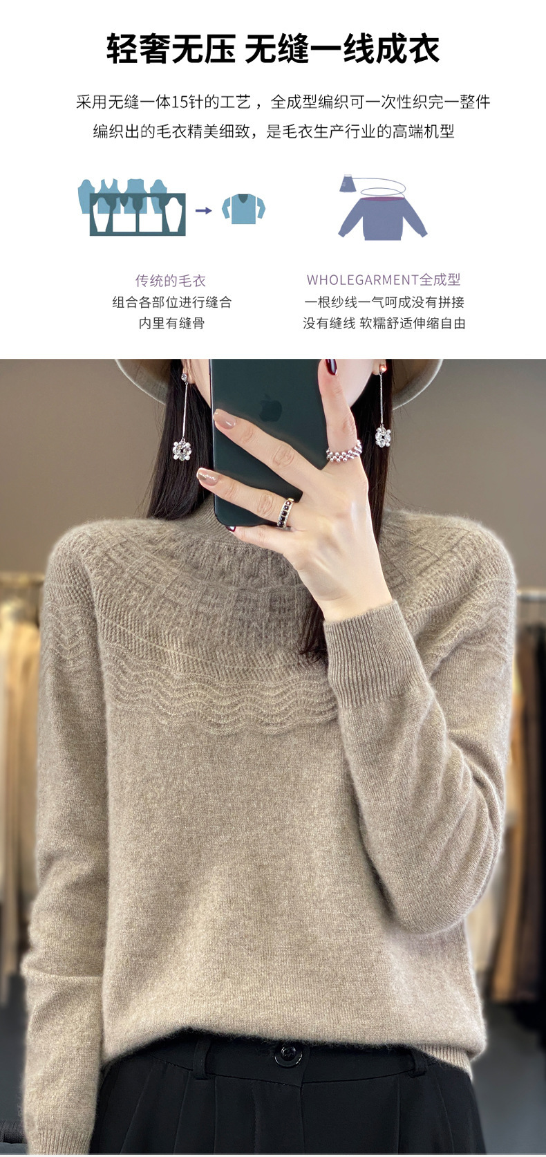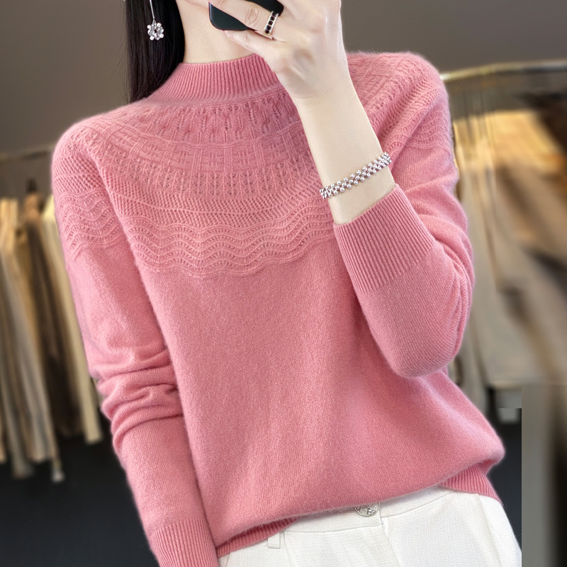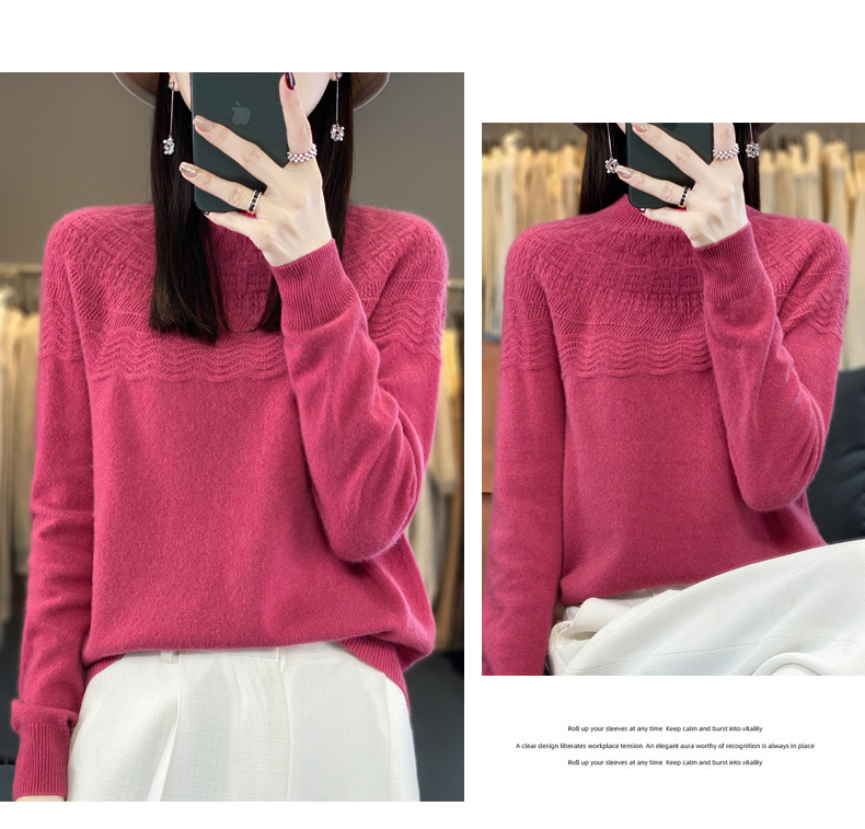 Фабрика оптовая бесшовная передовая одежда 100 австралийский шерстяной свитер с розой наполовину высоким воротником с длинным рукавом свитер