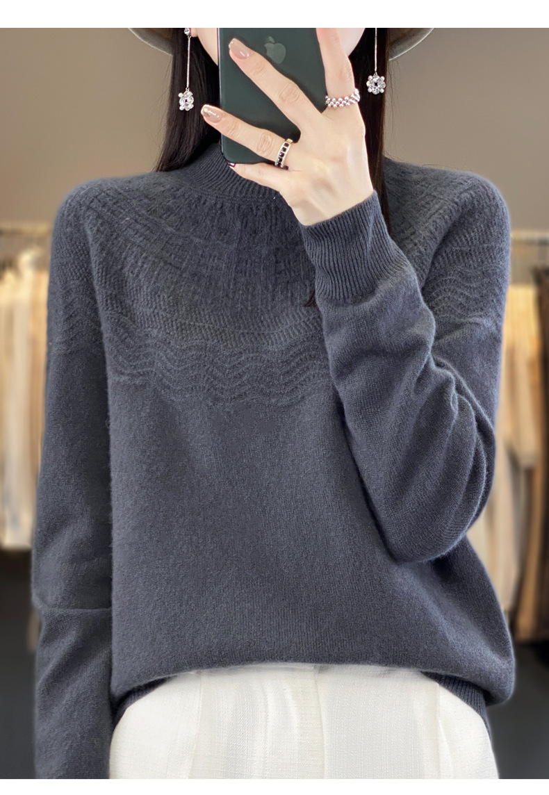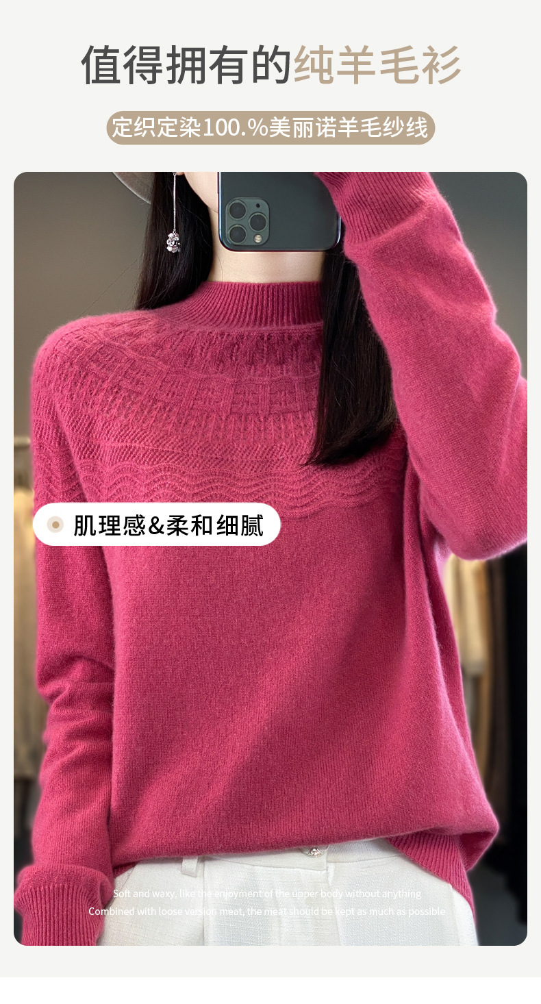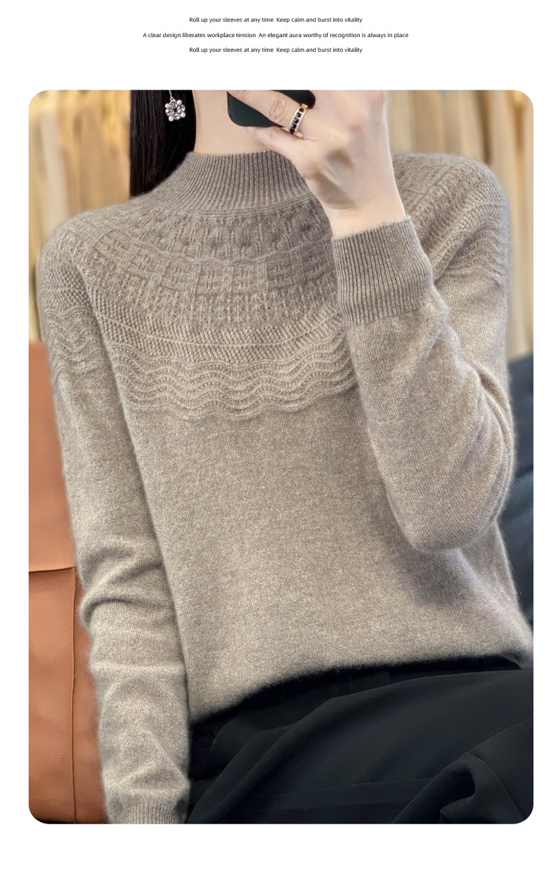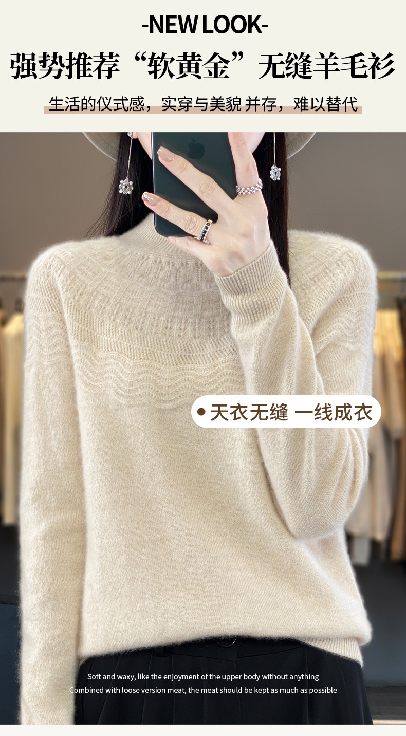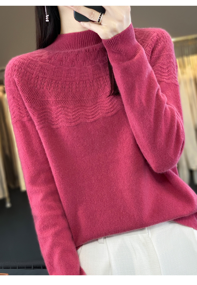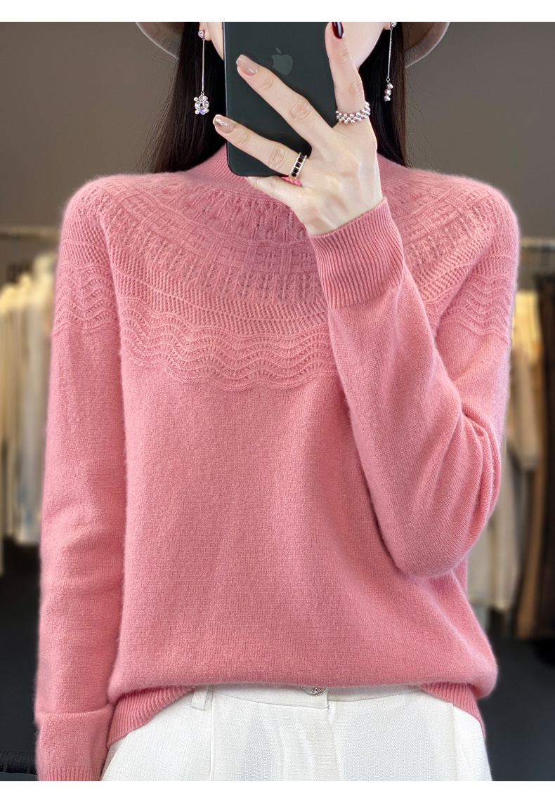 Фабрика оптовая бесшовная передовая одежда 100 австралийский шерстяной свитер с розой наполовину высоким воротником с длинным рукавом свитер