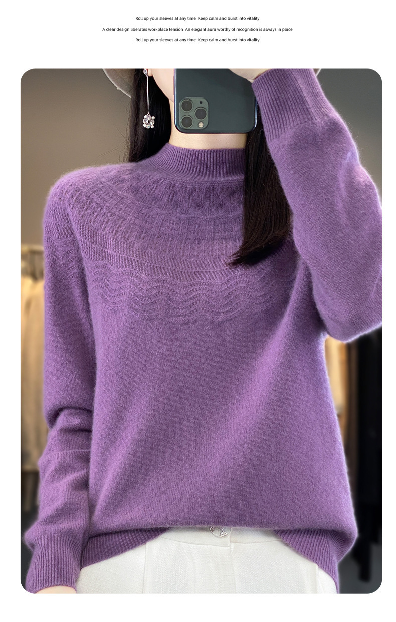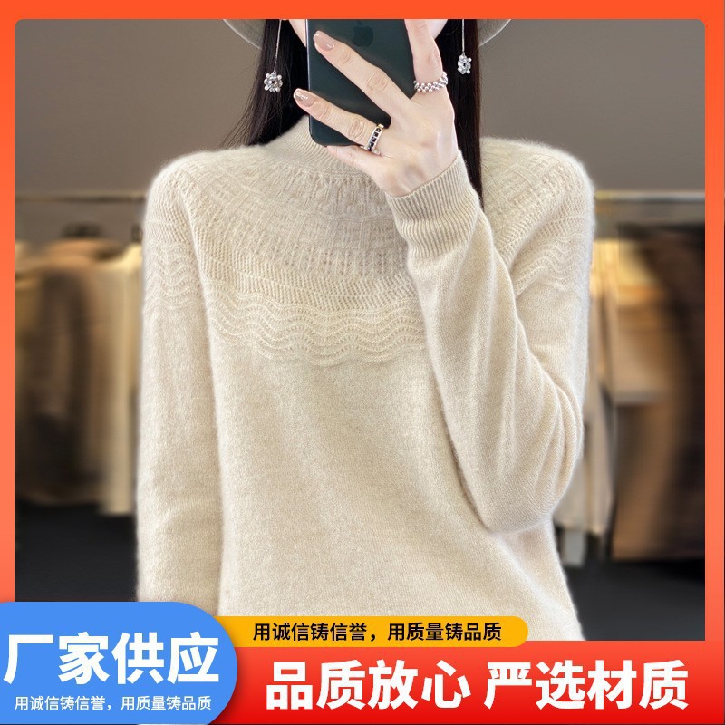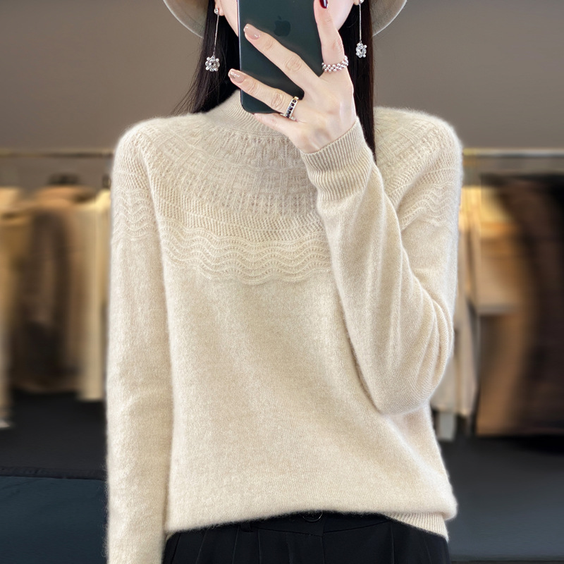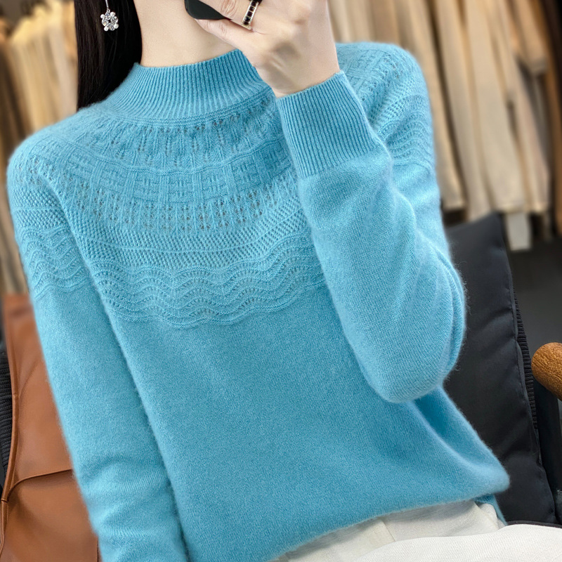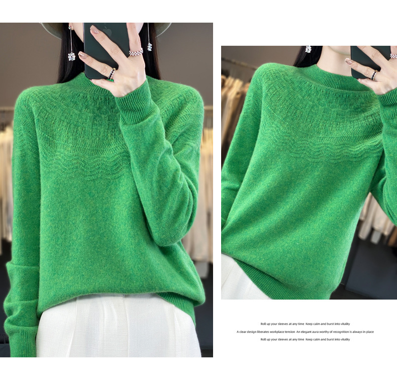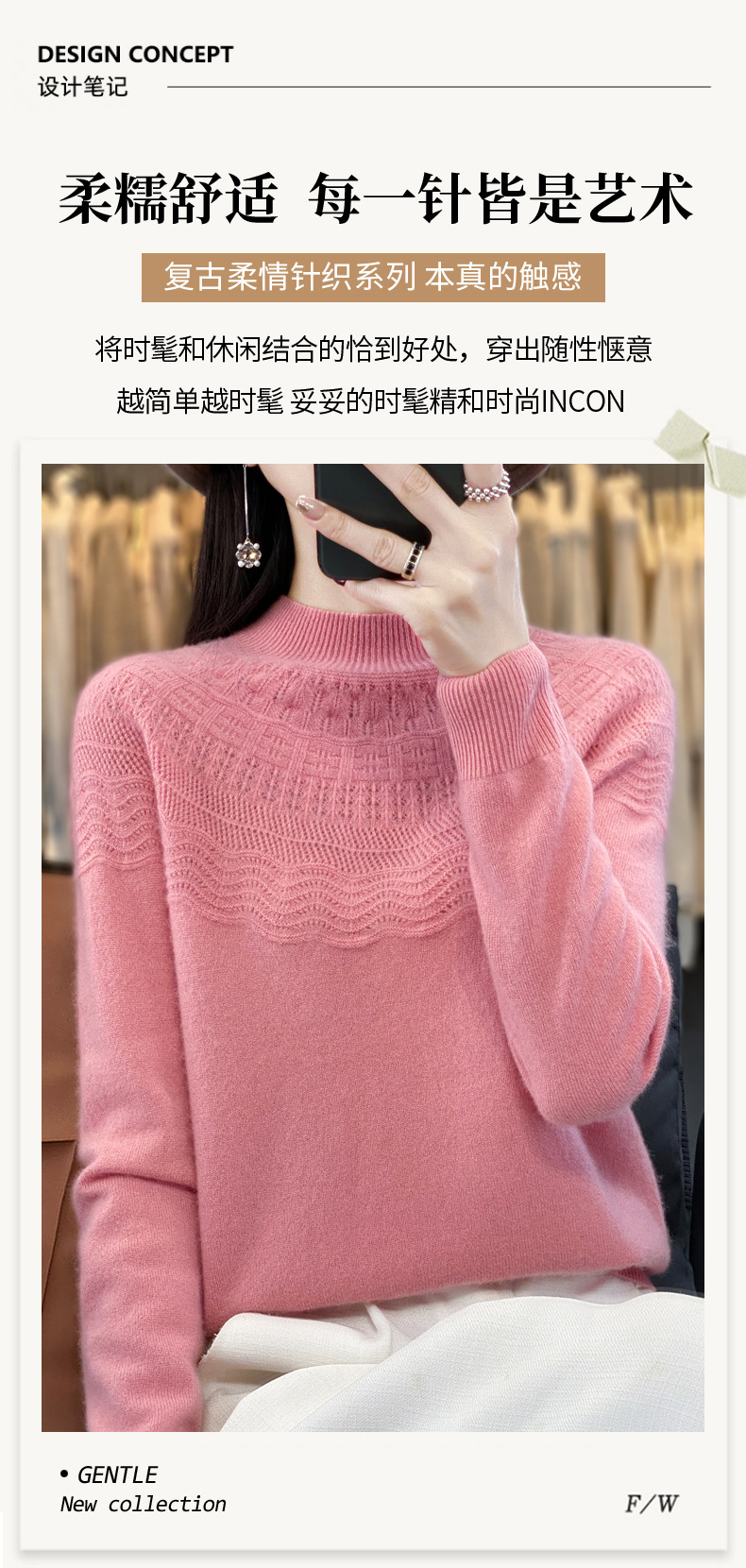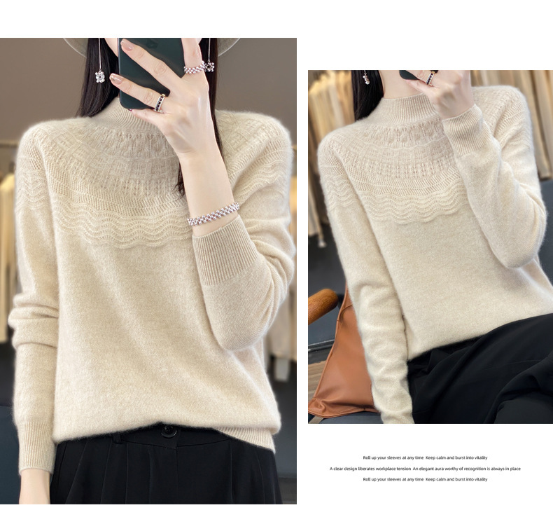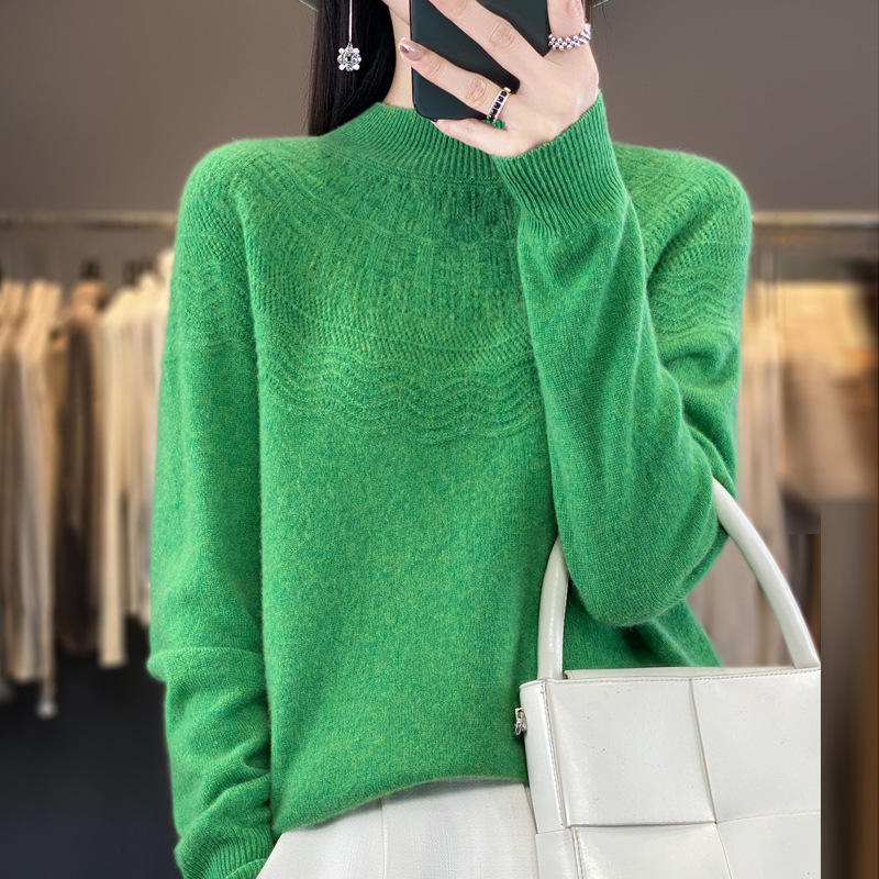Фабрика оптовая бесшовная передовая одежда 100 австралийский шерстяной свитер с розой наполовину высоким воротником с длинным рукавом свитер