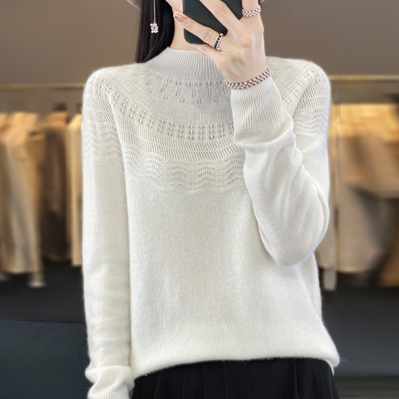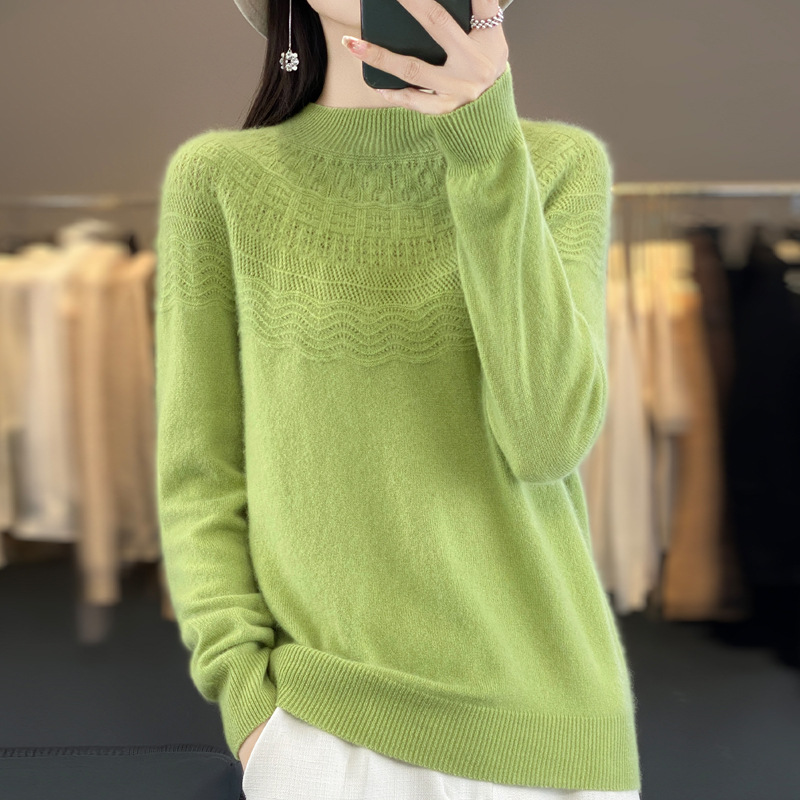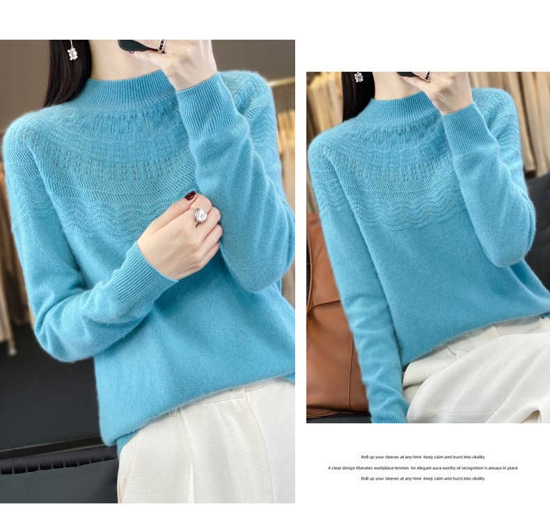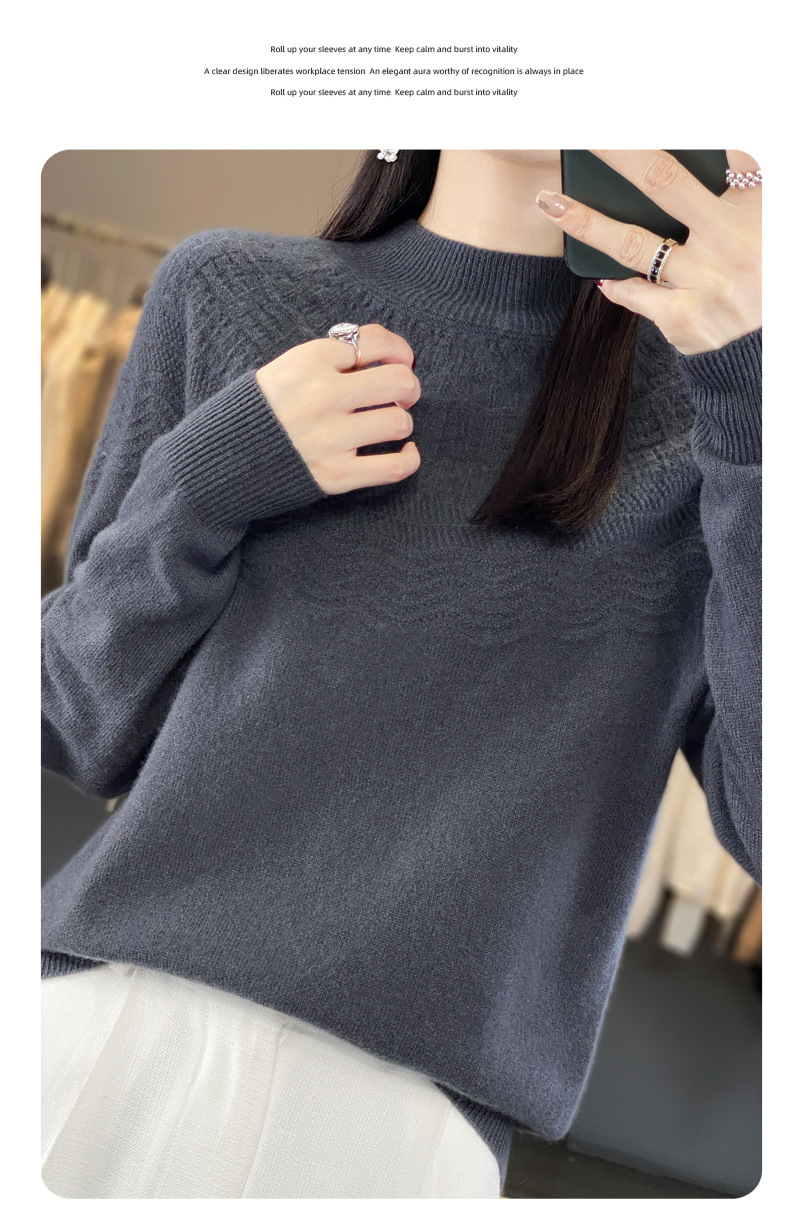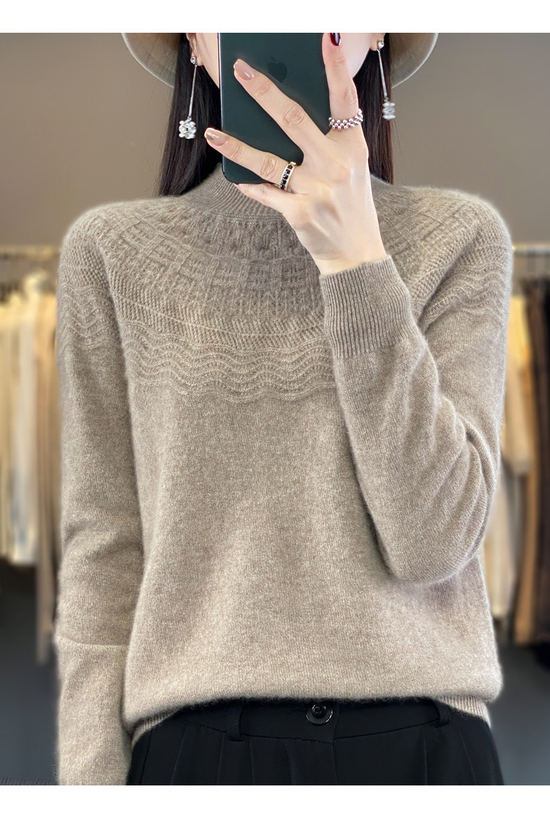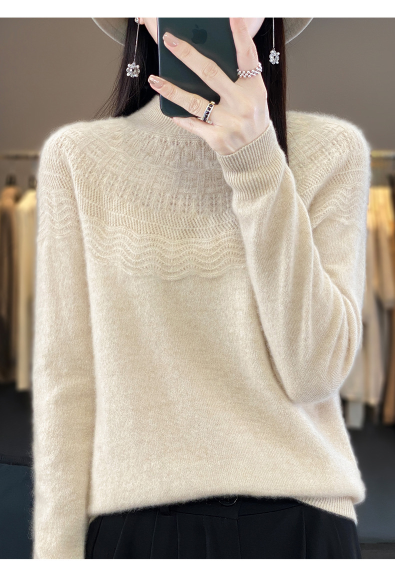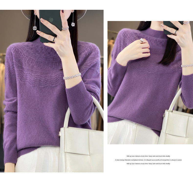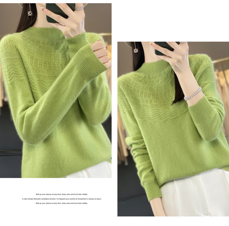 Фабрика оптовая бесшовная передовая одежда 100 австралийский шерстяной свитер с розой наполовину высоким воротником с длинным рукавом свитер