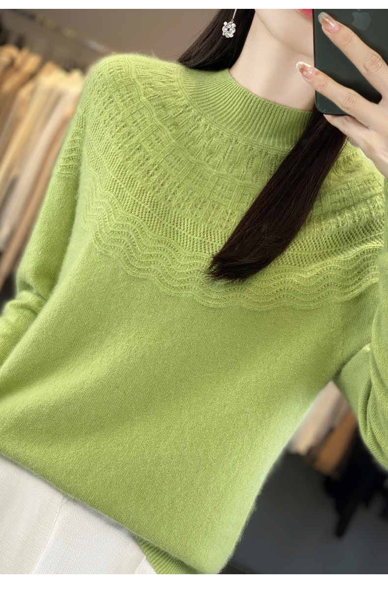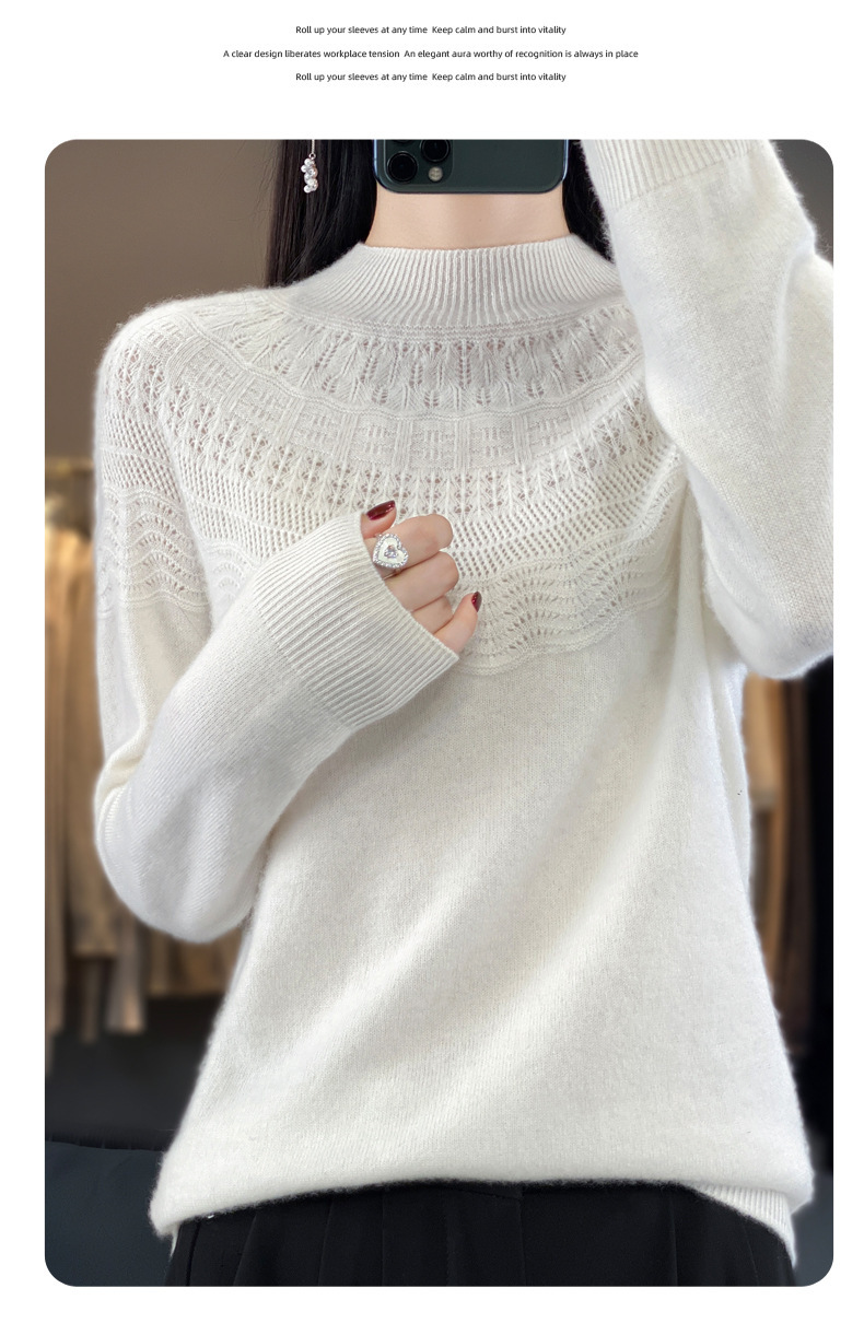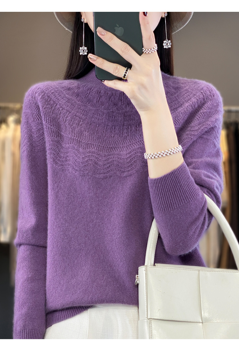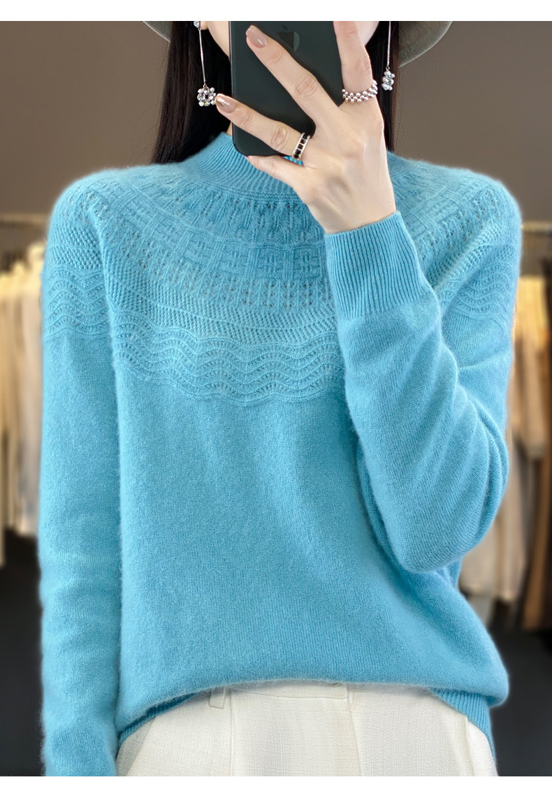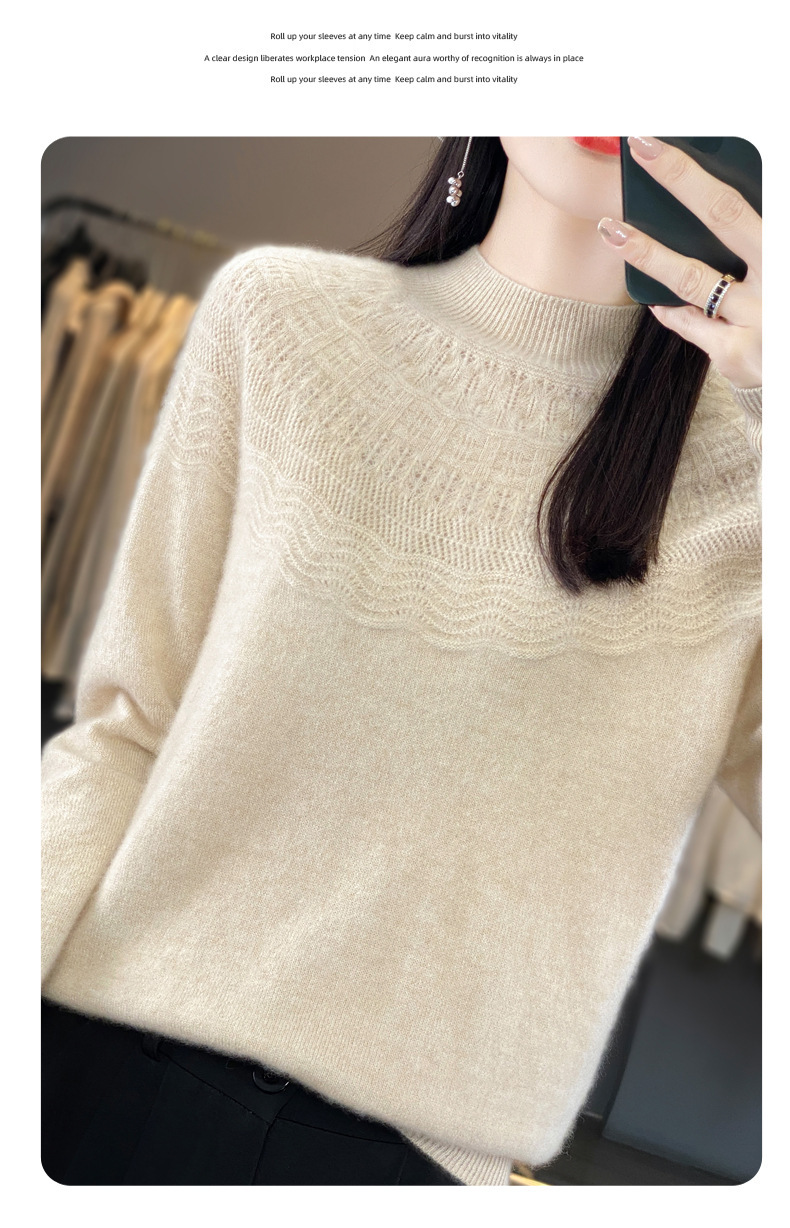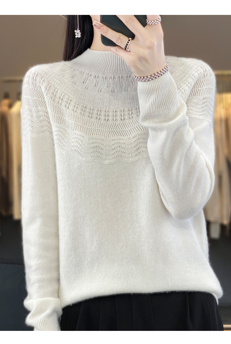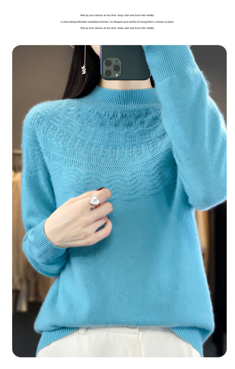 Фабрика оптовая бесшовная передовая одежда 100 австралийский шерстяной свитер с розой наполовину высоким воротником с длинным рукавом свитер