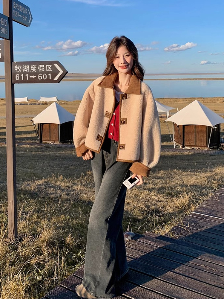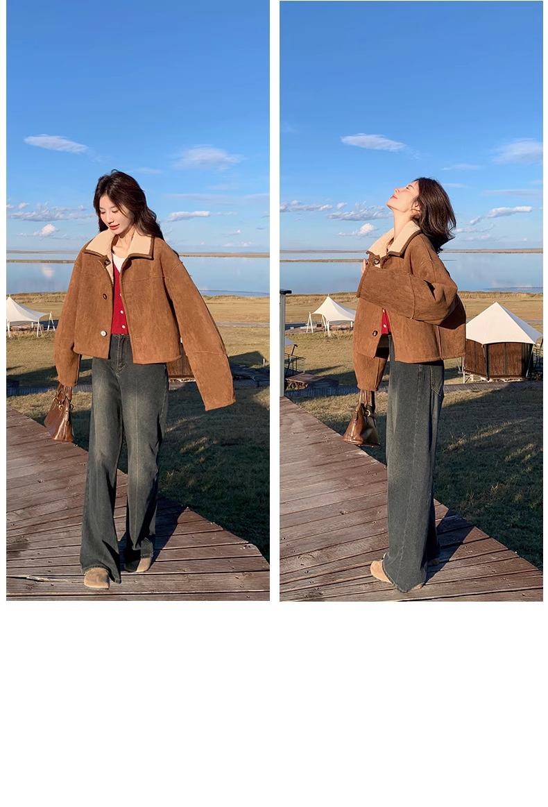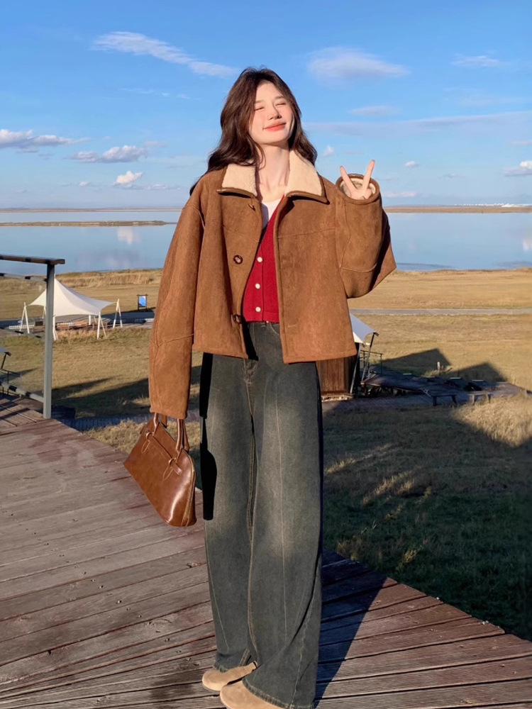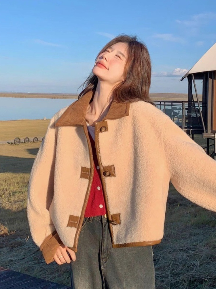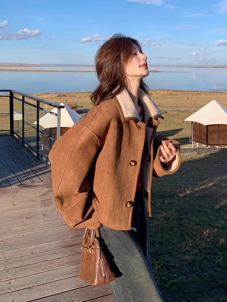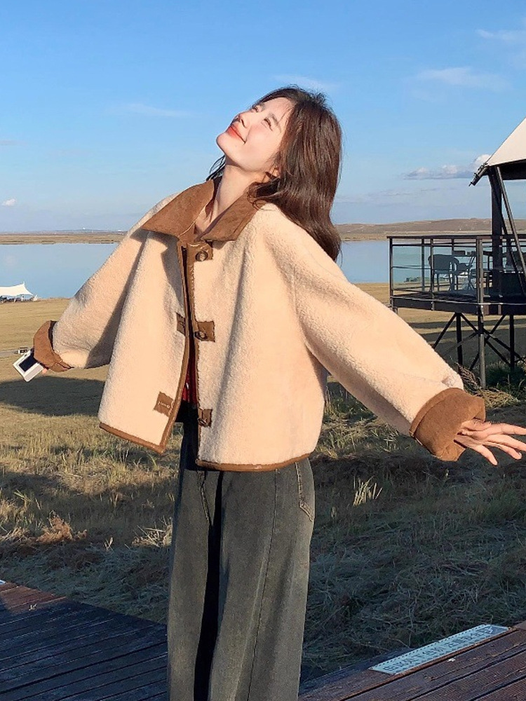 Двусторонняя куртка из меха и шерсти ягненка для женщин, осень 2025, новая ранняя зима, утолщенная короткая замшевая верхняя одежда
