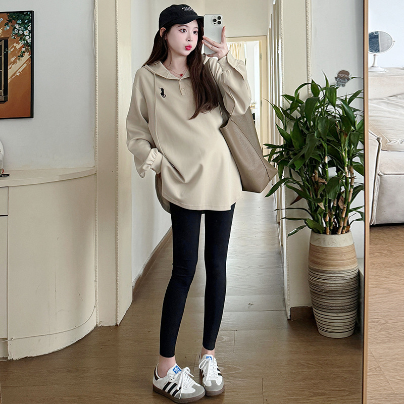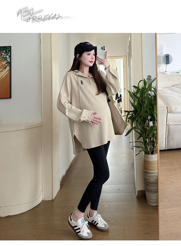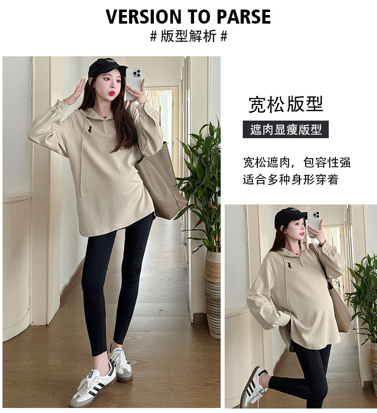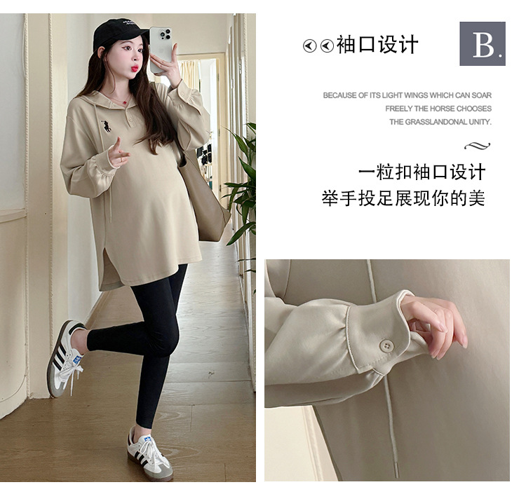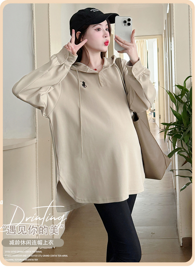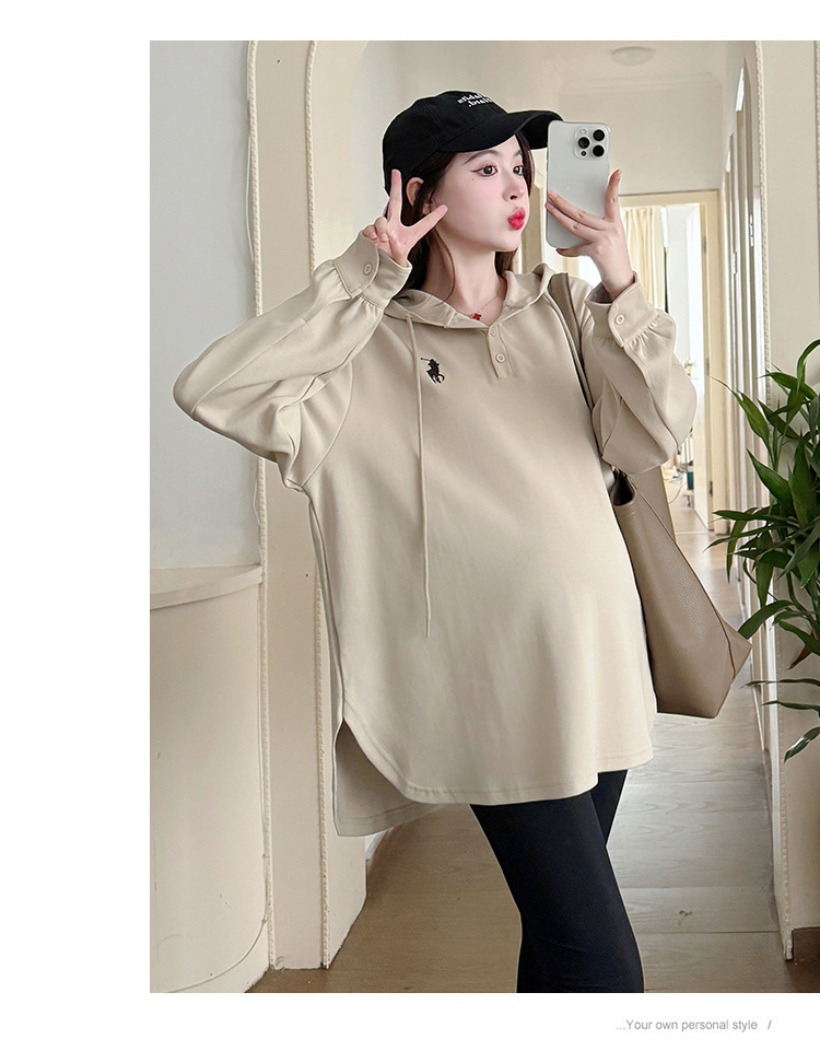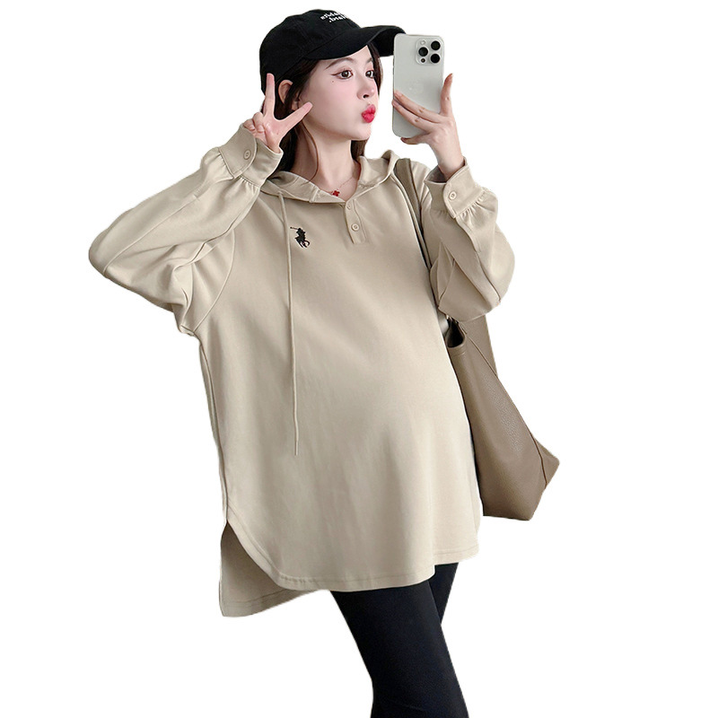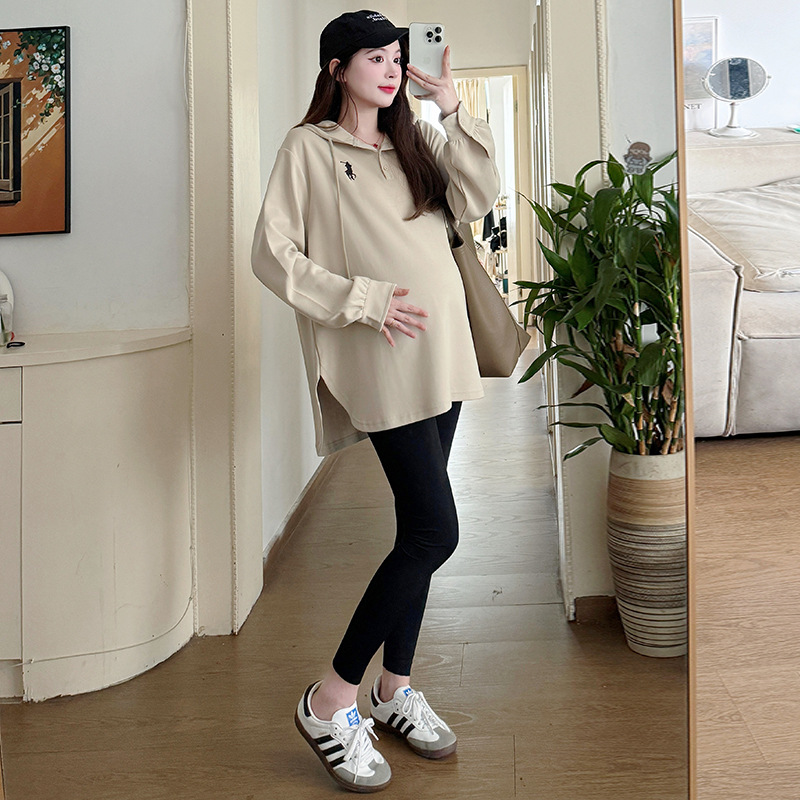 Платье для беременных большого размера с капюшоном Весеннее и осеннее платье с длинными рукавами моды с капюшоном повседневный топ свободная футболка 200 фунтов