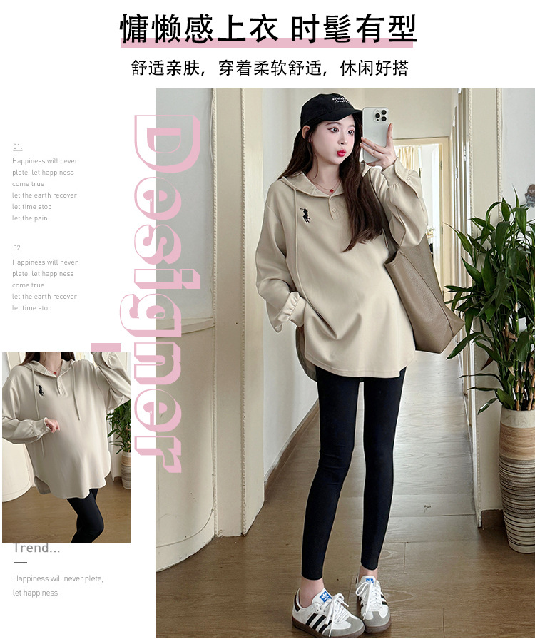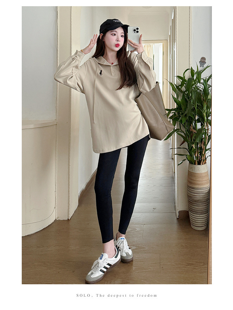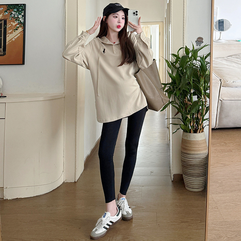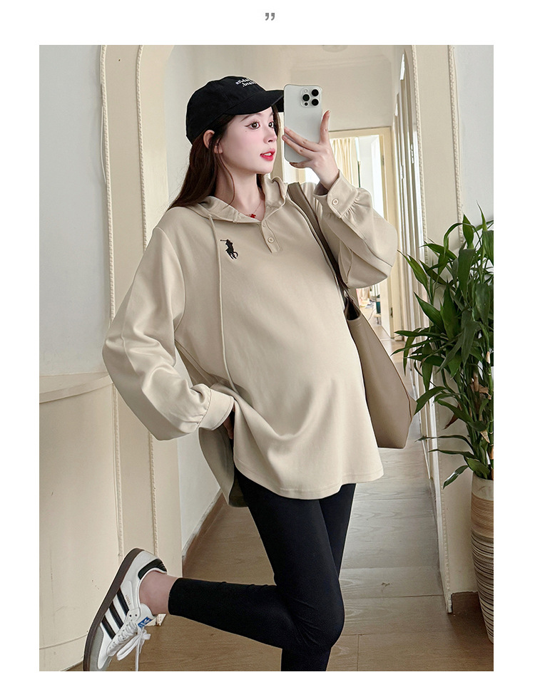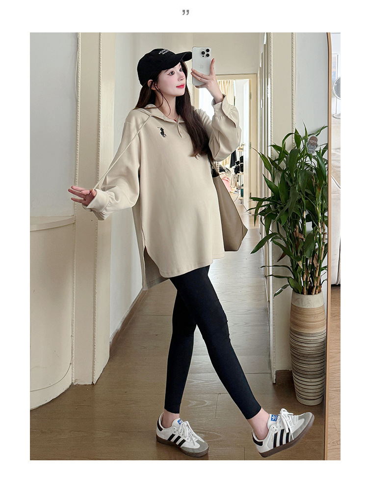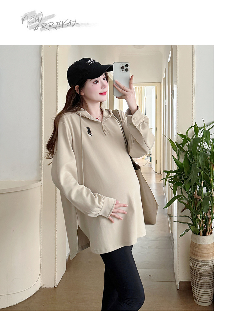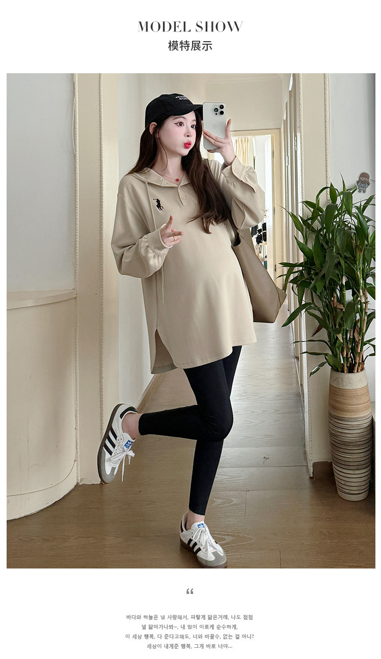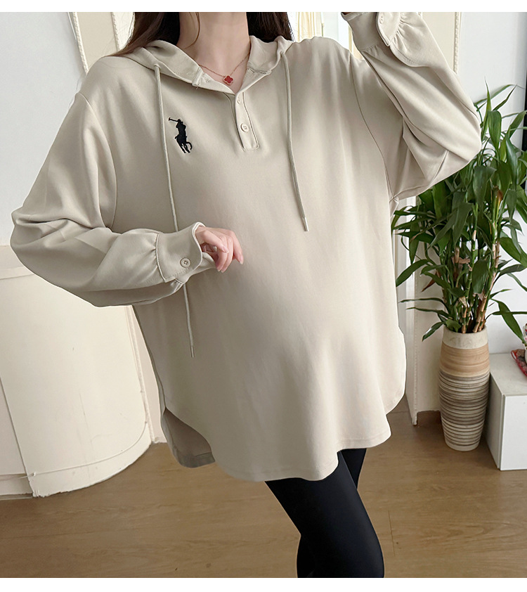 Платье для беременных большого размера с капюшоном Весеннее и осеннее платье с длинными рукавами моды с капюшоном повседневный топ свободная футболка 200 фунтов