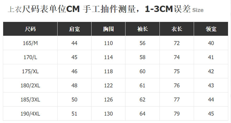 165/М( 47.5-59kg ); 170/л( 59-69kg ); 175/XL( 69-79kg ); 180/2XL( 79-89kg ); 185/3XL( 89-95kg ); 190/4XL( 95-105kg )