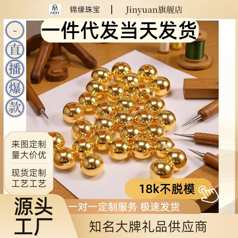 18-каратные золотые бусины, аксессуары au750, цвет золота, 4-5 мм, браслет «сделай сам», ожерелье, кулон, древние яркие бусины с позиционированием поверхности, оптовая продажа
