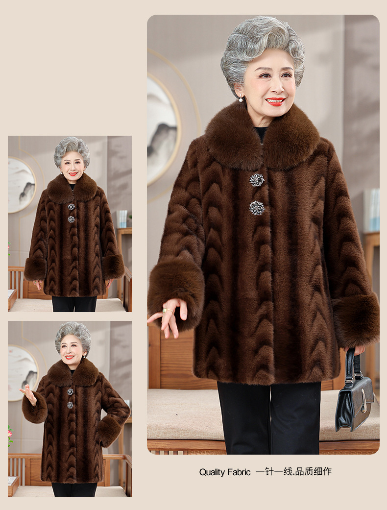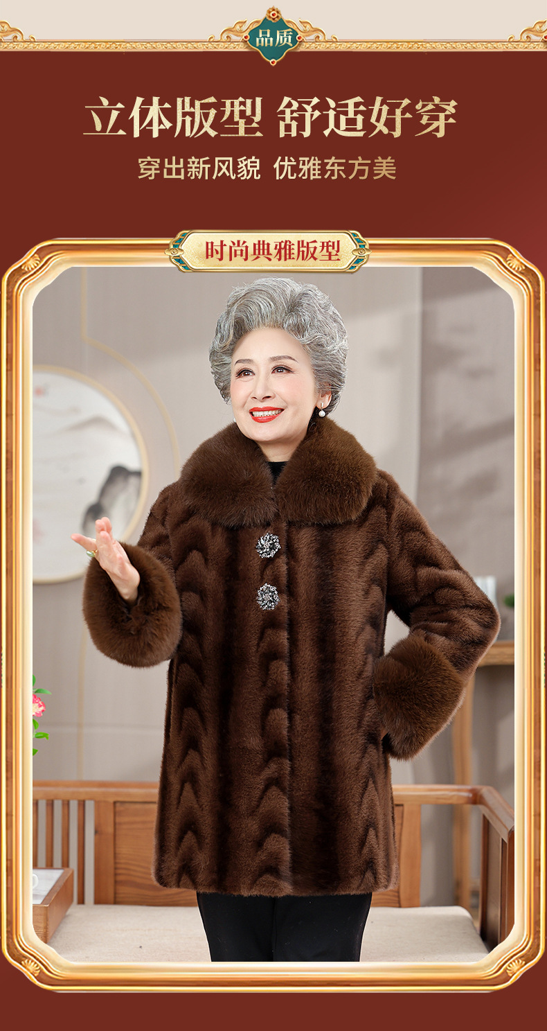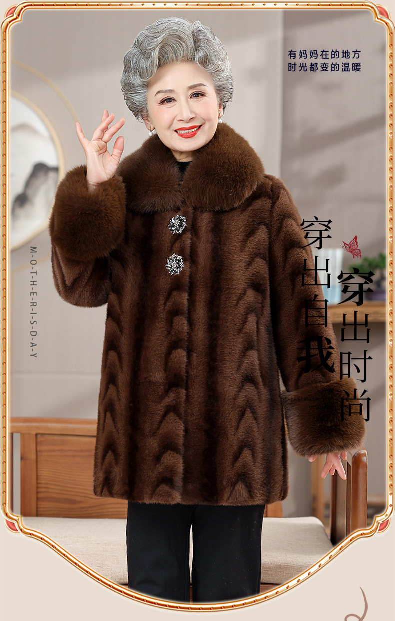 Мама осенняя зимняя норка меховая куртка модная хлопчатобумажная куртка 2024 новый средний и пожилой женский норковый меховое пальто