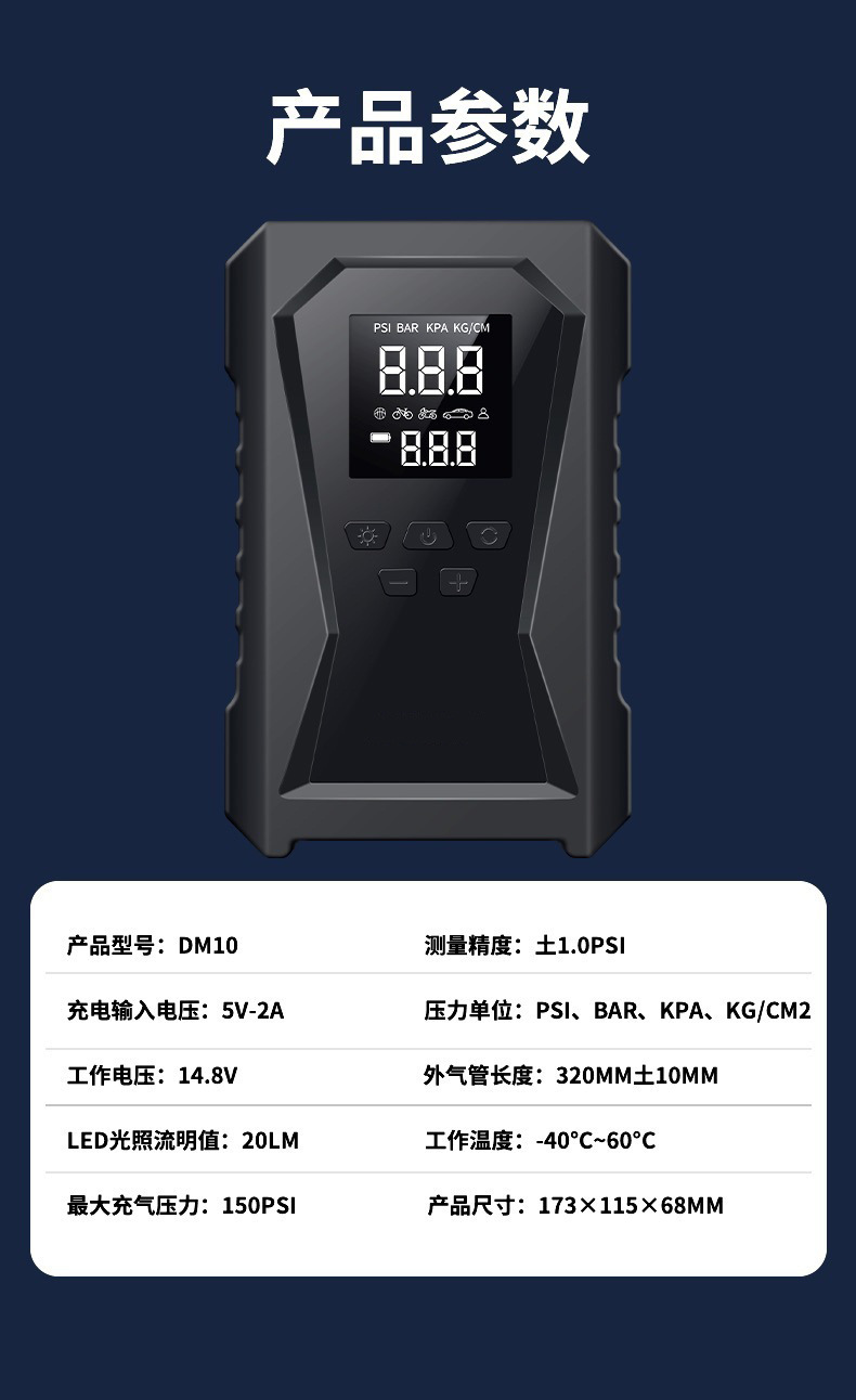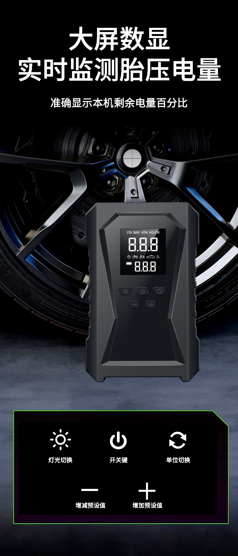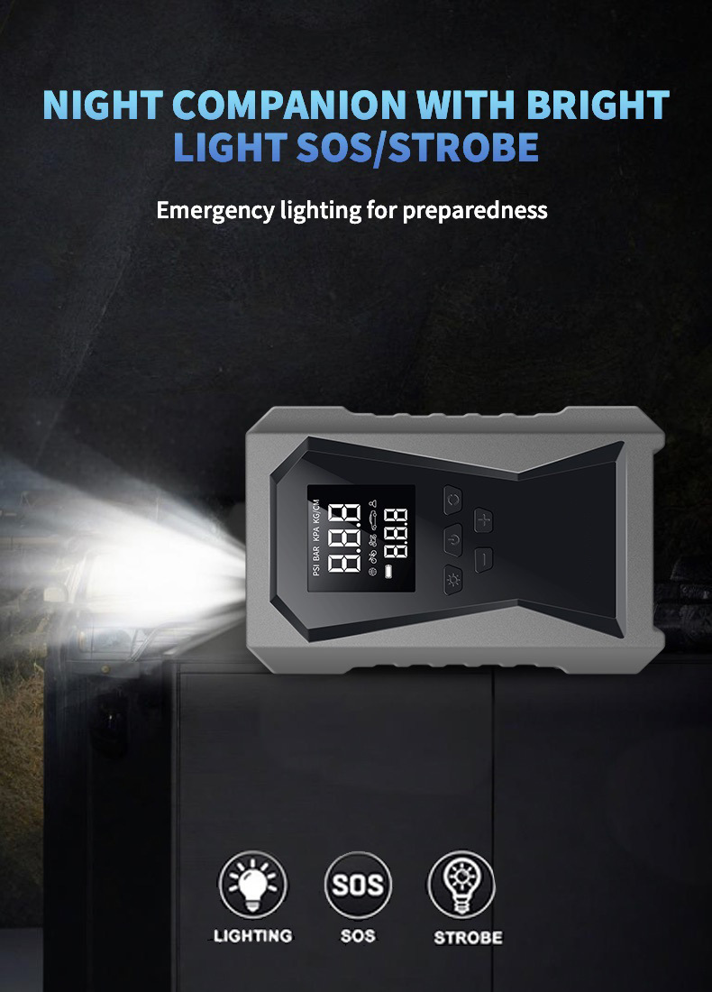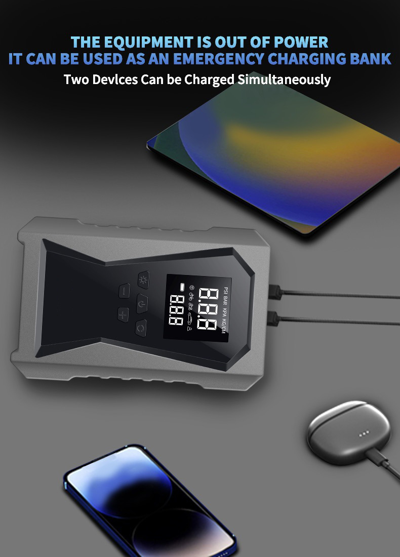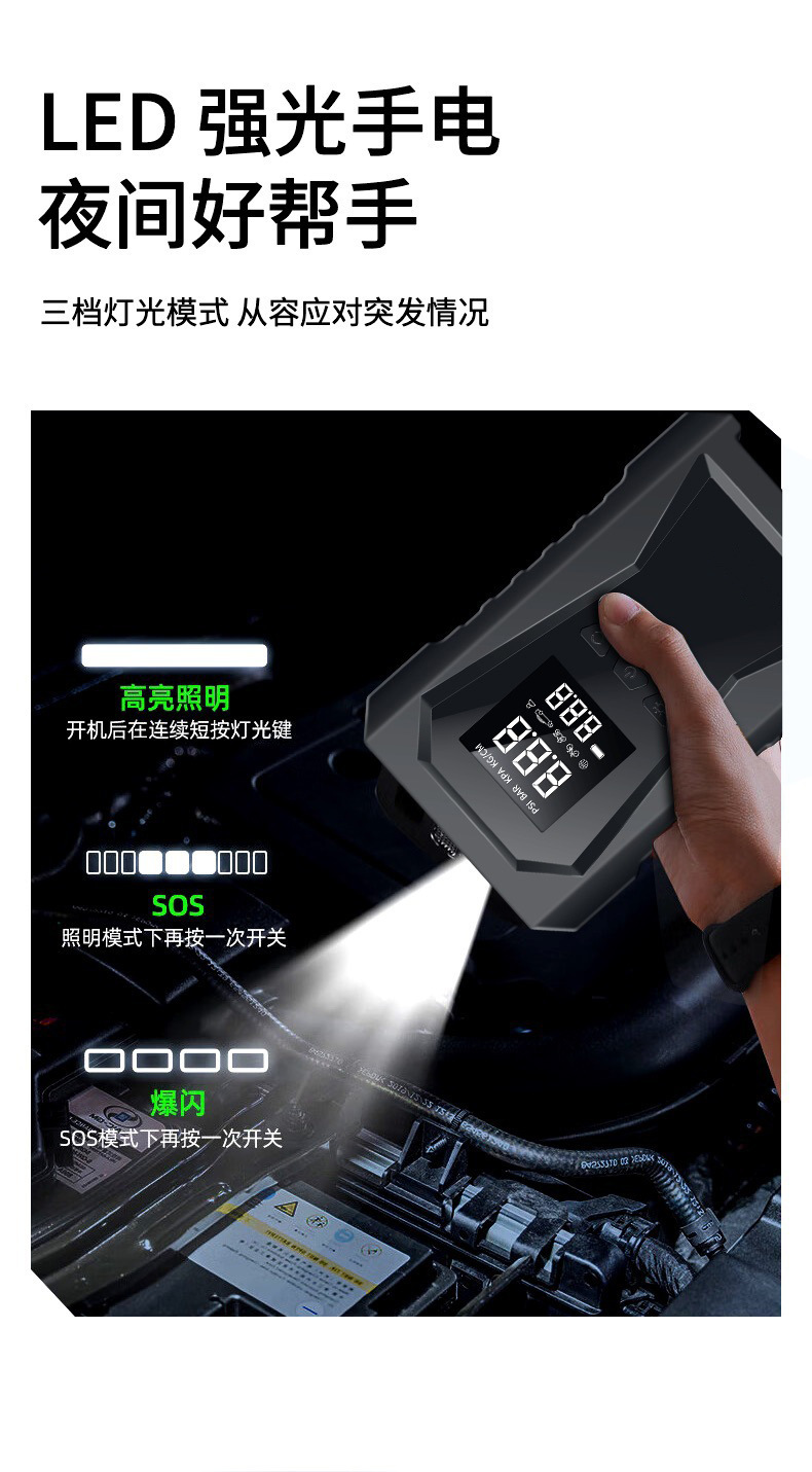 Многофункциональное устройство для запуска автомобиля и подкачки шин 12В, портативный беспроводной автомобильный компрессор