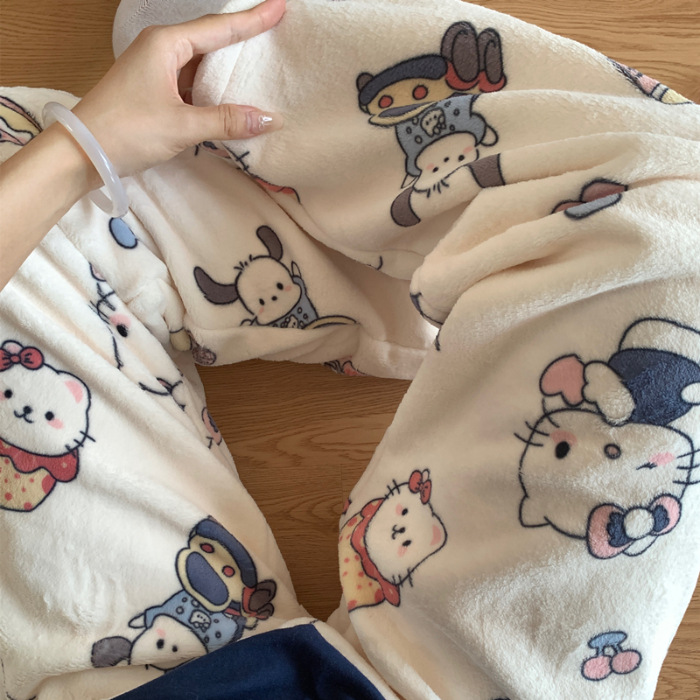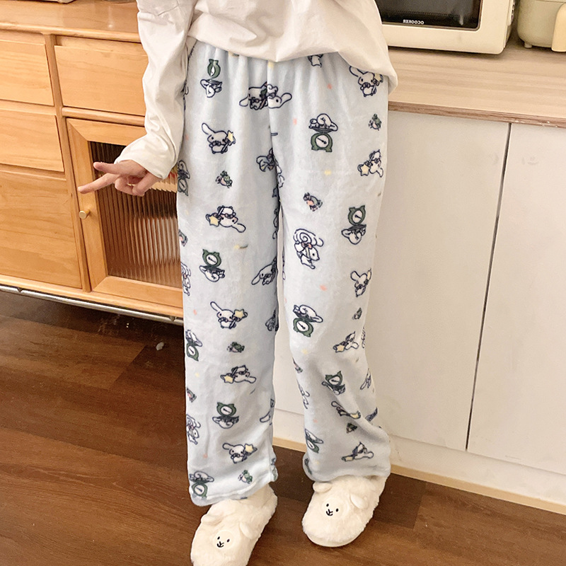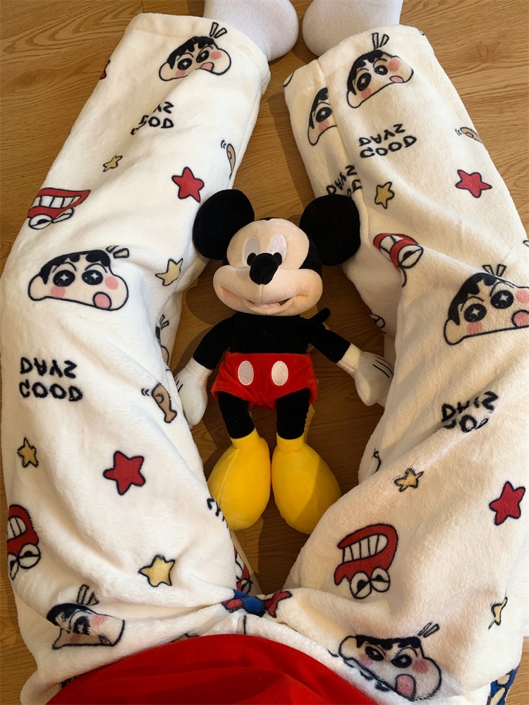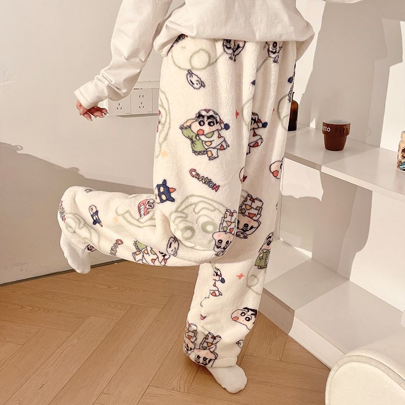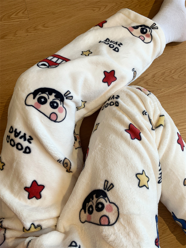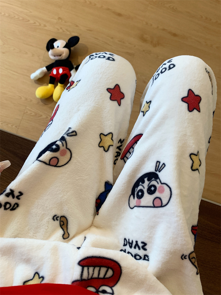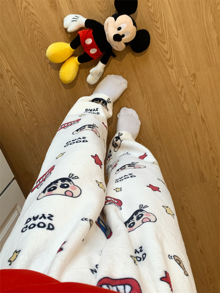 Симпатичные Мультяшные Crayon Shinchan Женские брюки Теплая коралловая фланелевая повседневная домашняя брюки