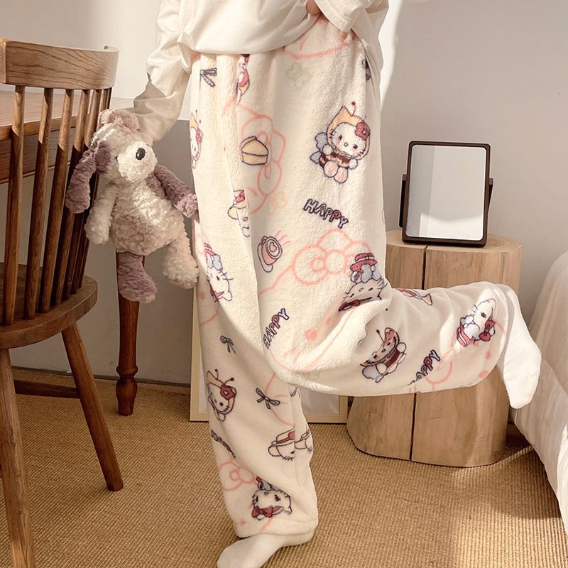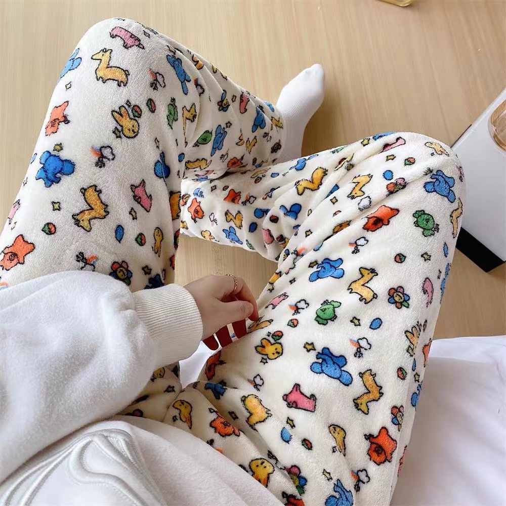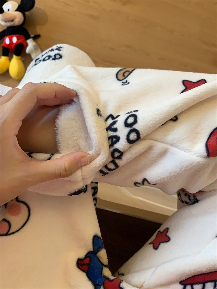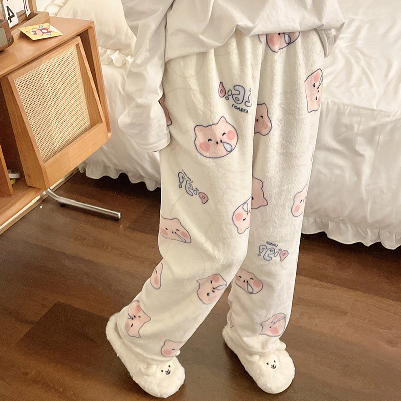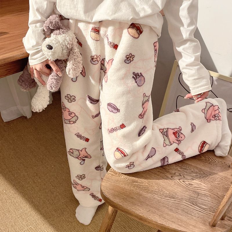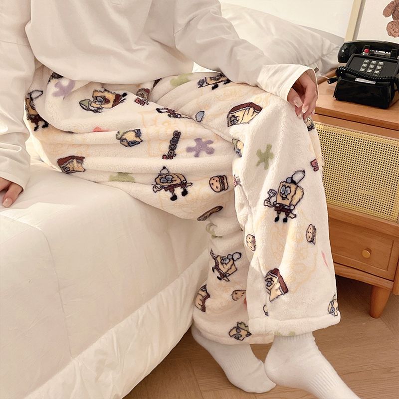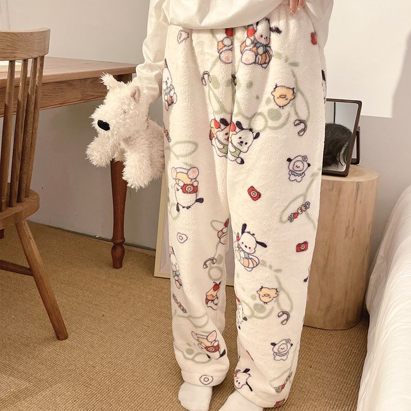 Симпатичные Мультяшные Crayon Shinchan Женские брюки Теплая коралловая фланелевая повседневная домашняя брюки